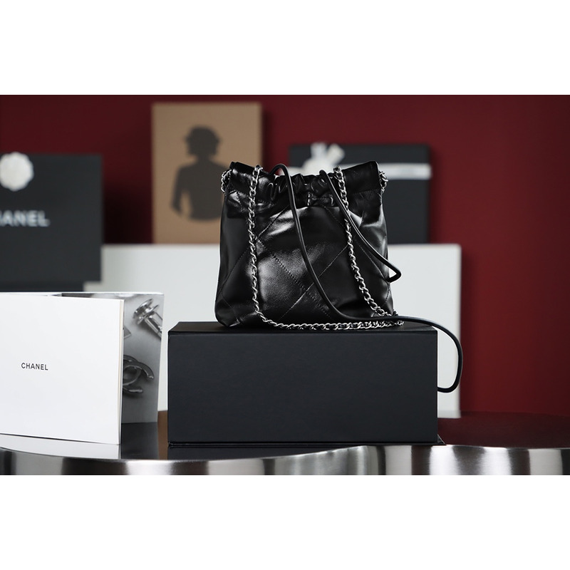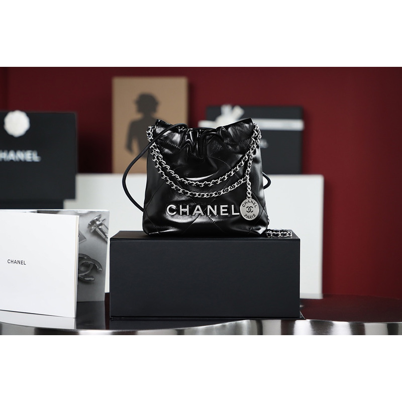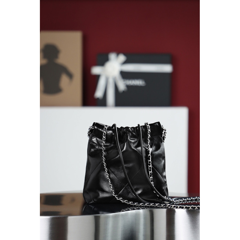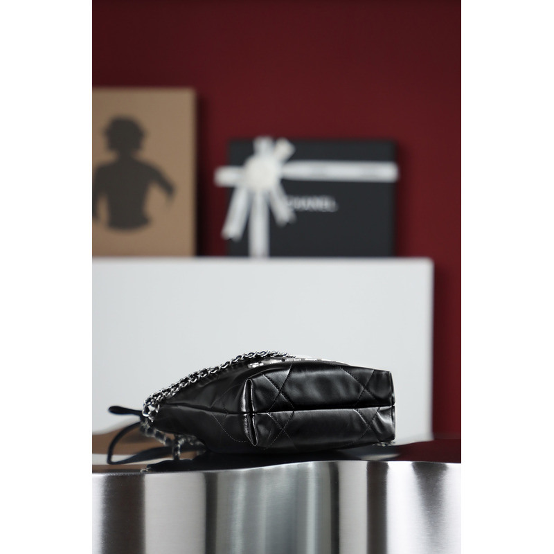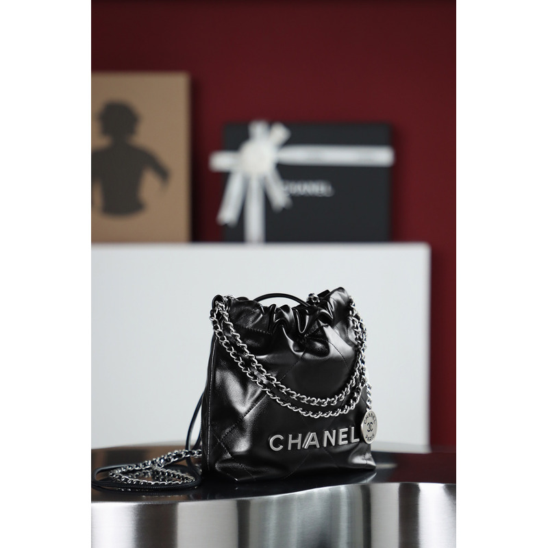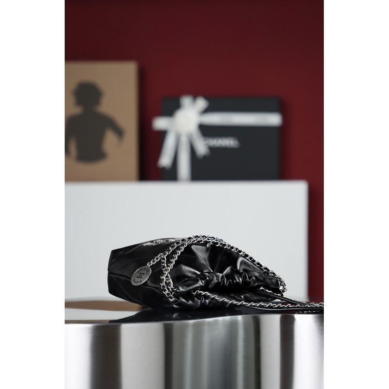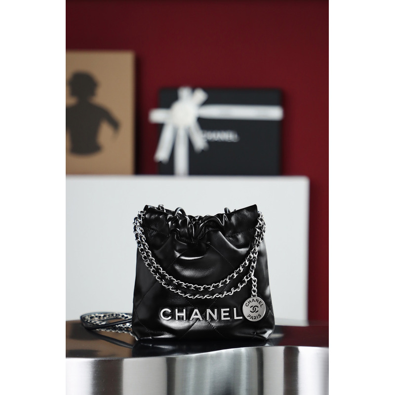 Chanel 22 Mini Black Handbag Shiny Calfskin & 24 Silver-Tone Metal