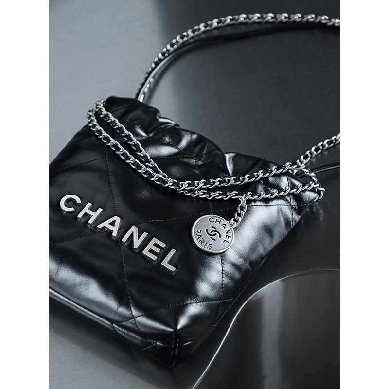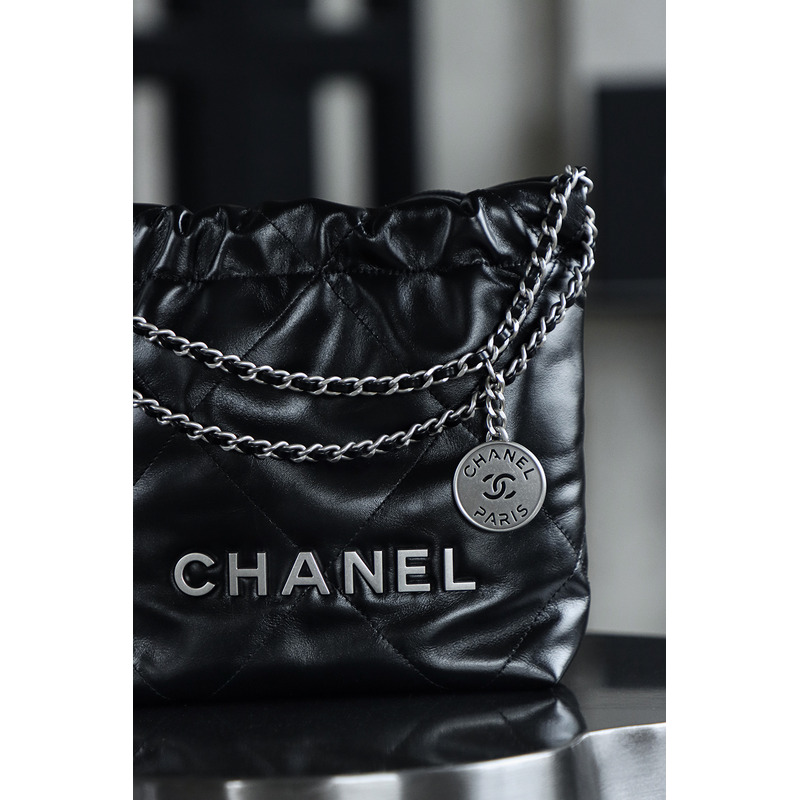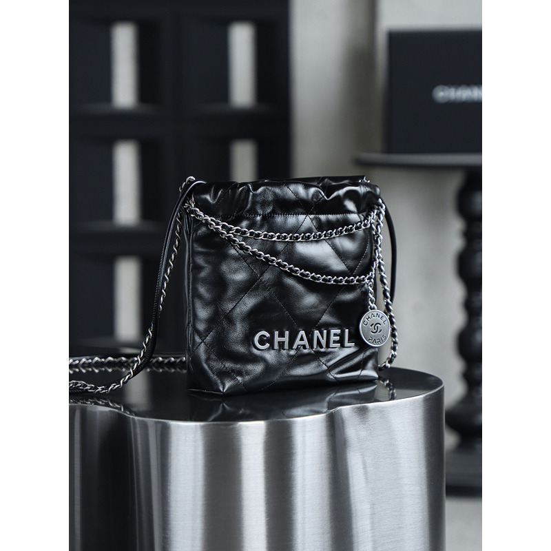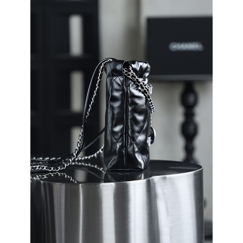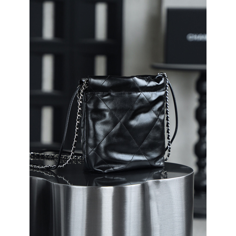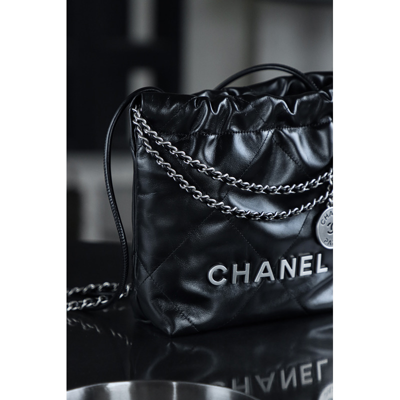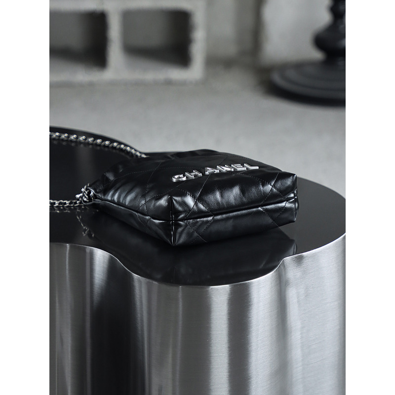 Chanel 22 Mini Handbag Shiny Calfskin & 24K Silver-Tone Metal Black