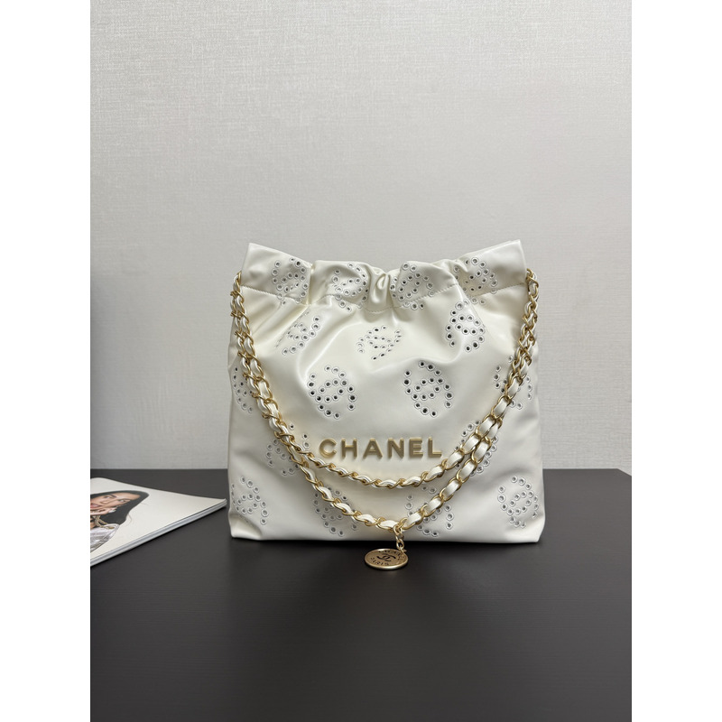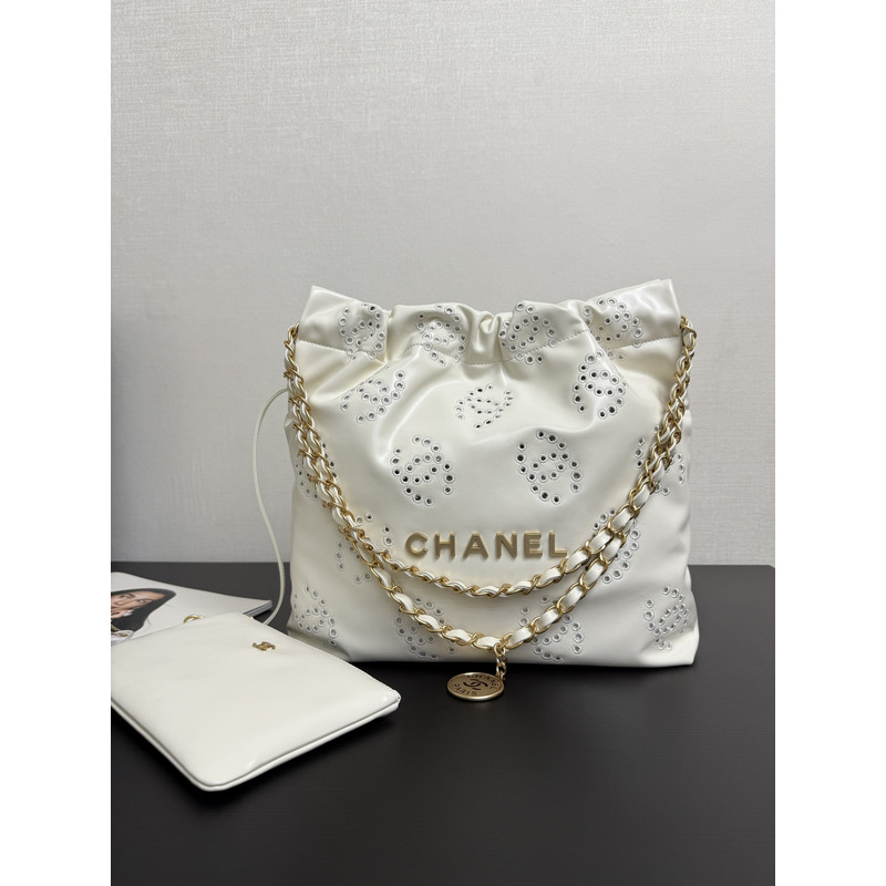 Chanel 22 Mini Handbag Shiny Calfskin With CC Logo In White