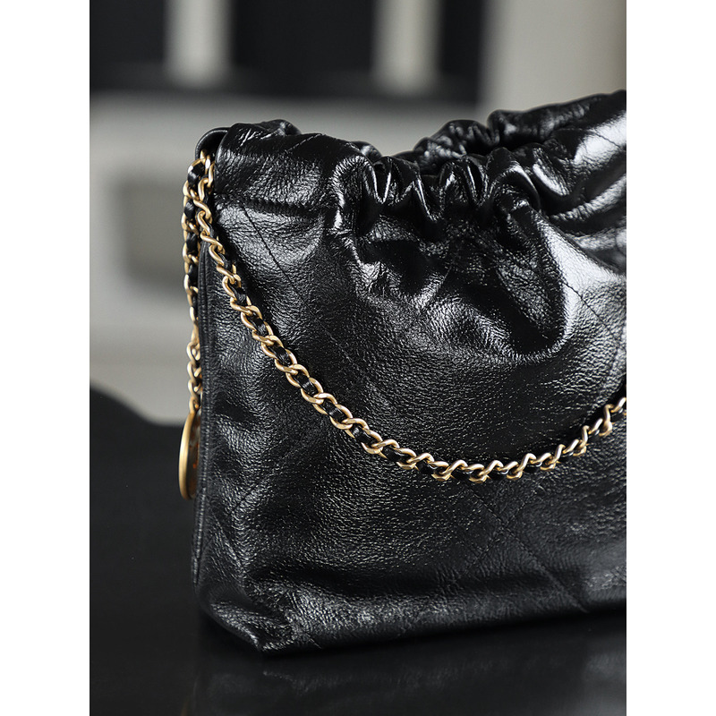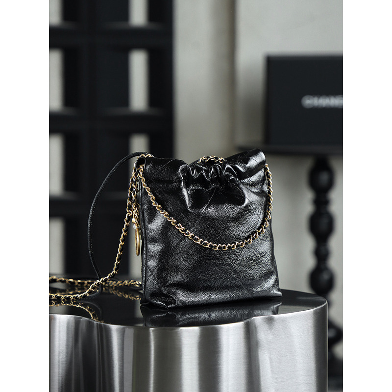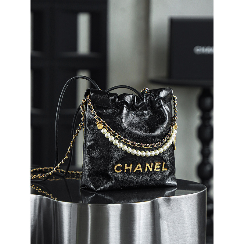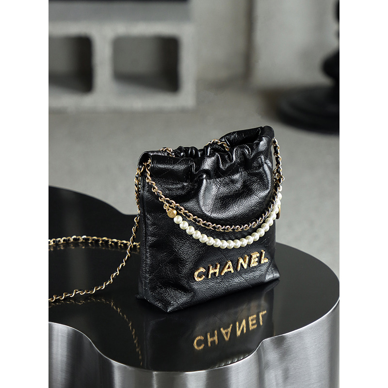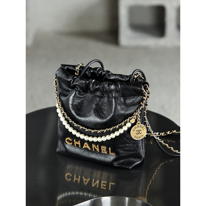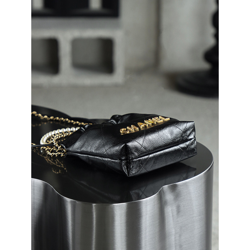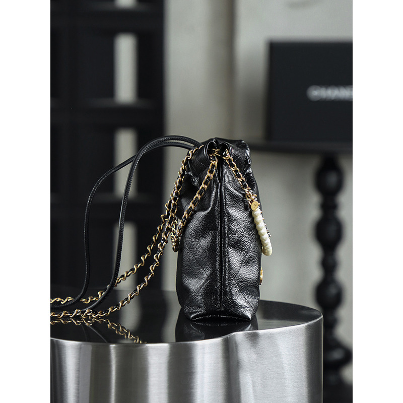 Chanel 22 Mini Pearl Handbag Shiny Calfskin & 24K Gold-Tone Metal Black