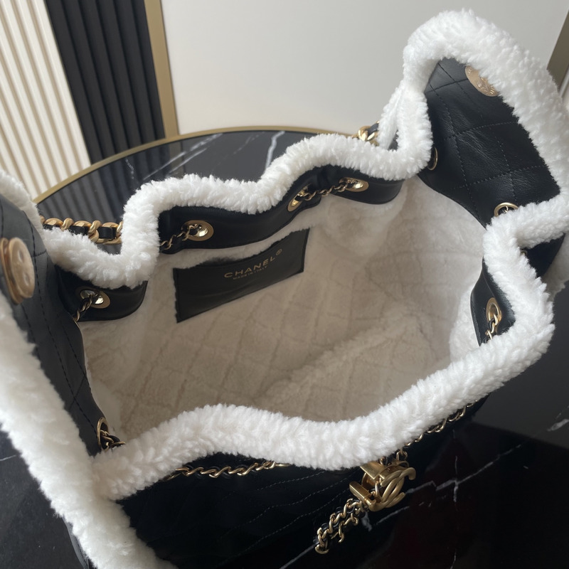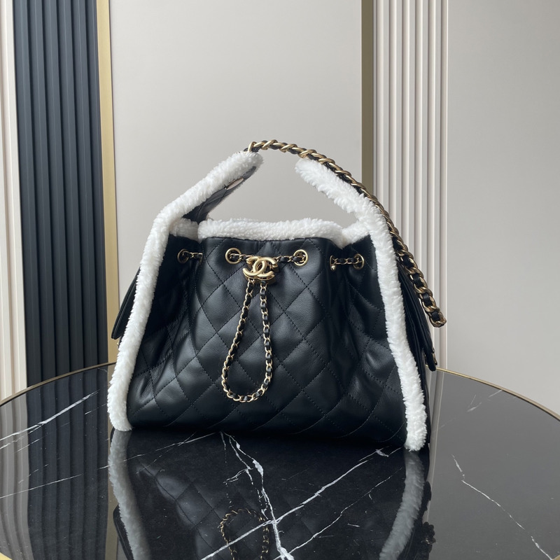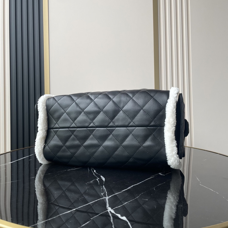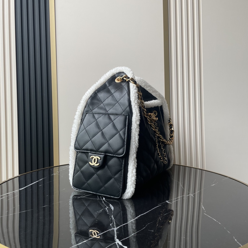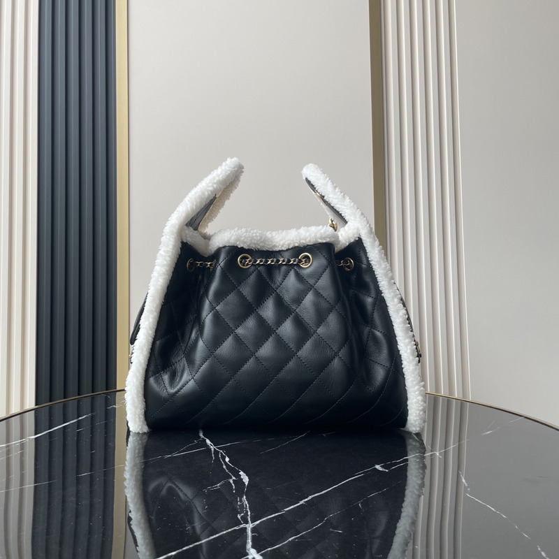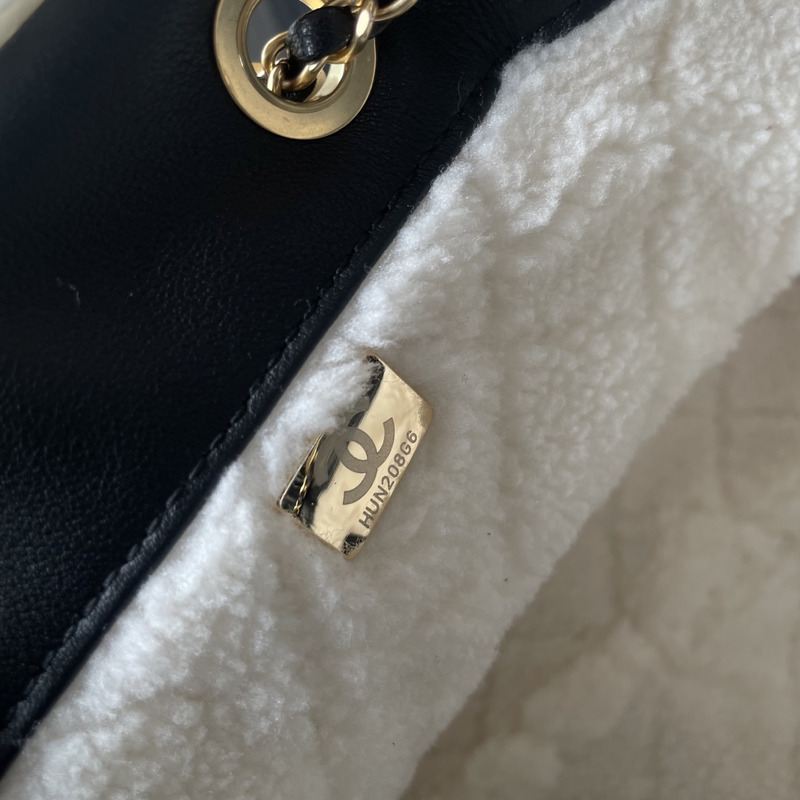 Chanel 25 small handbag, Crumpled Shearling Sheepskin Black