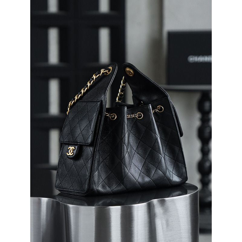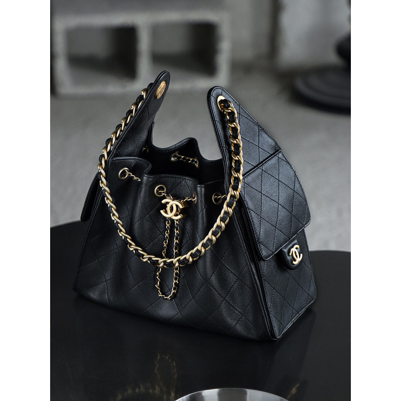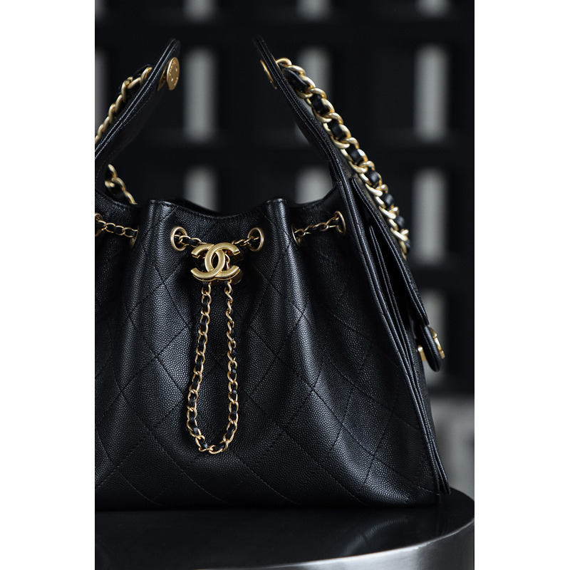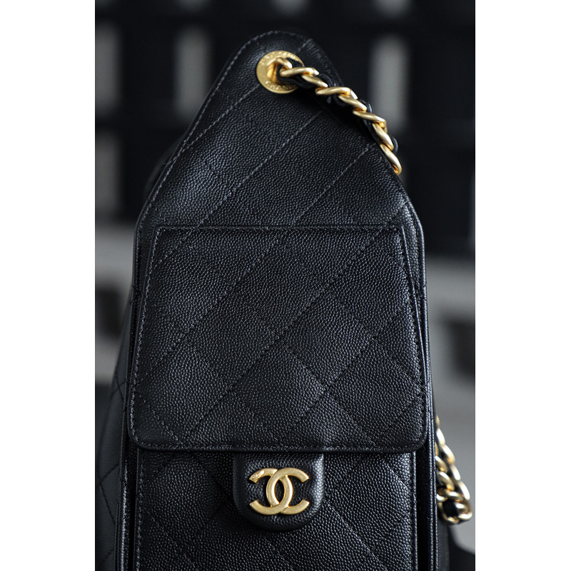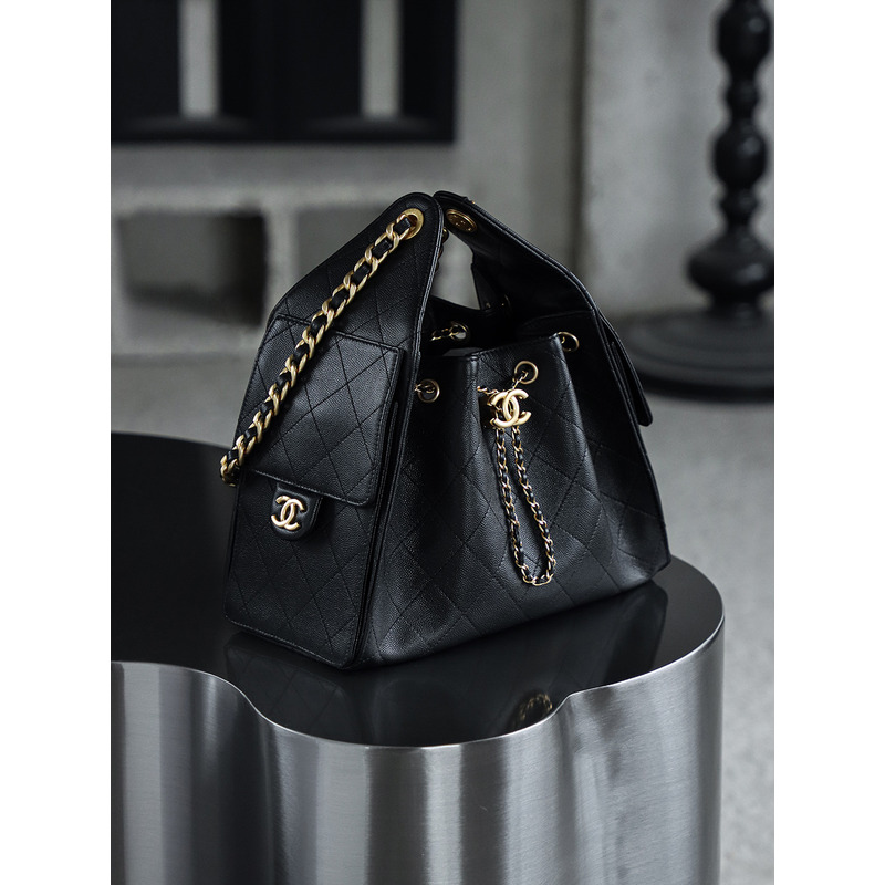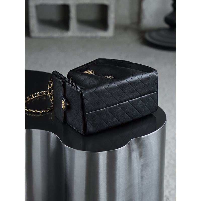 Chanel 25 Small Handbag Grained Calfskin & 24K Gold-Tone Metal Black