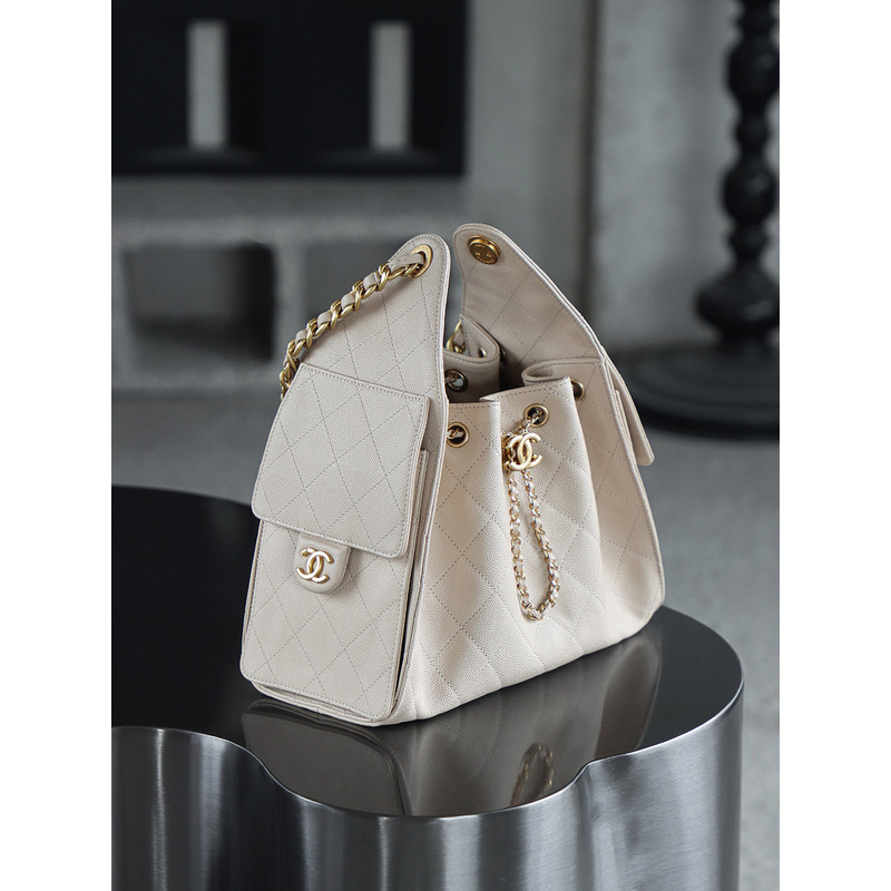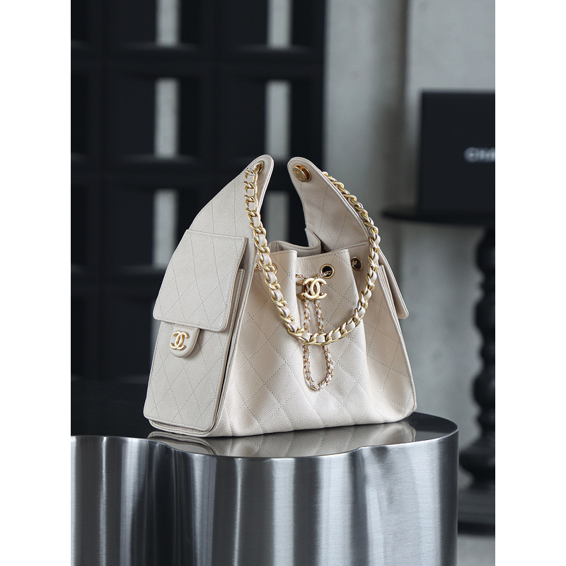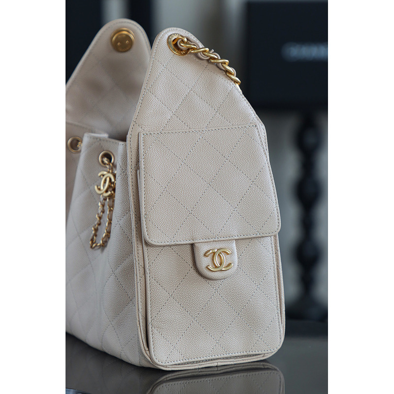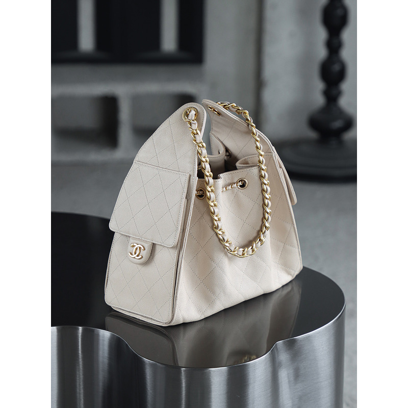 Chanel 25 Small Handbag Grained Calfskin & 24K Gold-Tone Metal Light Beige