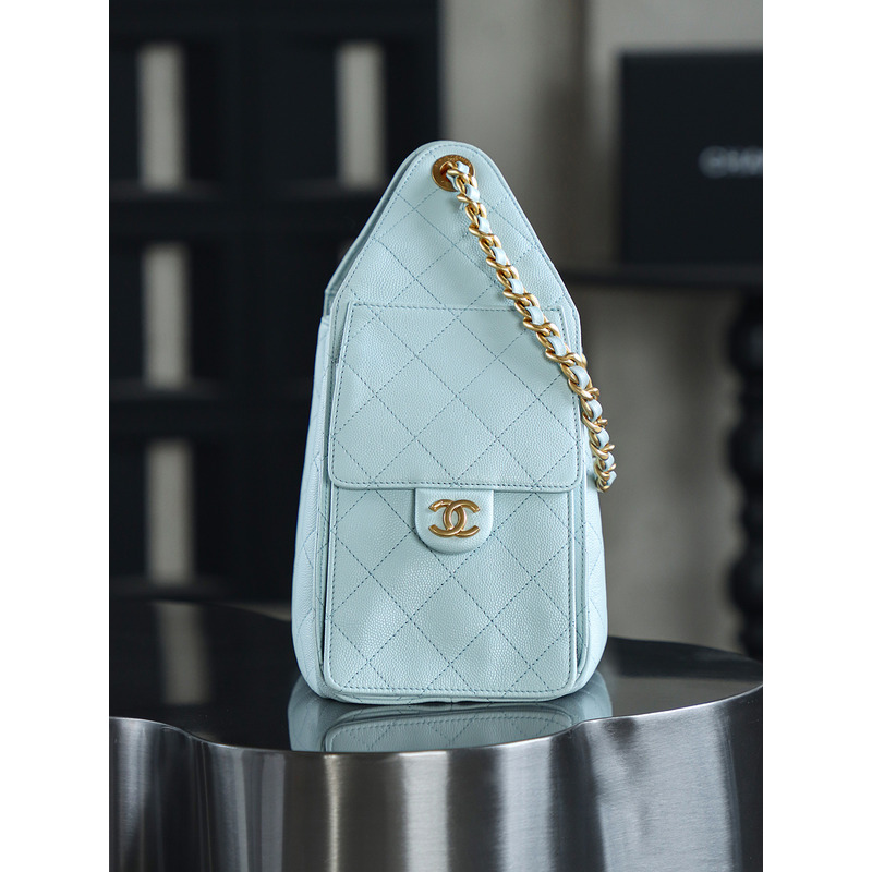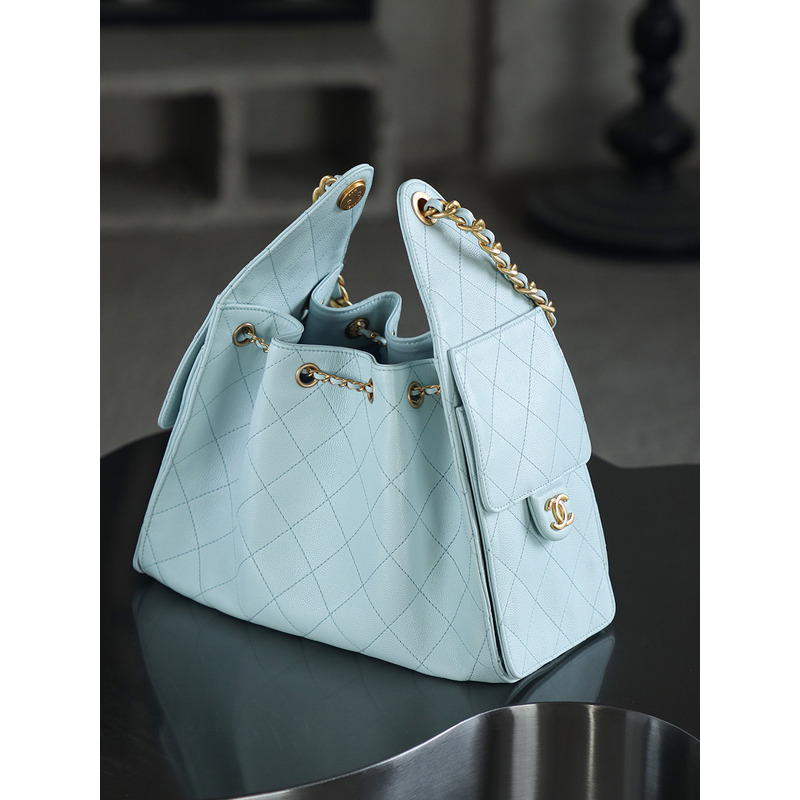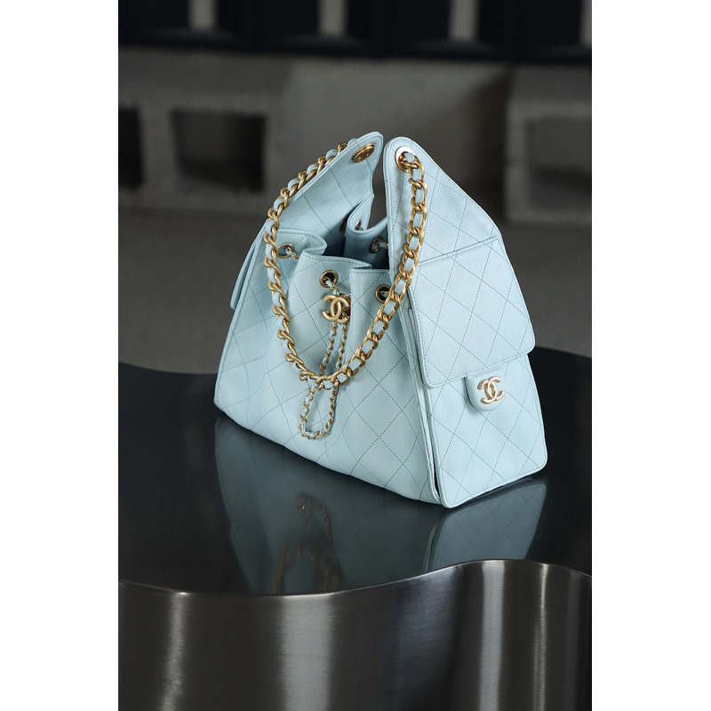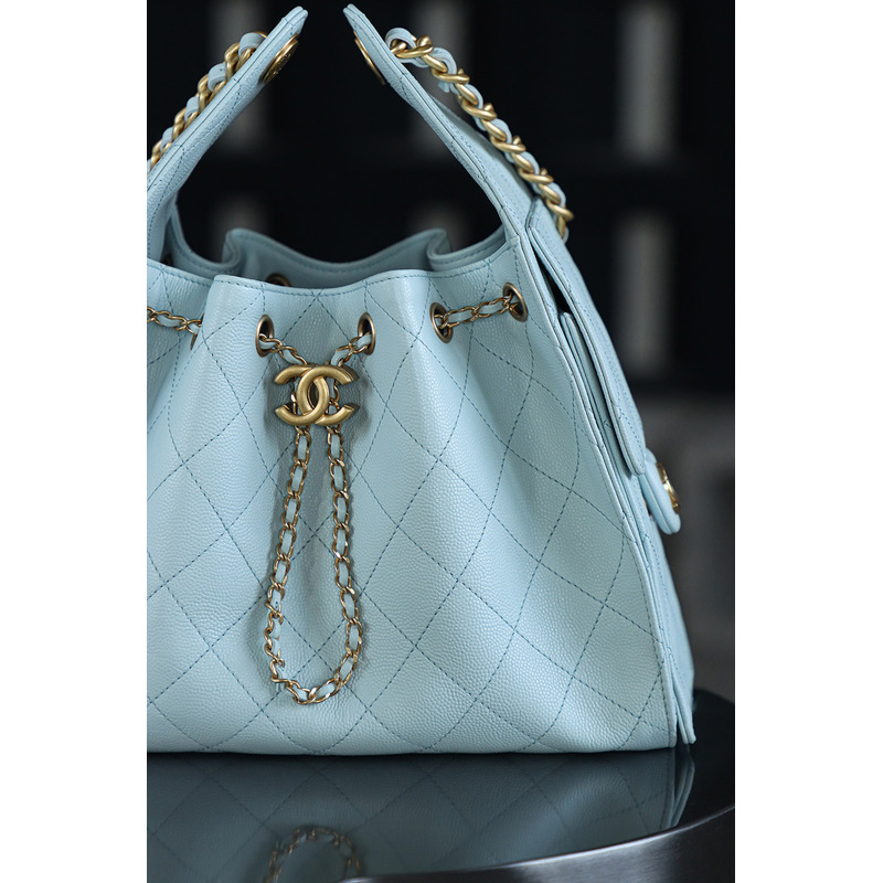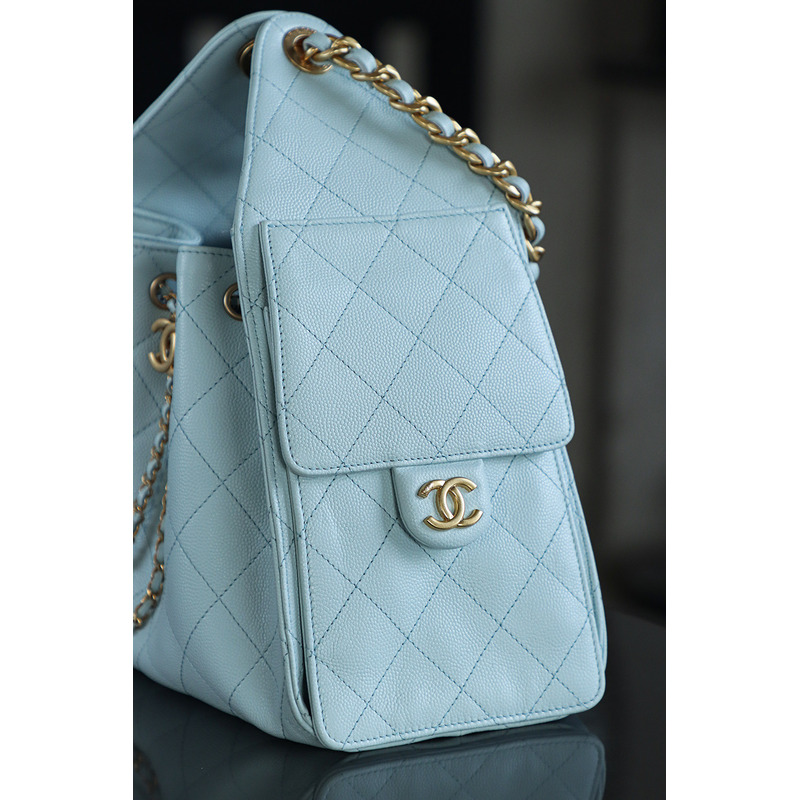 Chanel 25 Small Handbag Grained Calfskin & 24K Gold-Tone Metal Light Blue