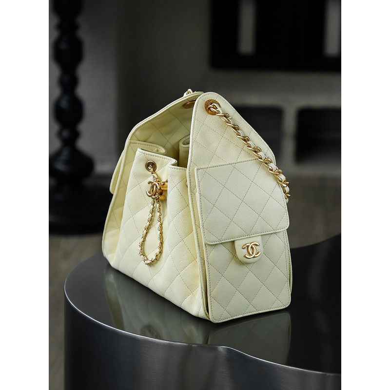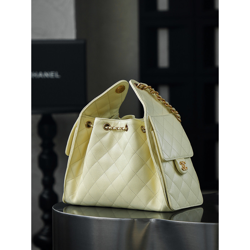Chanel 25 Small Handbag Grained Calfskin & 24K Gold-Tone Metal Light Yellow