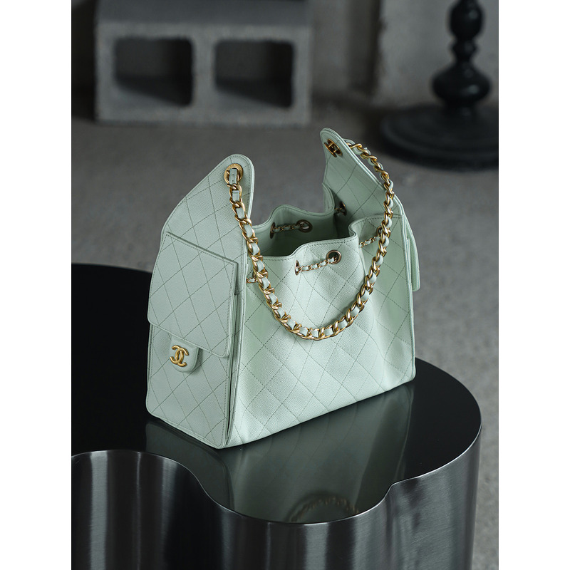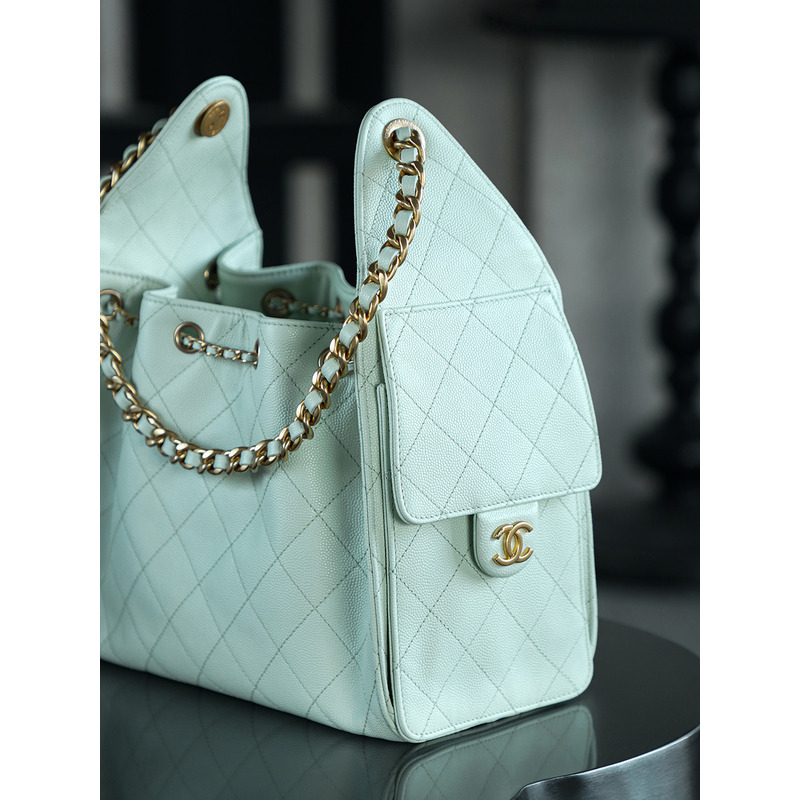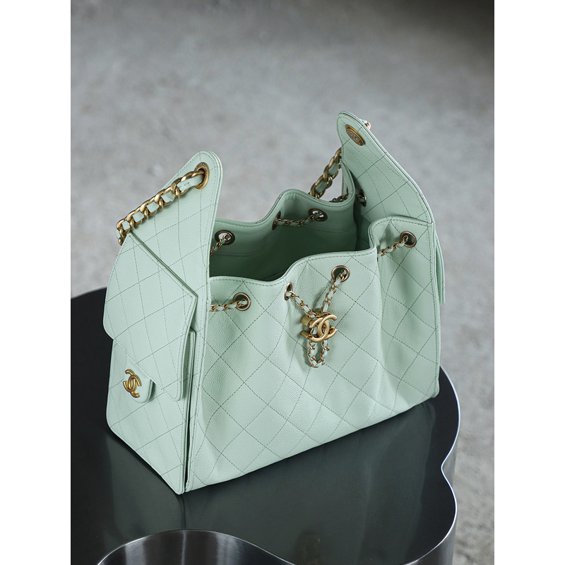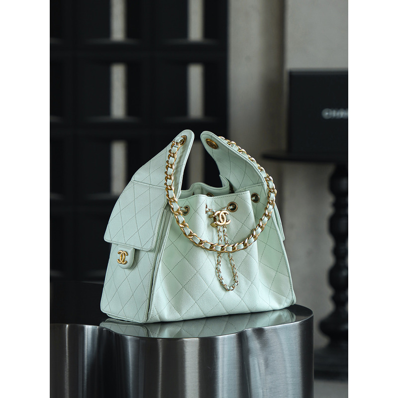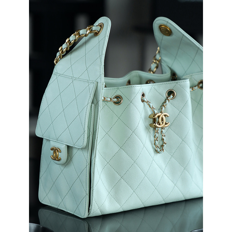 Chanel 25 Small Handbag Grained Calfskin & 24K Gold-Tone Metal Mint Green