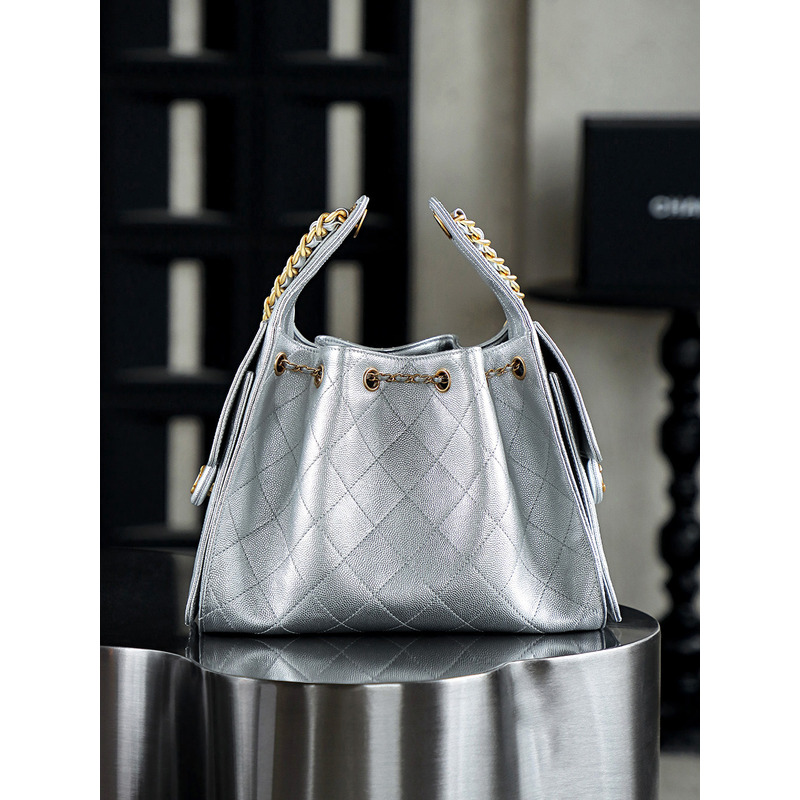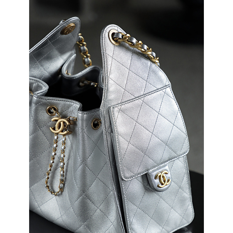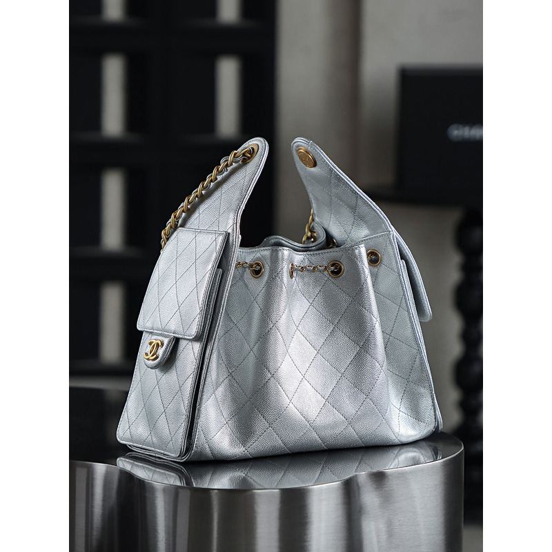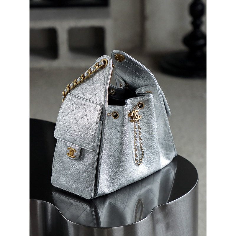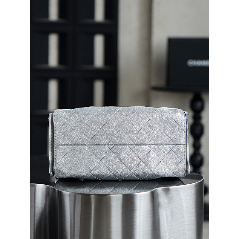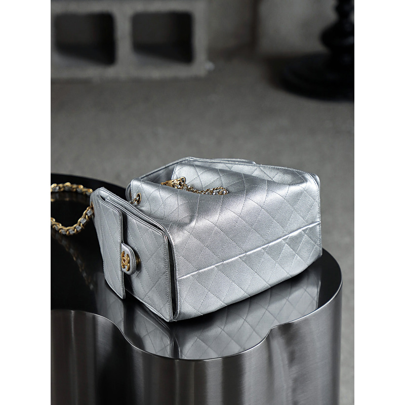 Chanel 25 Small Handbag Grained Calfskin & 24K Gold-Tone Metal Silver