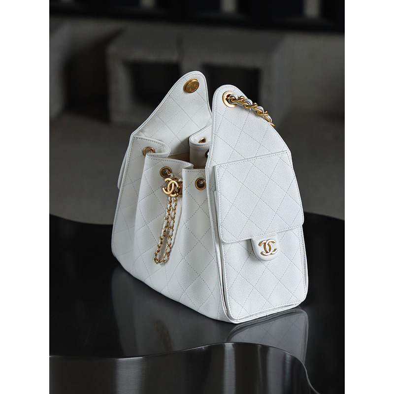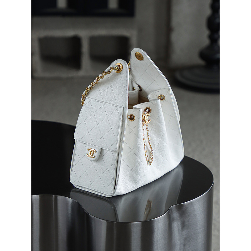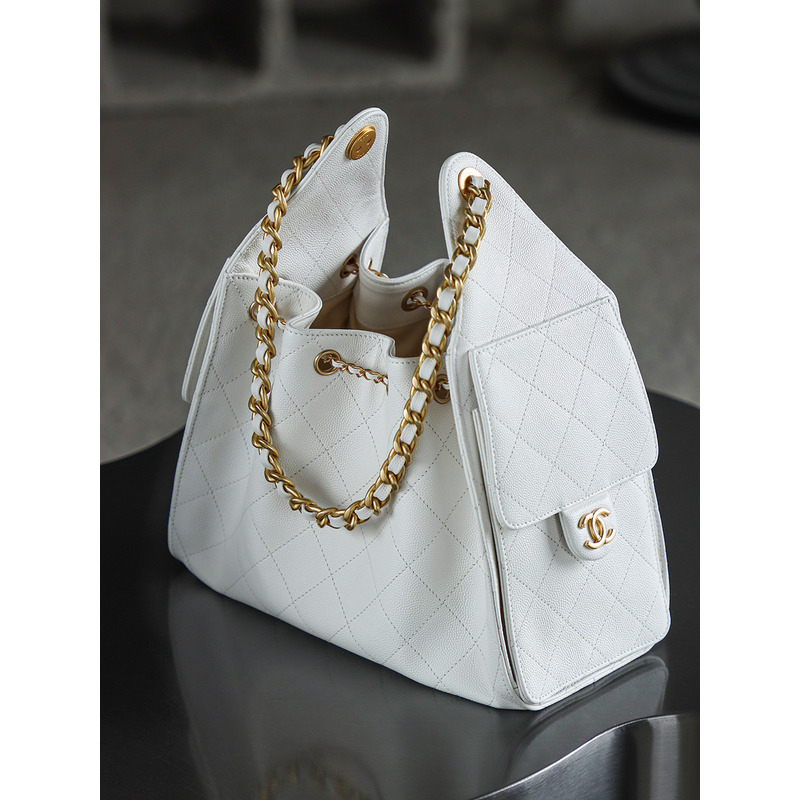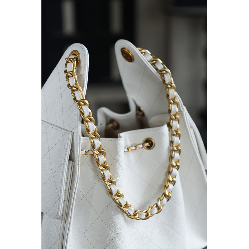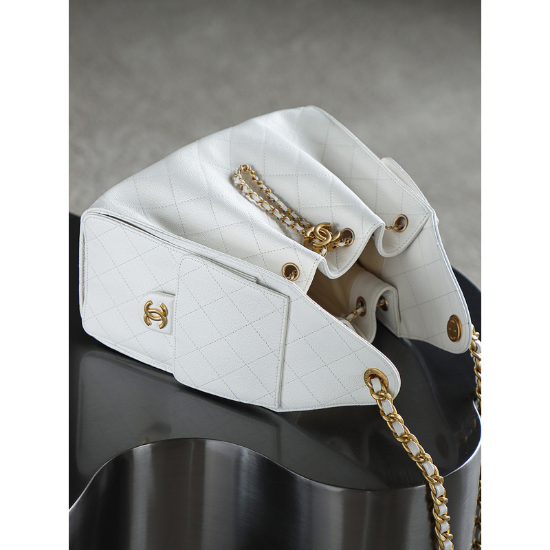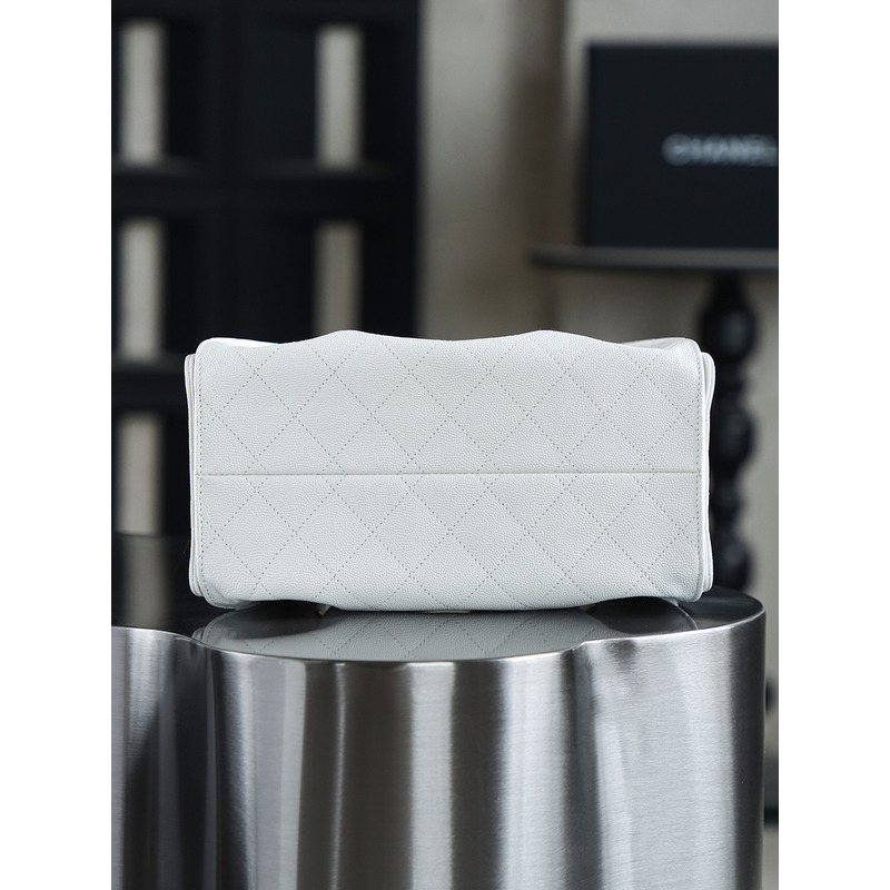 Chanel 25 Small Handbag Grained Calfskin & 24K Gold-Tone Metal White
