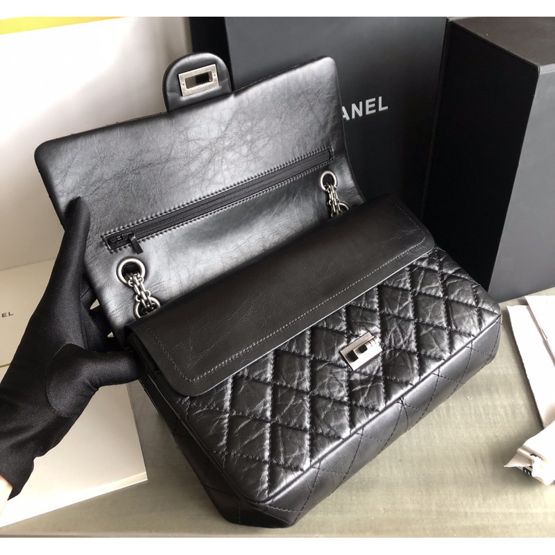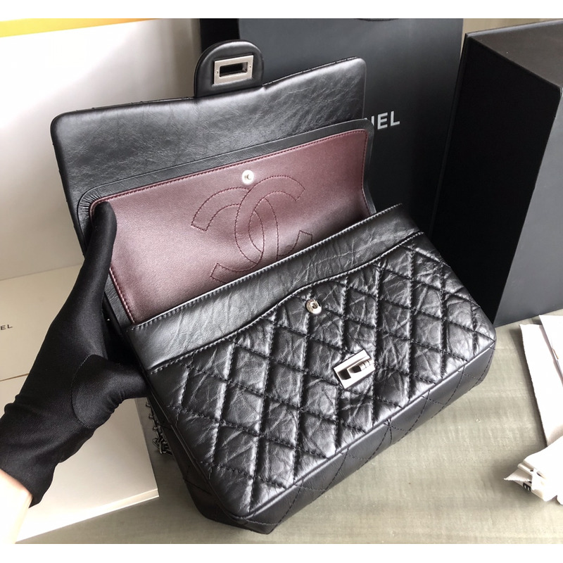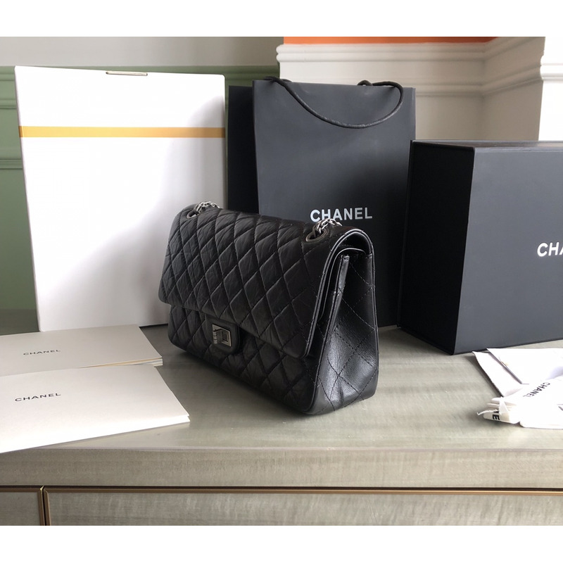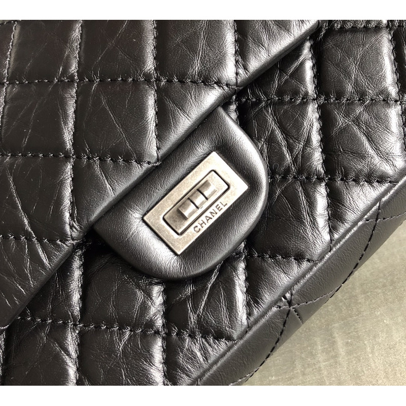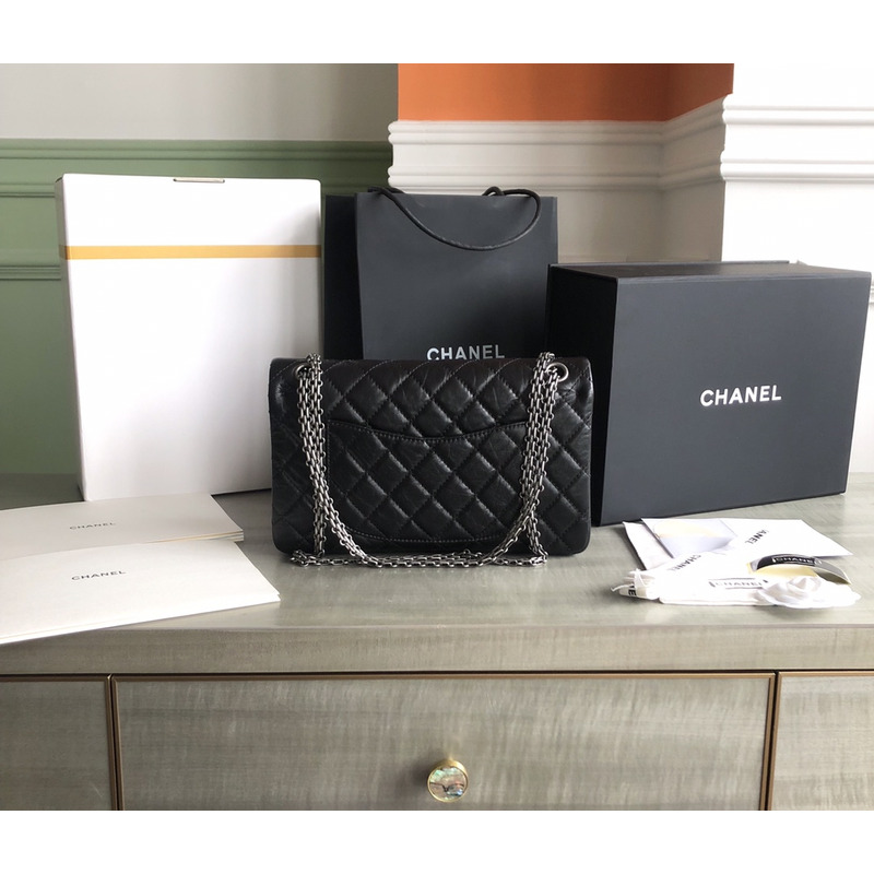 Chanel 2.55 Handbag With Silver-Tone Metal In Black Leather