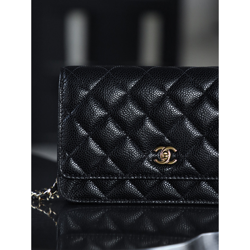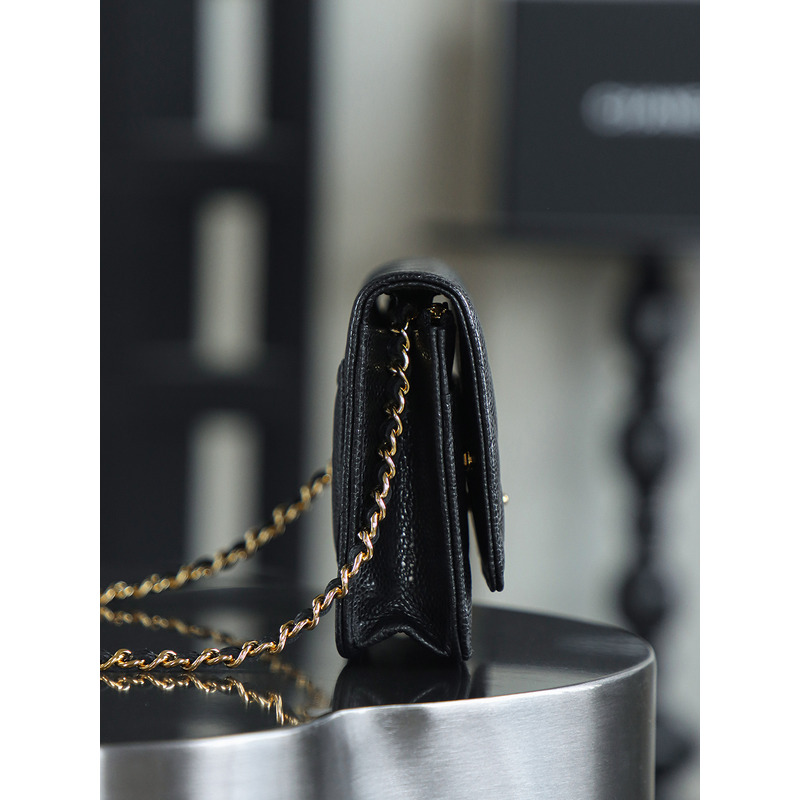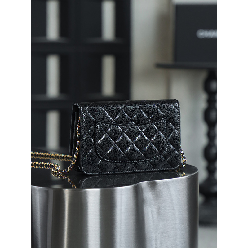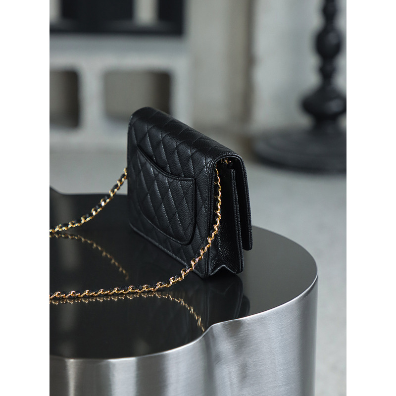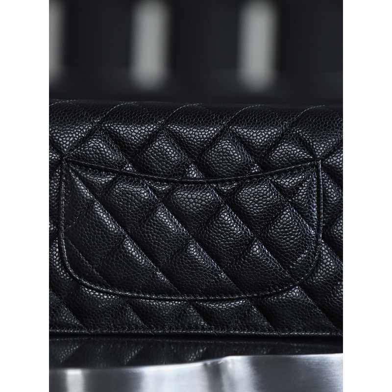 Chanel Black Caviar Leather Quilted Flap Bag 24K Glod