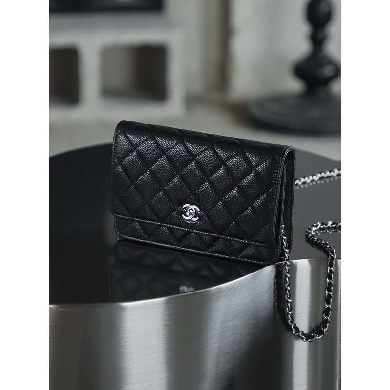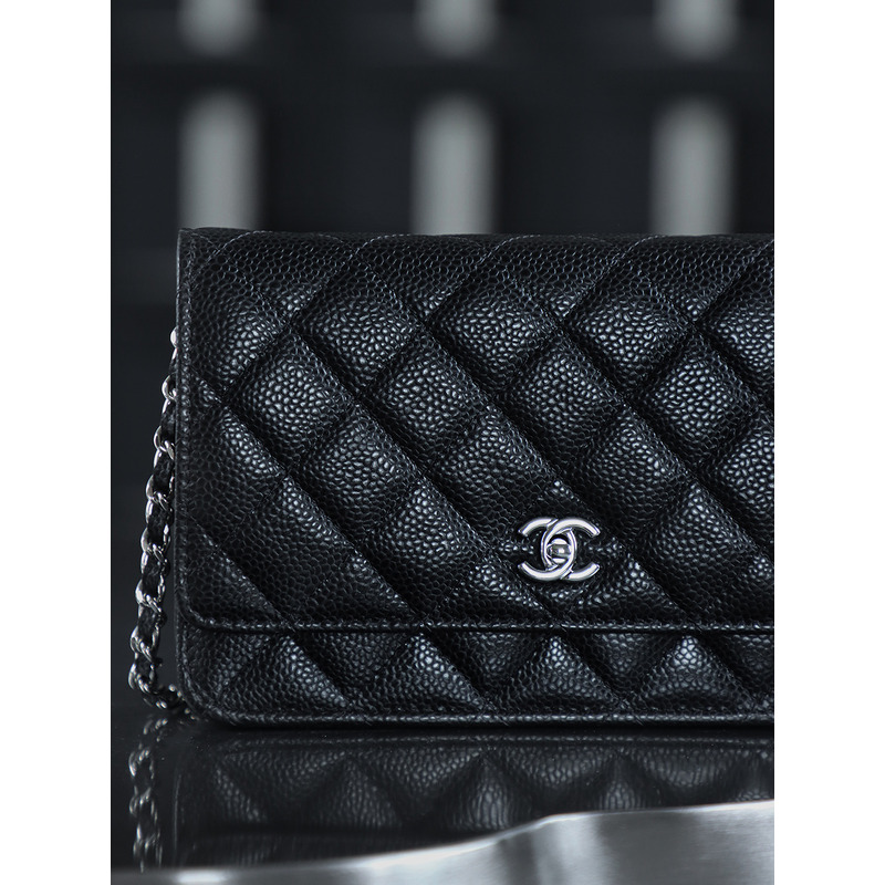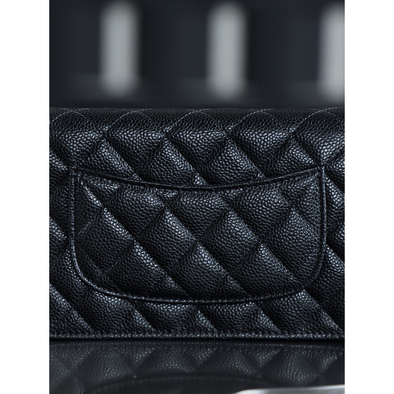 Chanel Black Caviar Leather Quilted Flap Bag 24K Silver