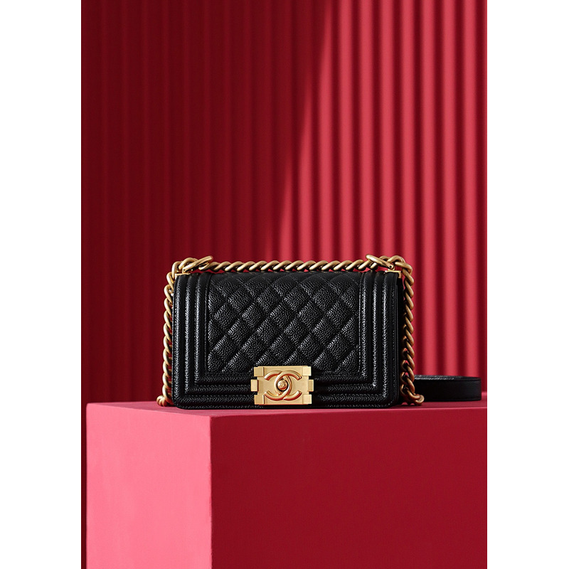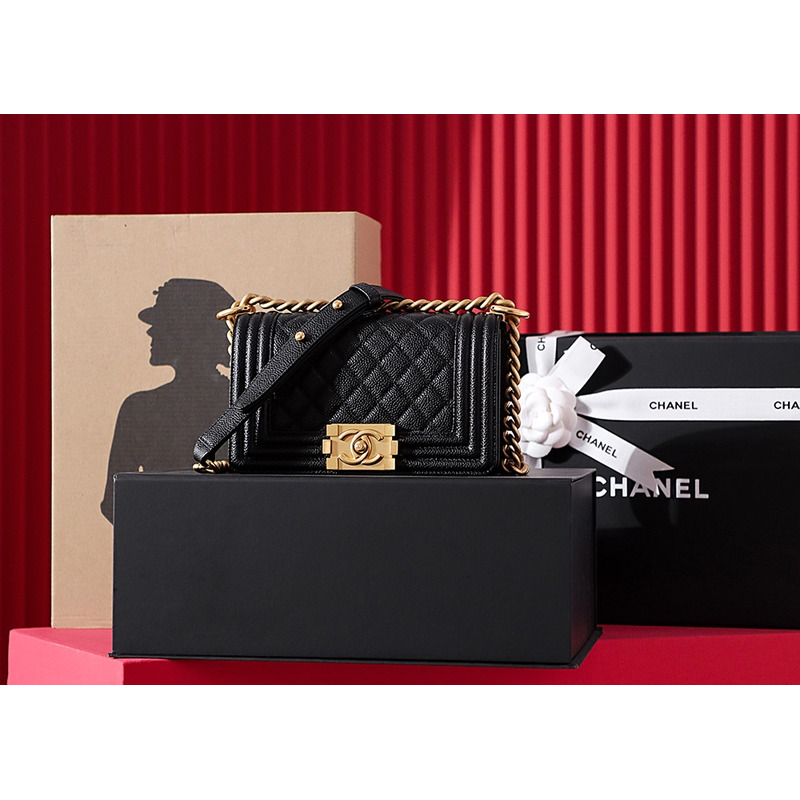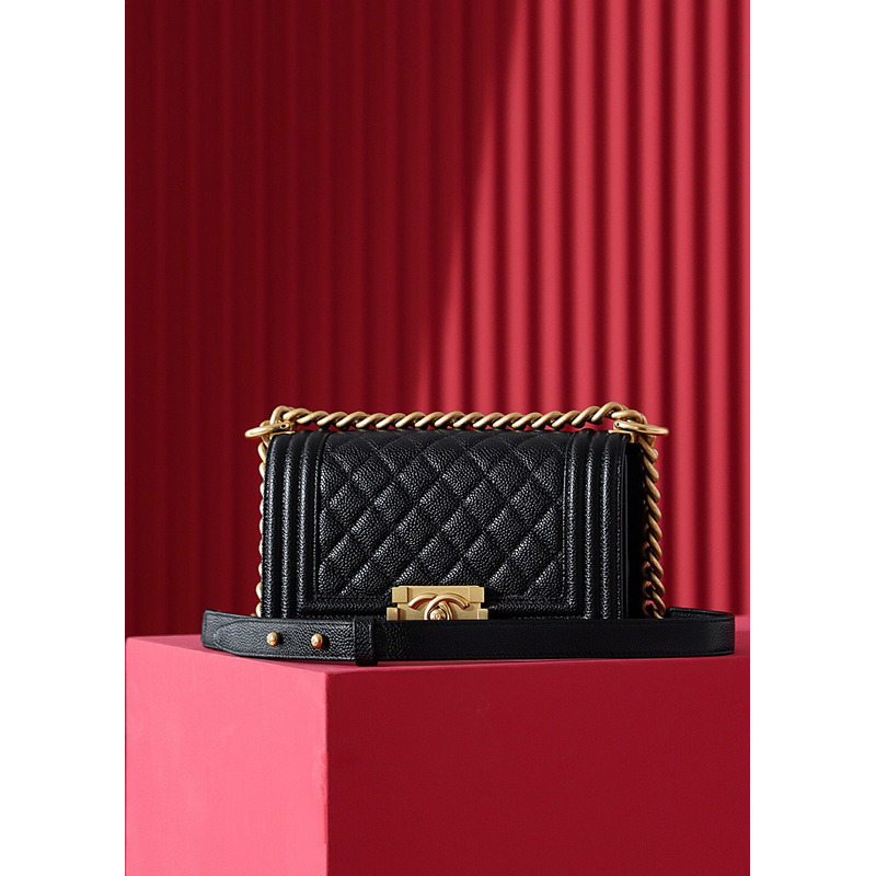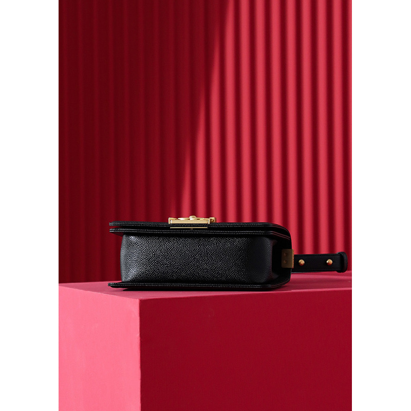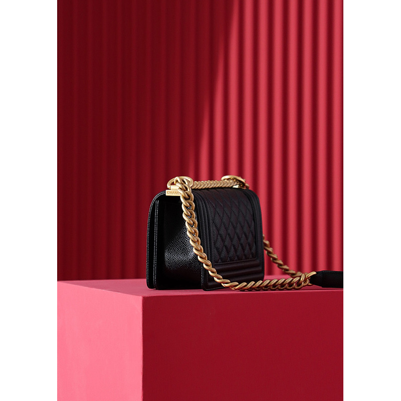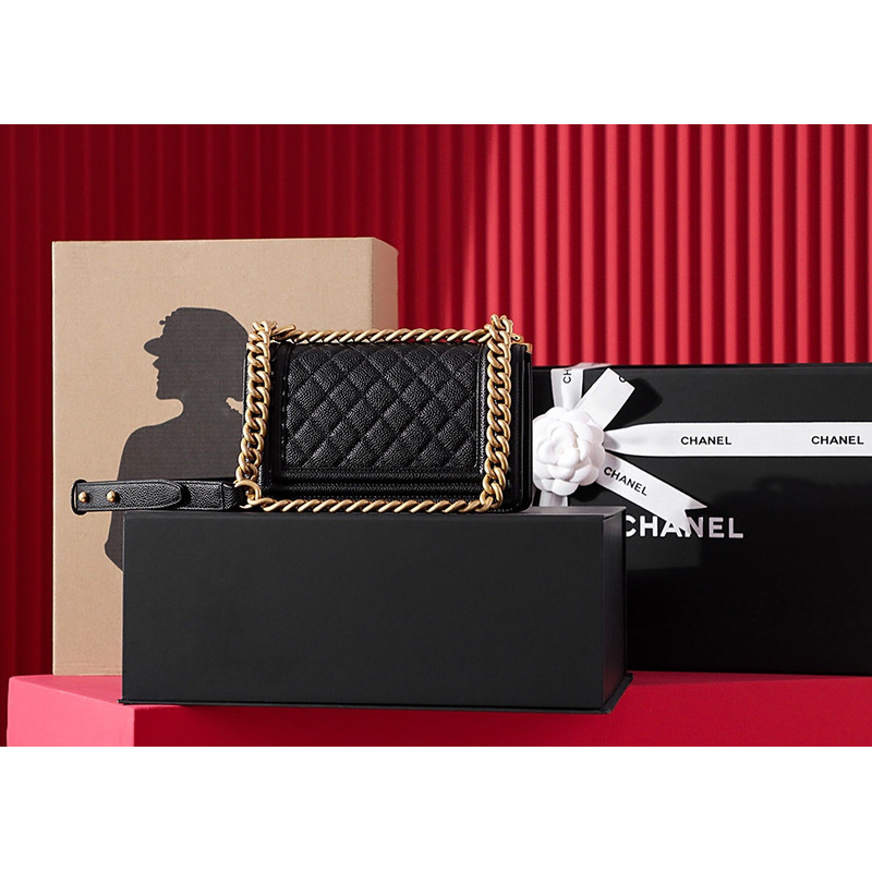 Chanel Boy Chanel Handbag Black Calfskin Ruthenium Finish Metal 24K Gold