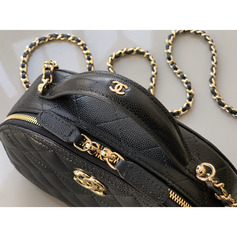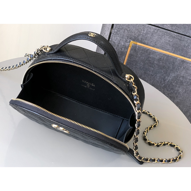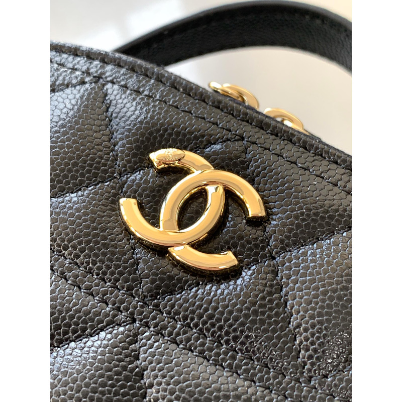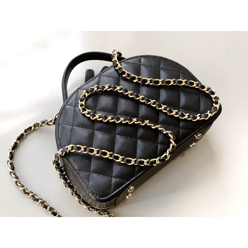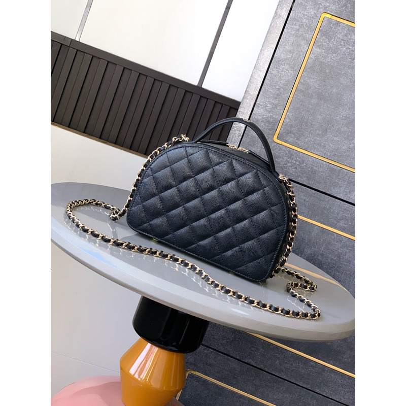 Chanel Cambon Line Dome Bag With Top Handle & Chain Strap In Black