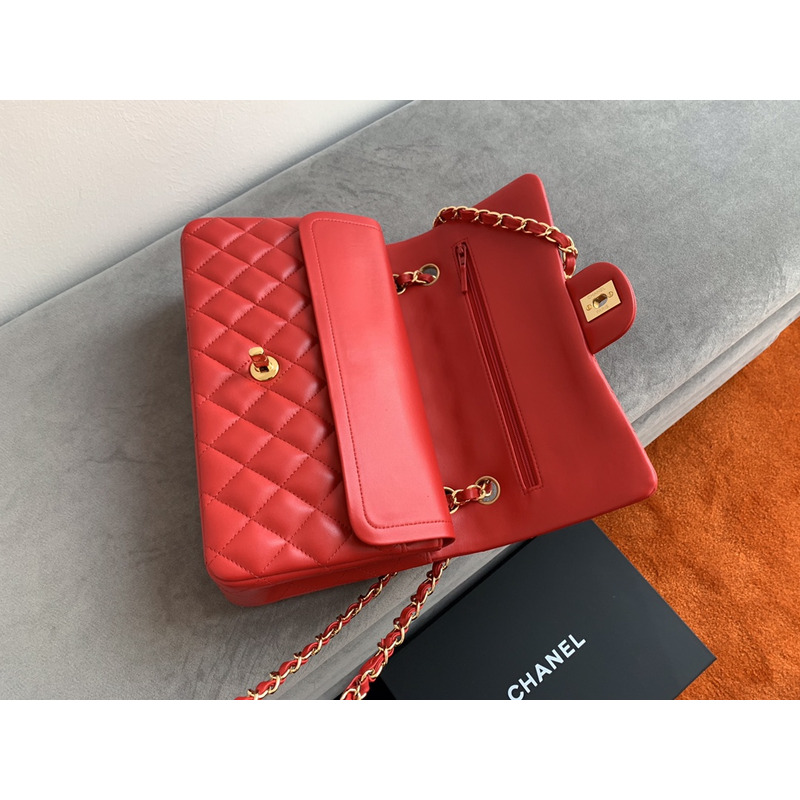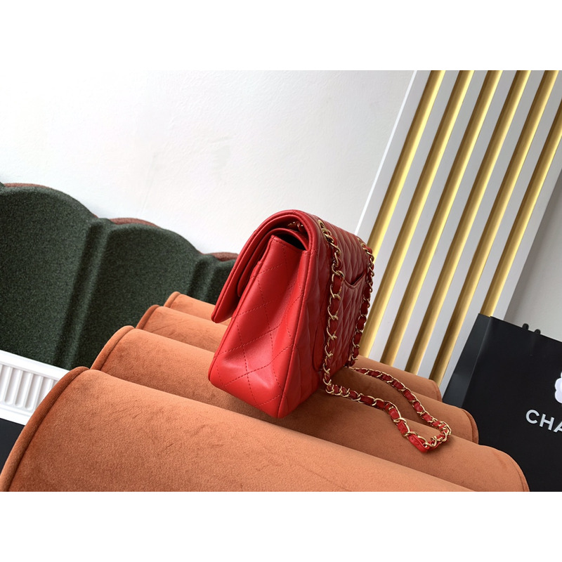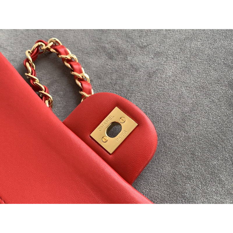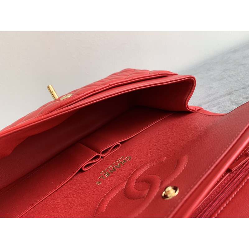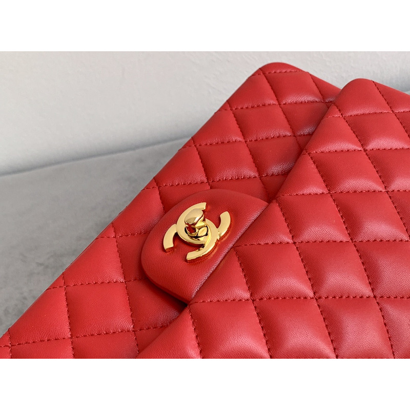 Chanel Classic Double Flap Bag With Gold-Tone Metal In Red