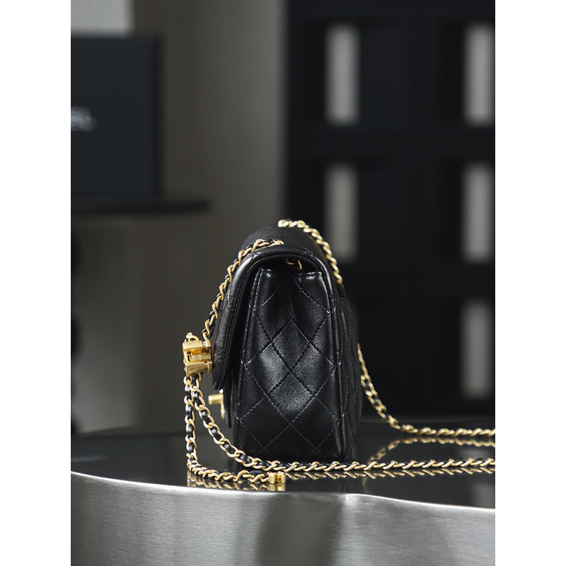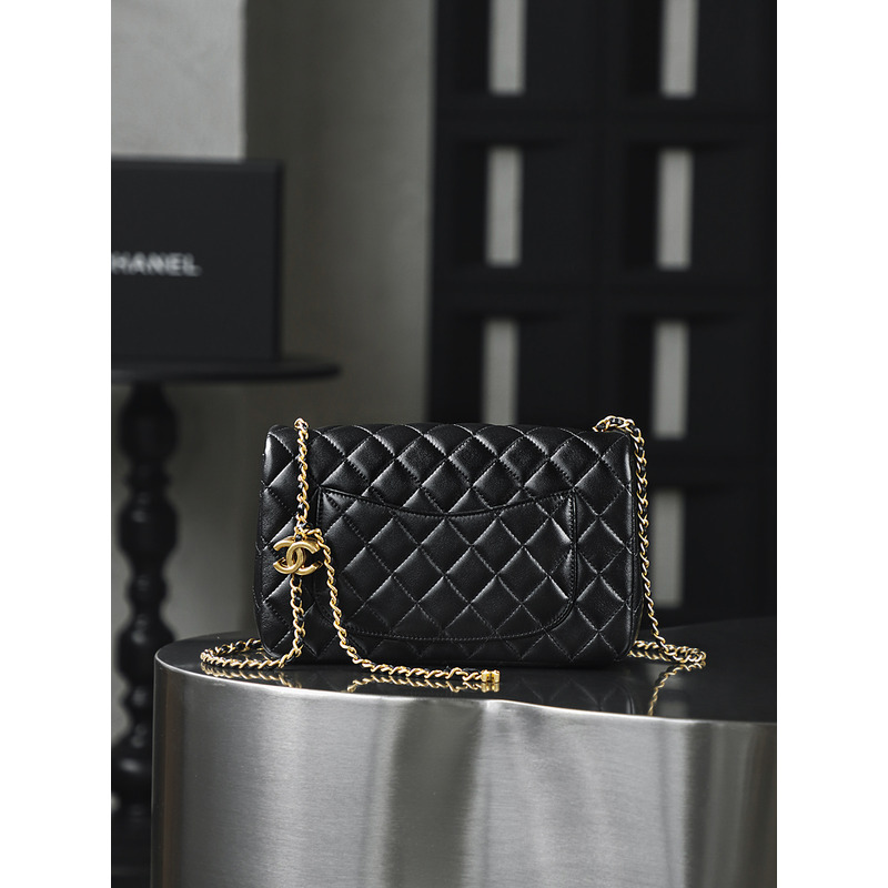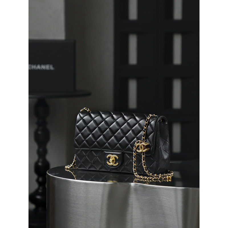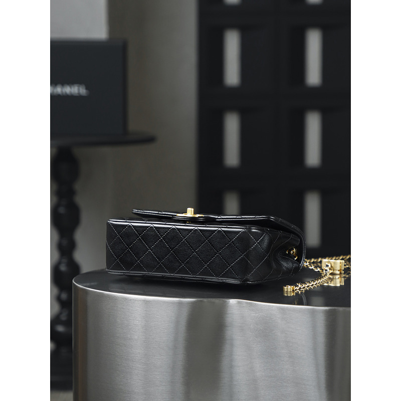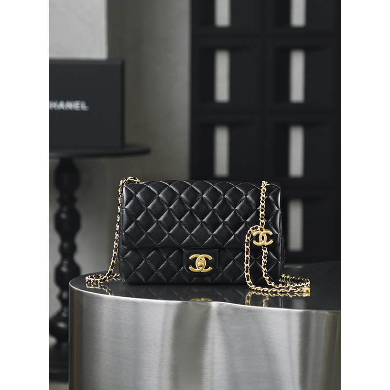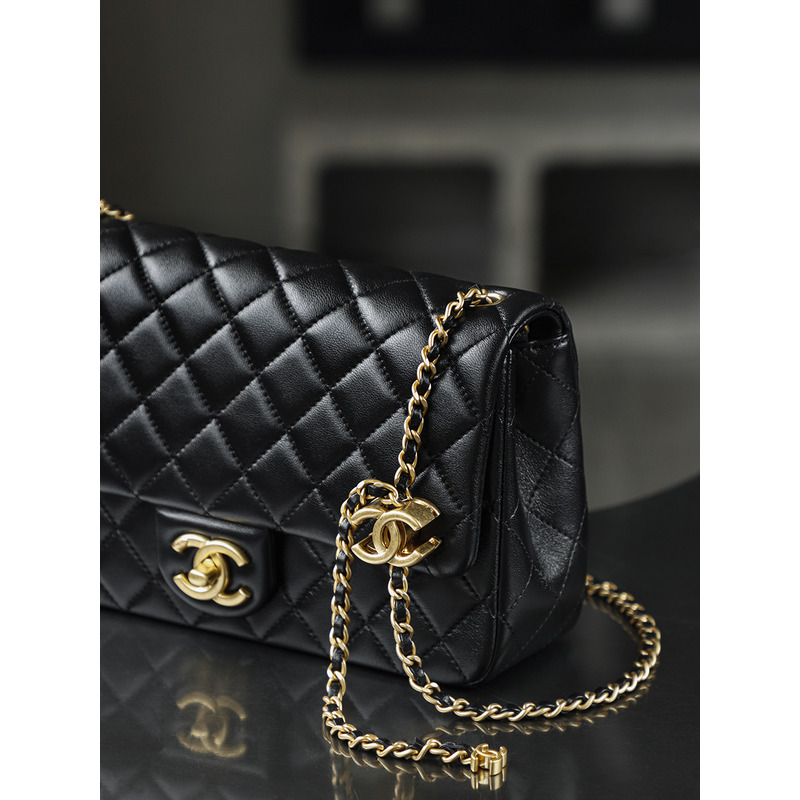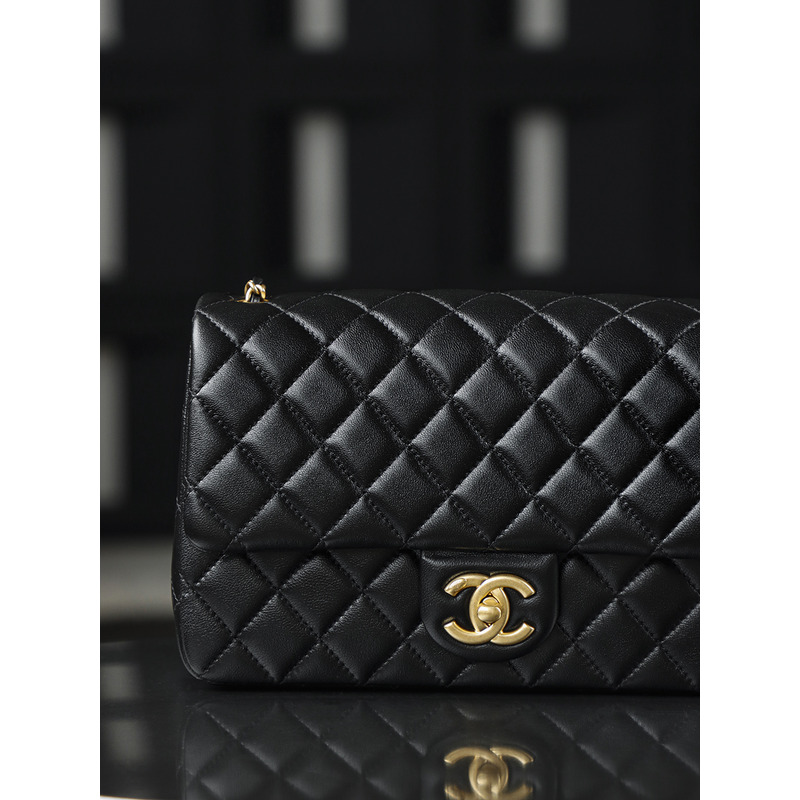 Chanel Classic Flap Bag In Black Quilted Leather 24K Gold