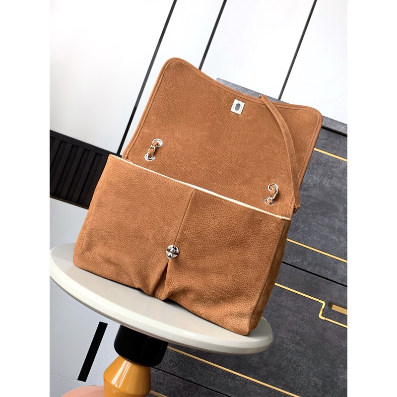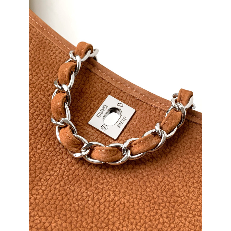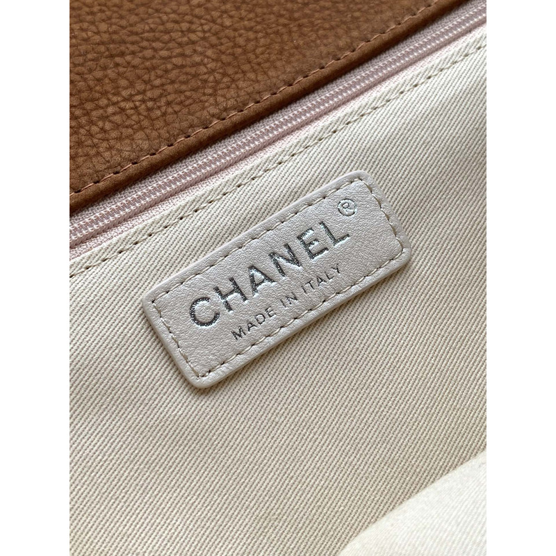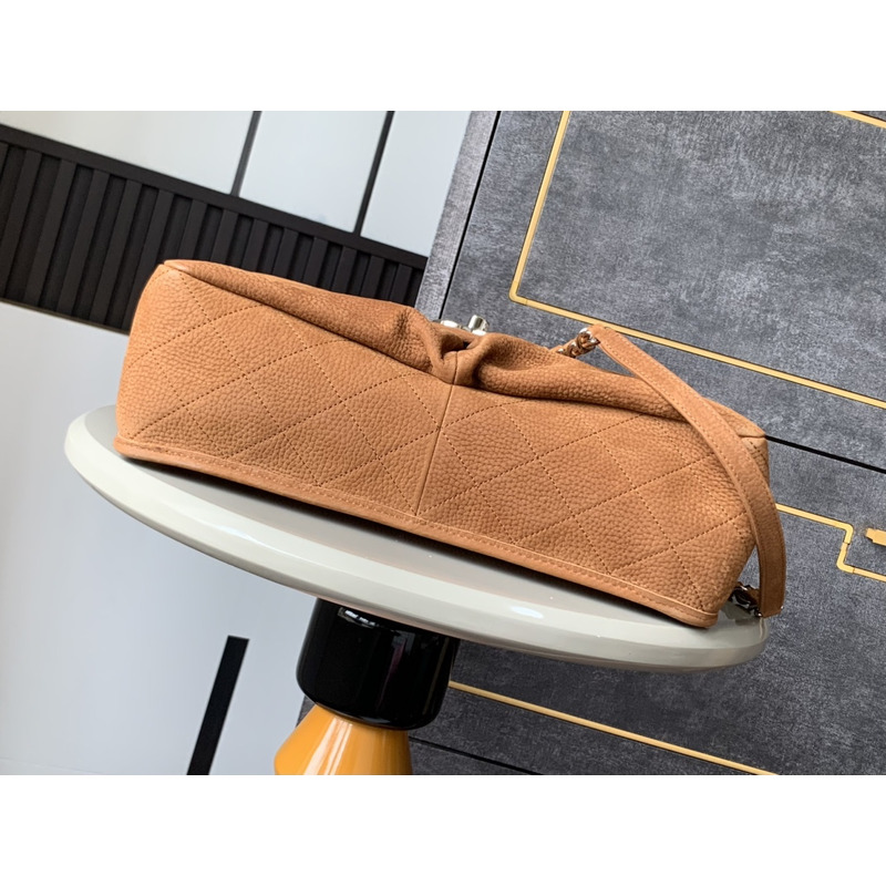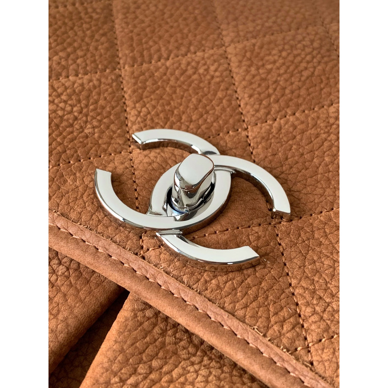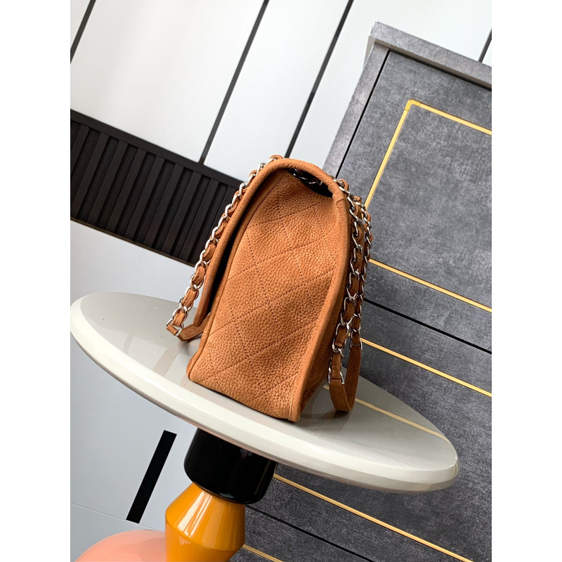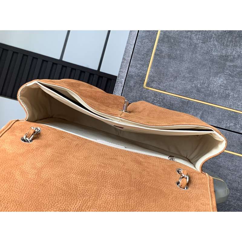 Chanel Classic Flap Bag Leather In Camel Suede With Silver-Tone Hardware