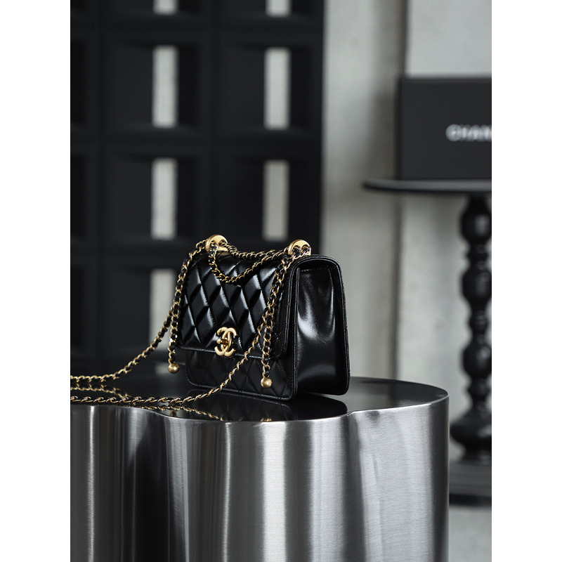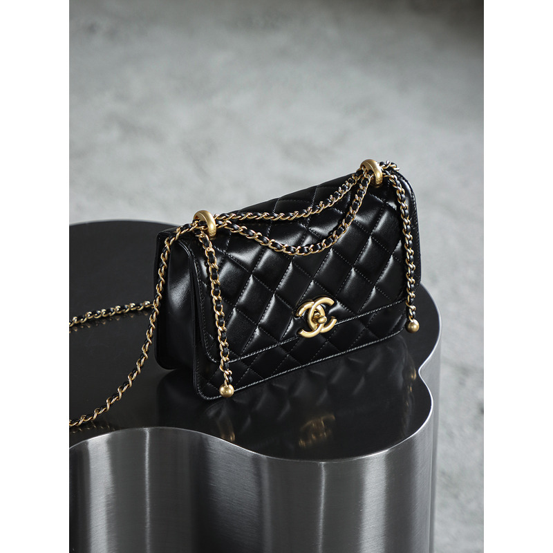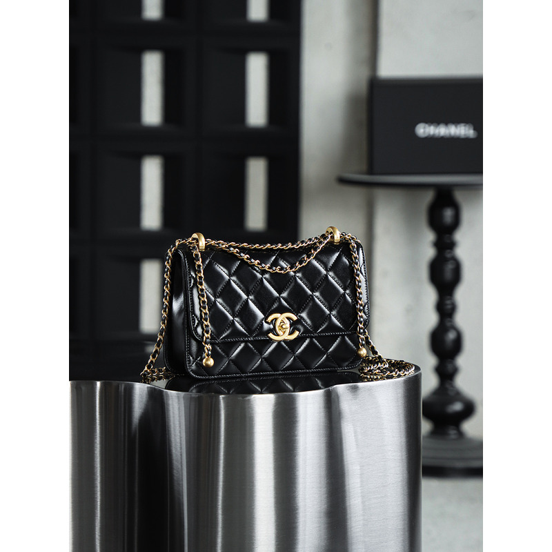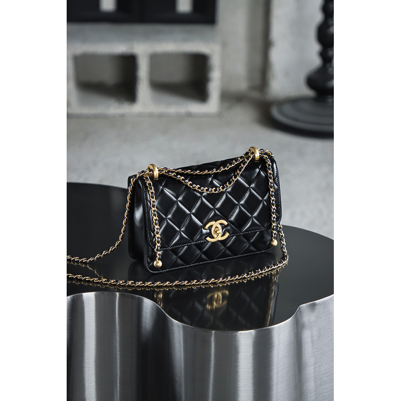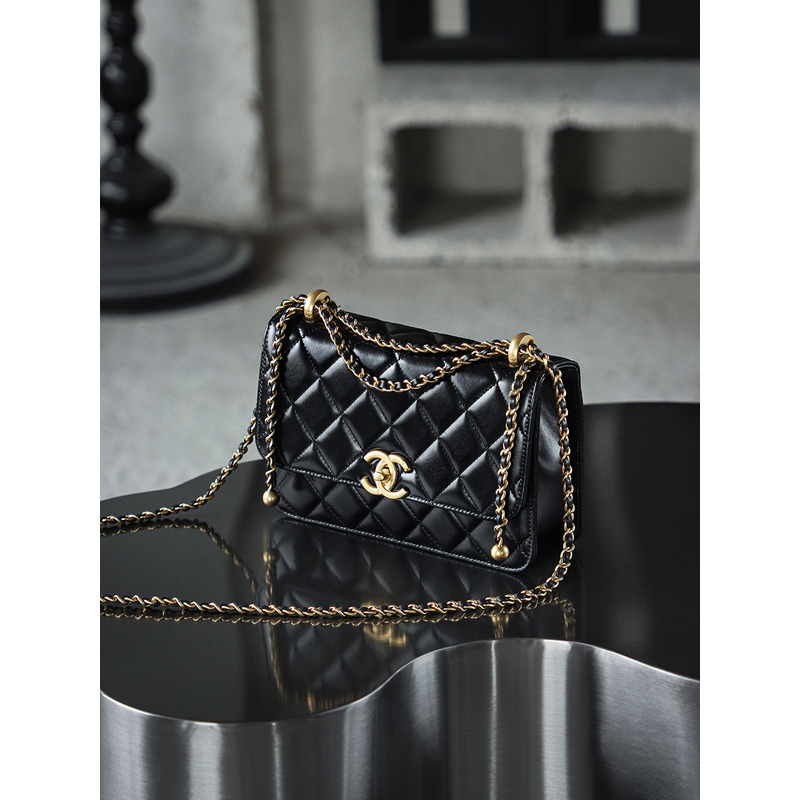 Chanel Classic Handbag Gold-Tone Metal In Black 24K Gold