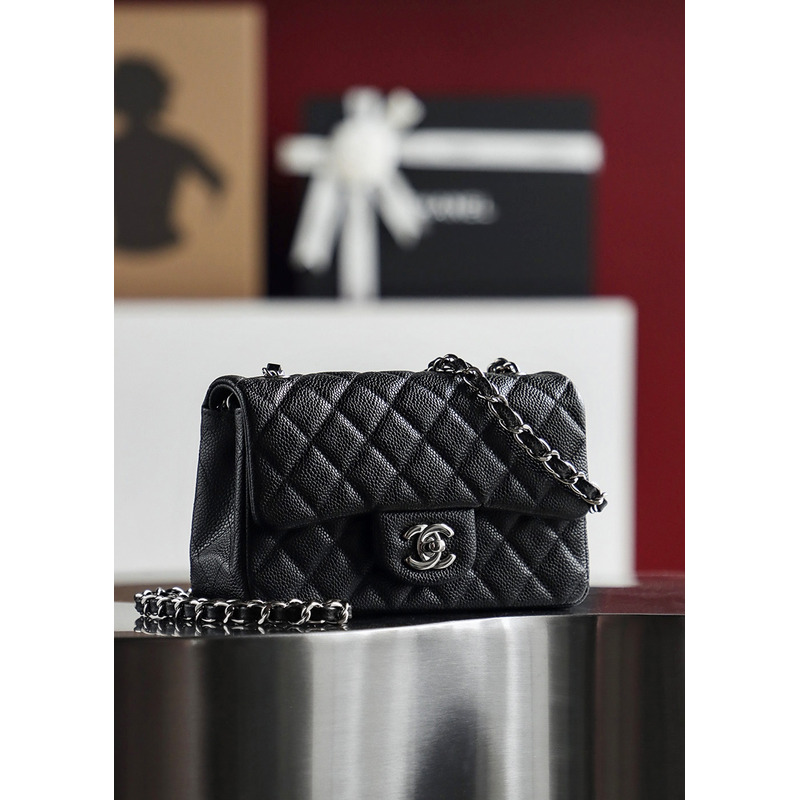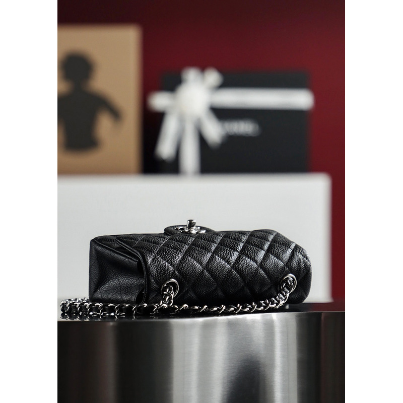 Chanel Classic Handbag Silver-Tone Metal In Black 24K Gold