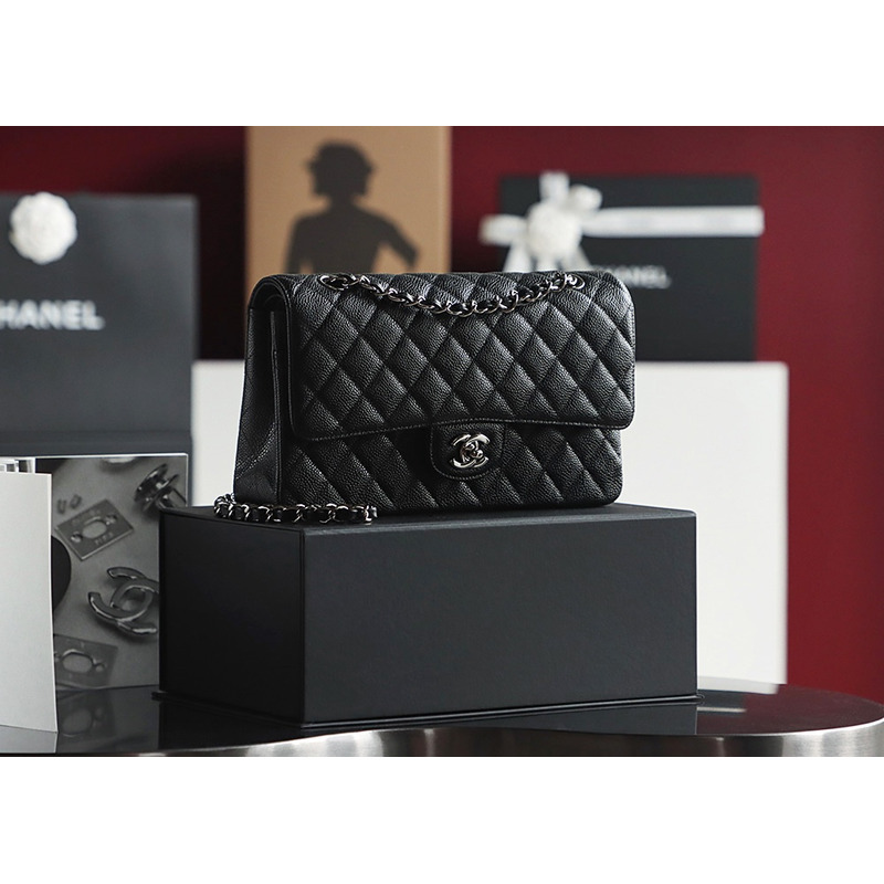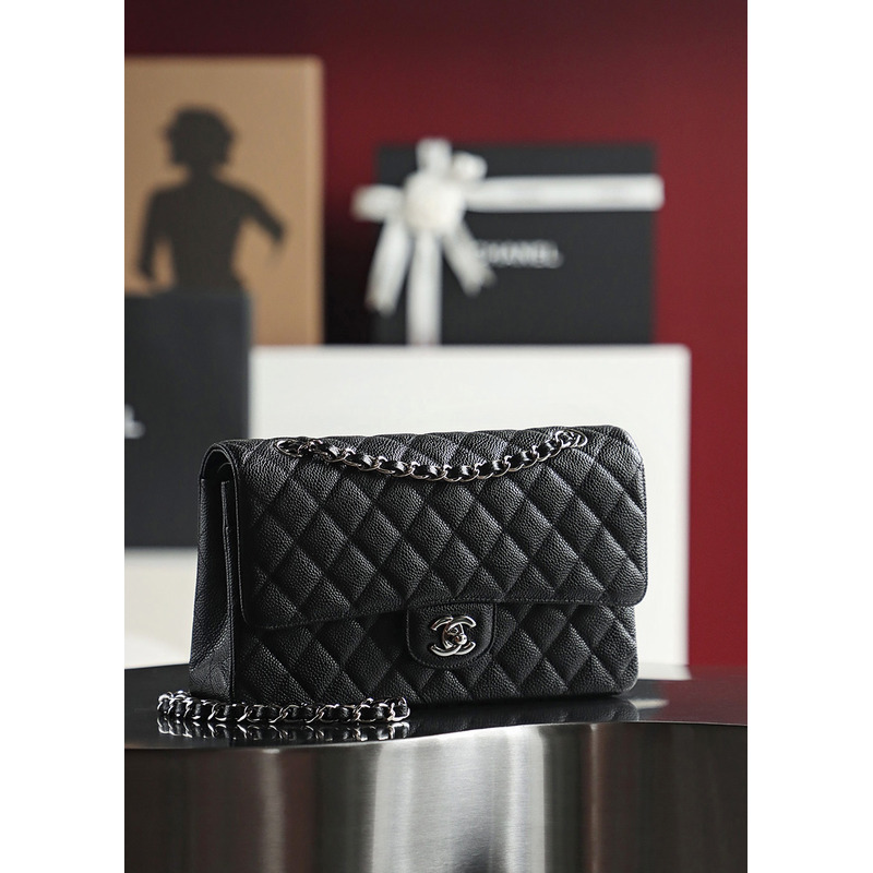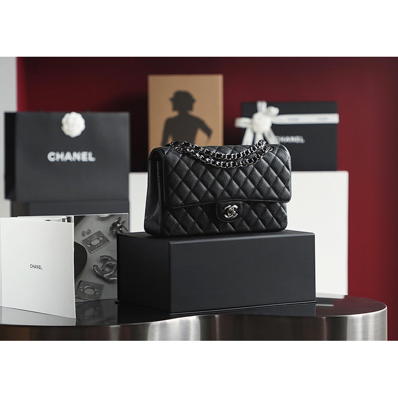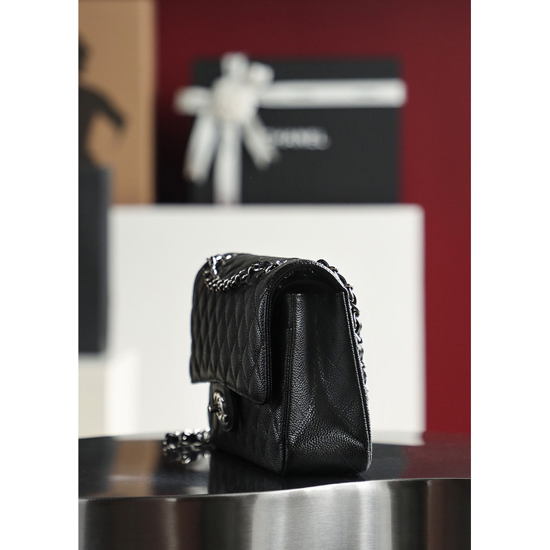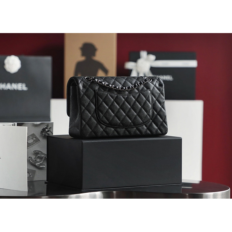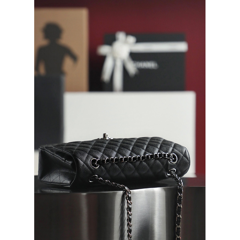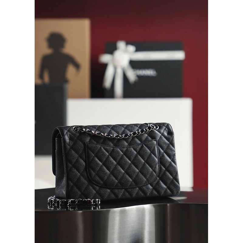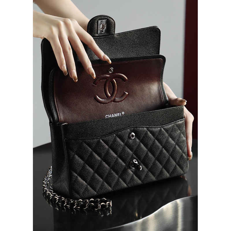 Chanel Classic Handbag Silver-Tone Metal In Black 24K Gold