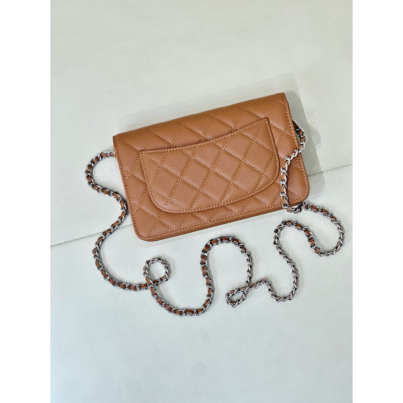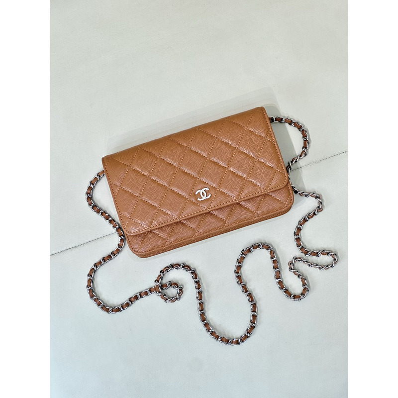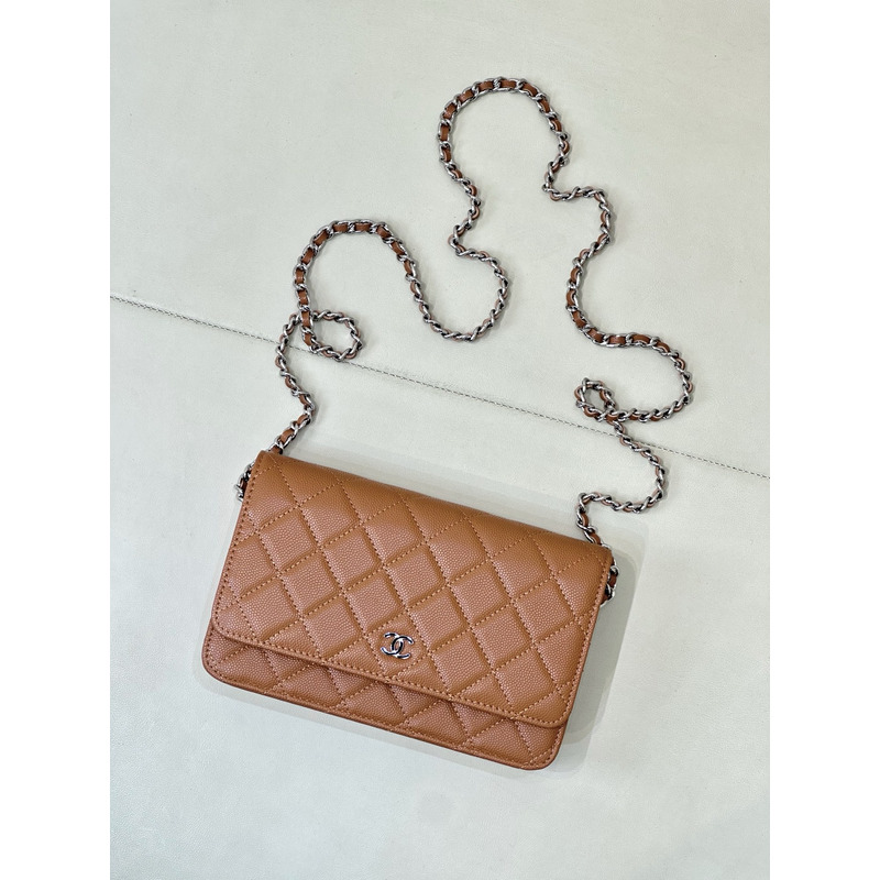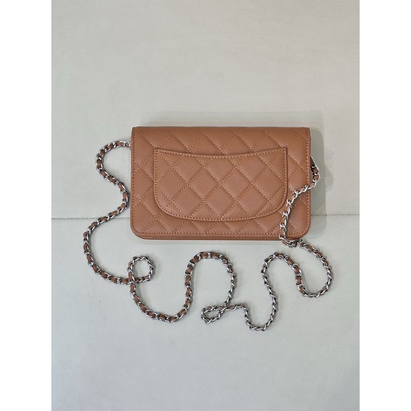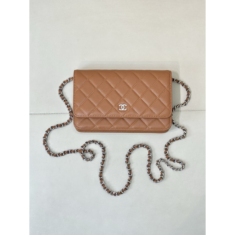 Chanel Classic Quilted Wallet On Chain - Light Tan Leather With Silver-Tone Hardware