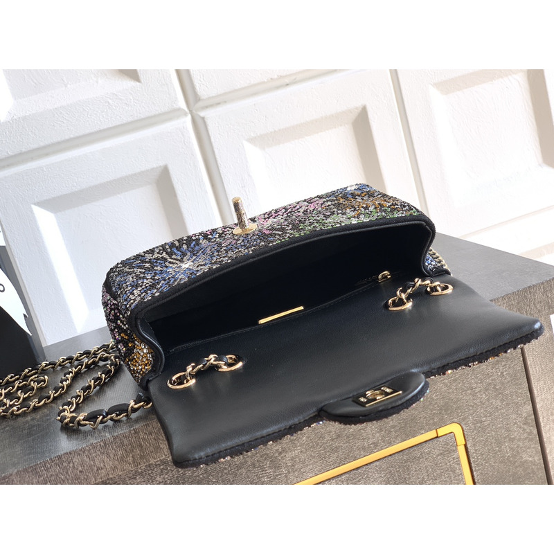 Chanel Coco Neige 2025/26 Collection Evening Bag Strass & Gold-Tone Metal Black & Multicolor