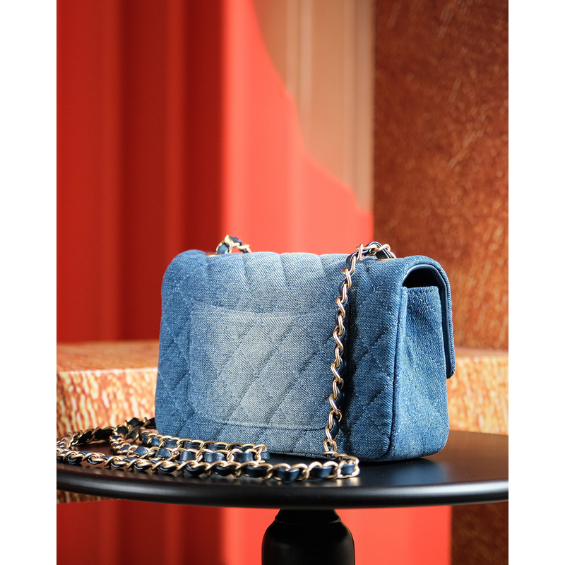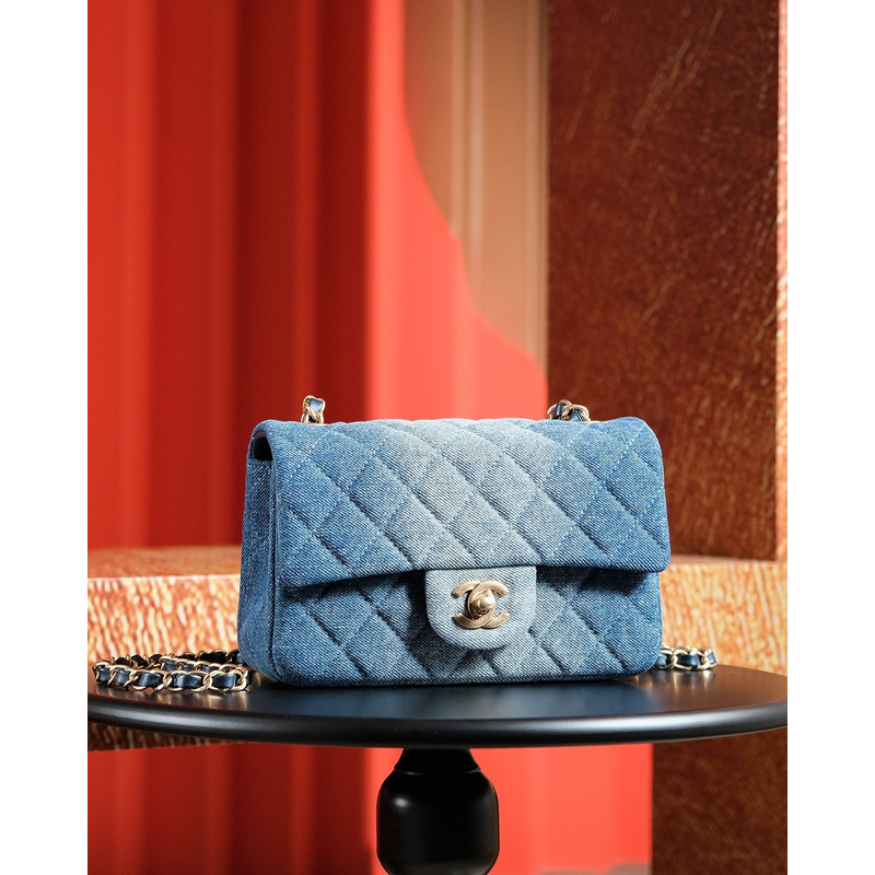Chanel Denim Chain - Strap Flap Bag with 24K Gold Hardware