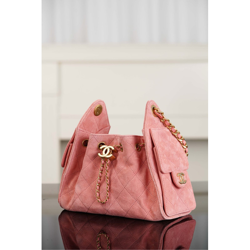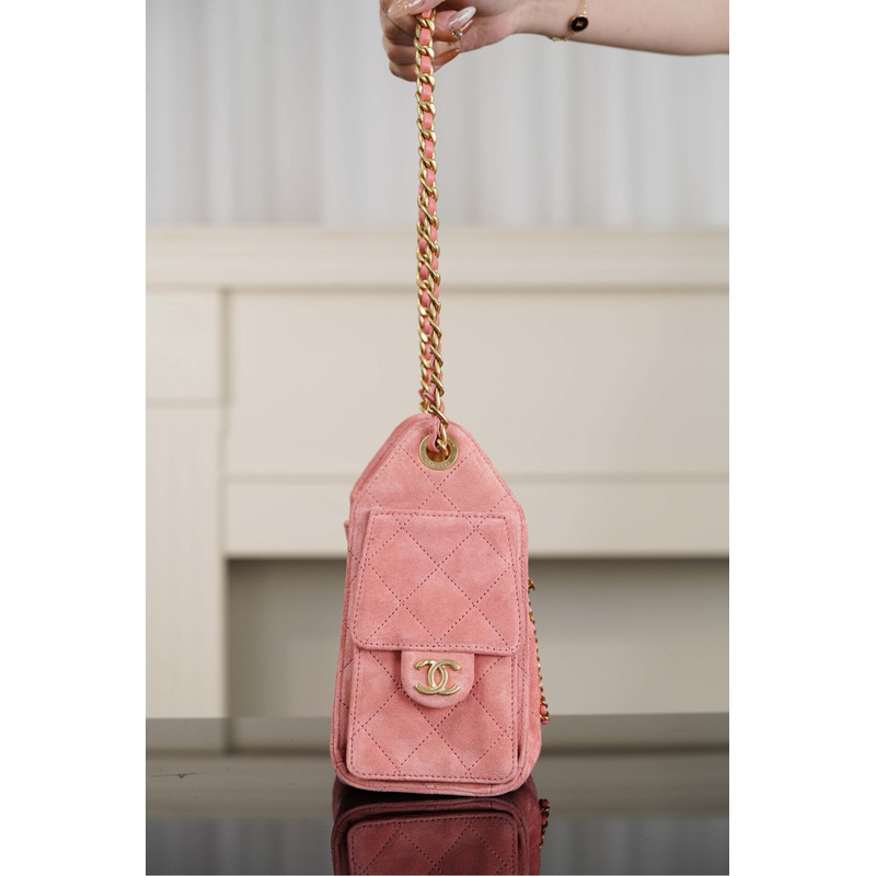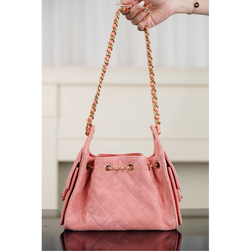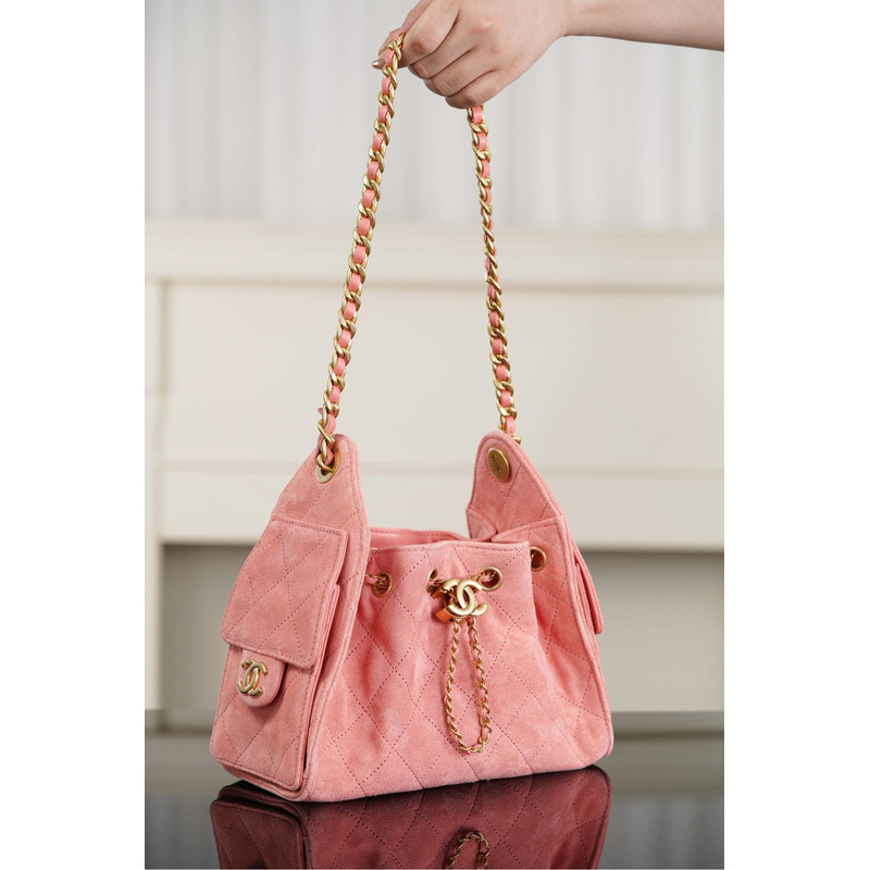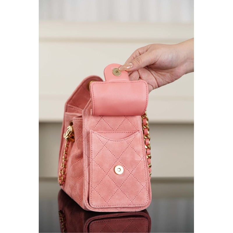 Chanel Handbag Suede Calfskin & Gold Metal In Pink