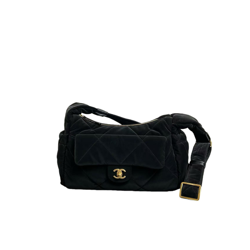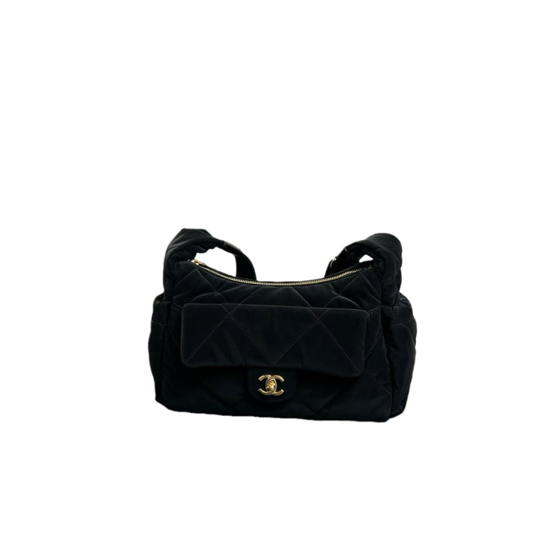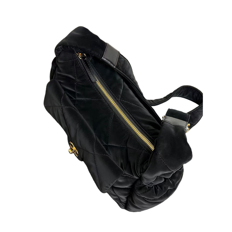 Chanel Large Bowling Bag Velvet Effect Nylon Gold Tone Metal