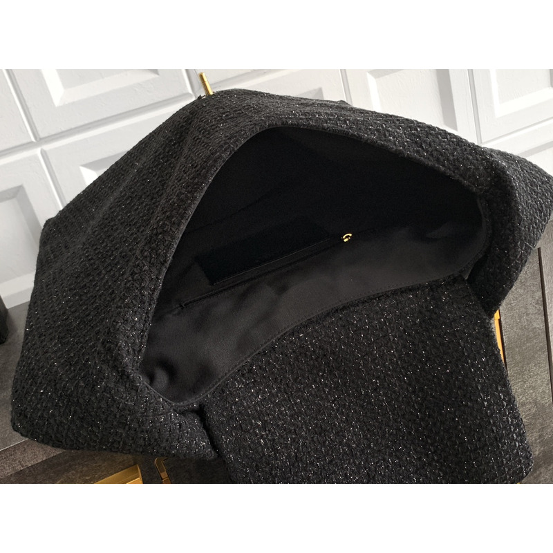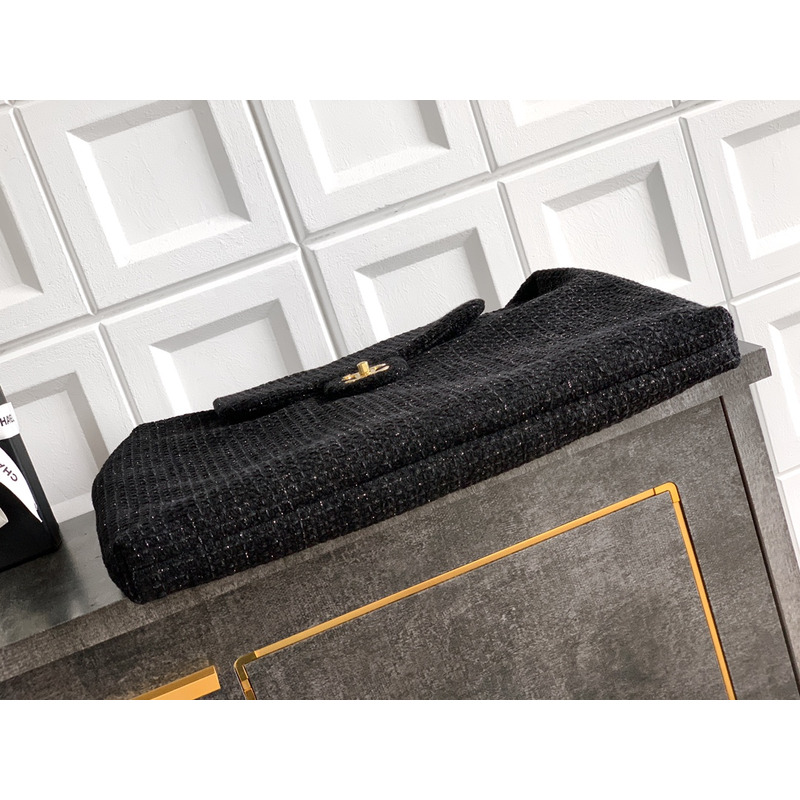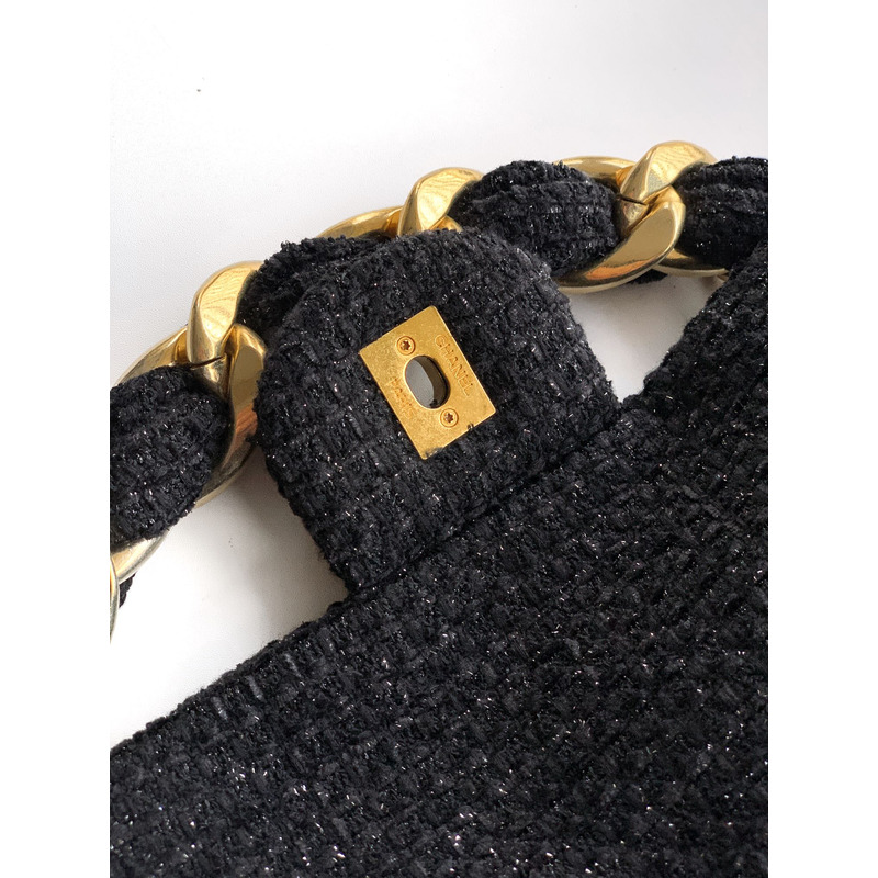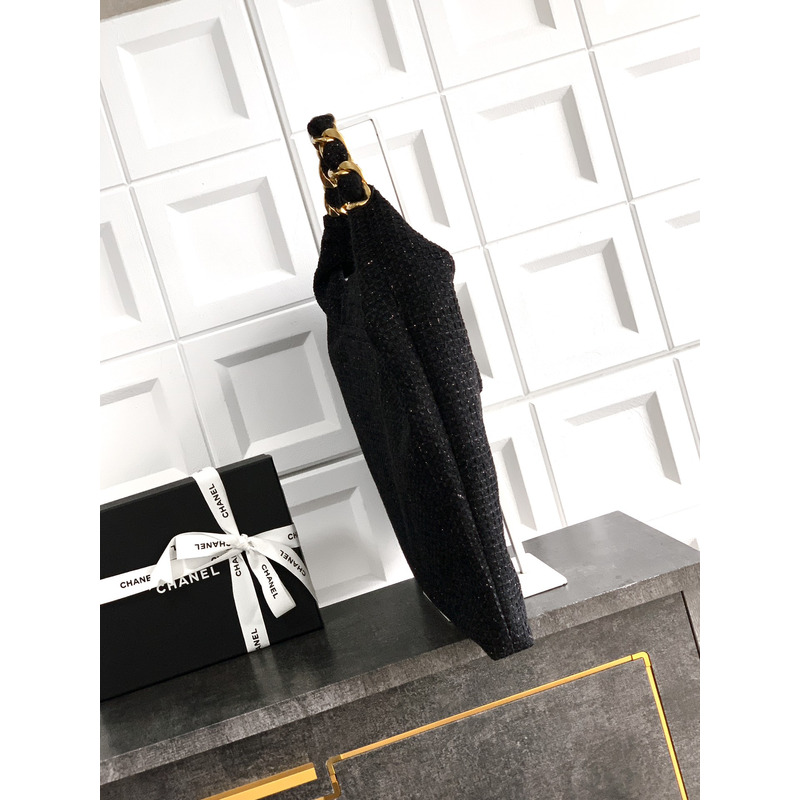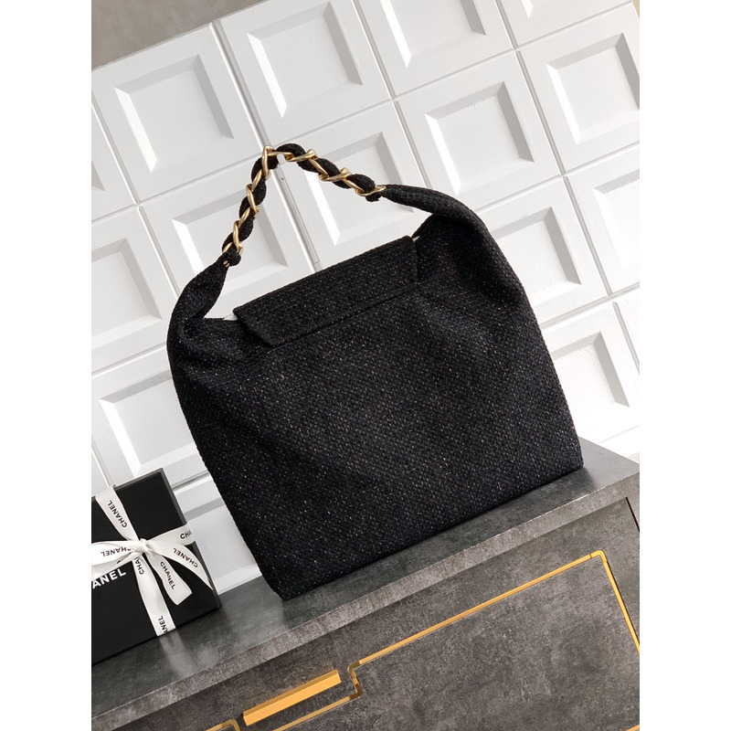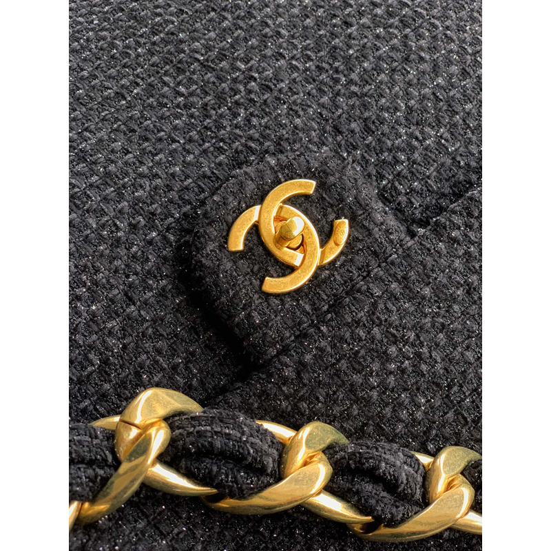 Chanel Maxi Hobo Bag In Black Cotton Tweed