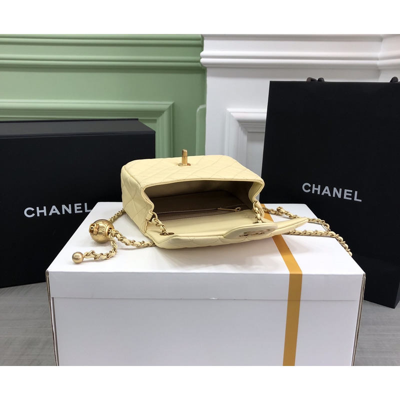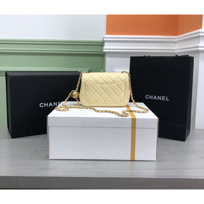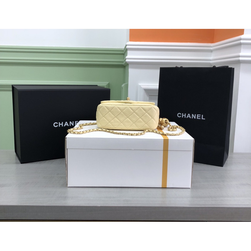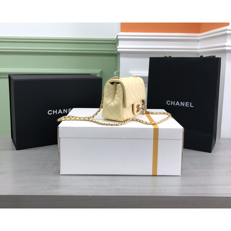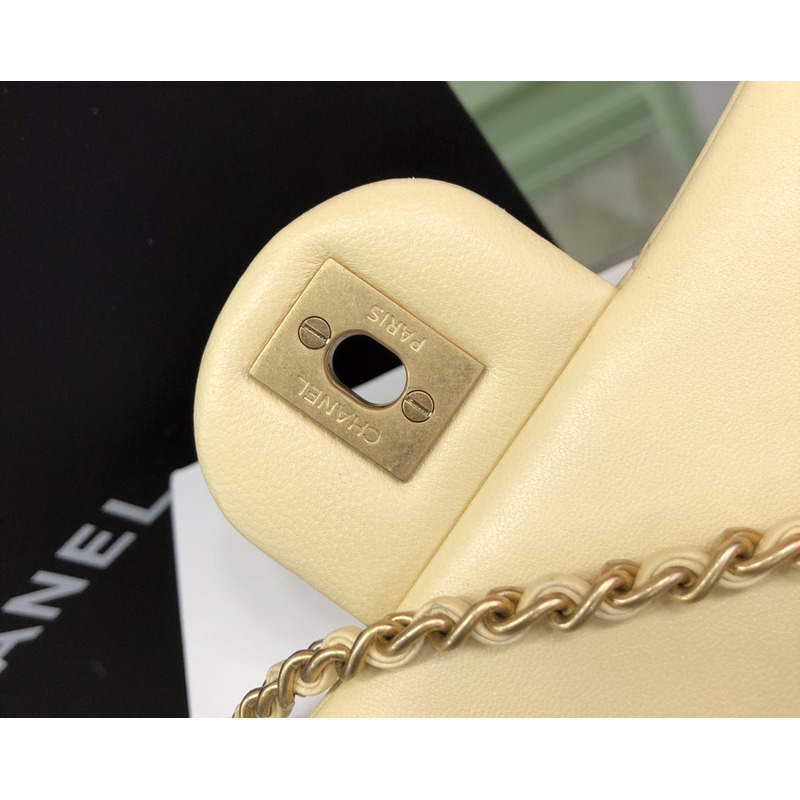 Chanel Pale Yellow Quilted Leather Classic Mini Flap Bag 24k Gold