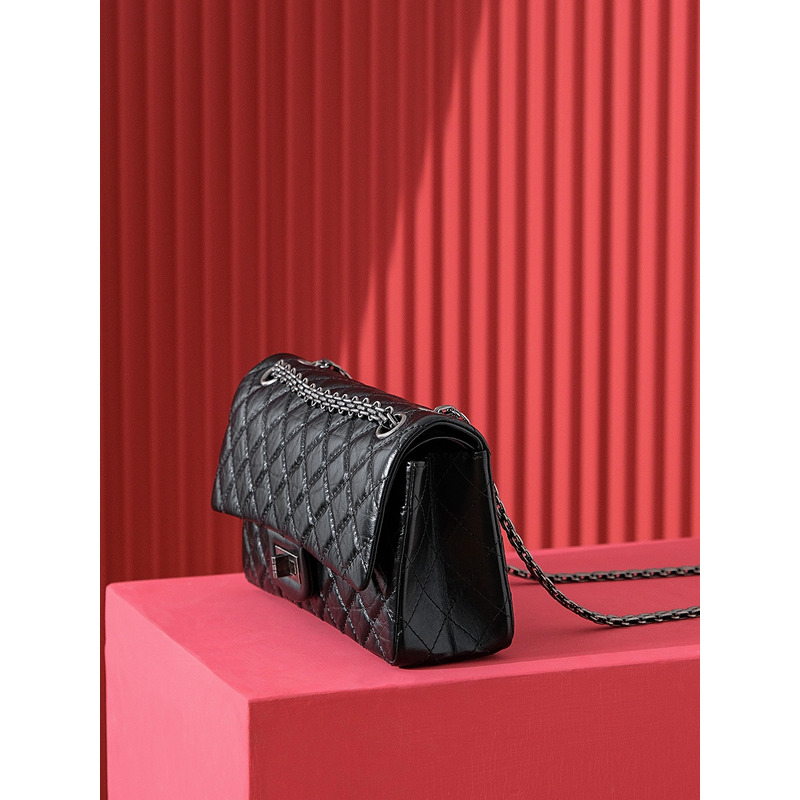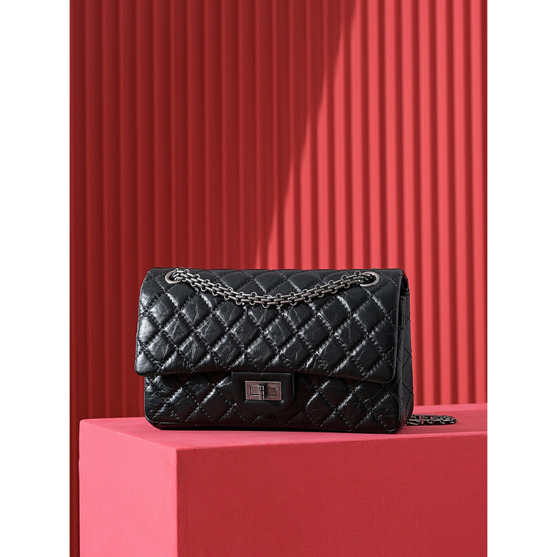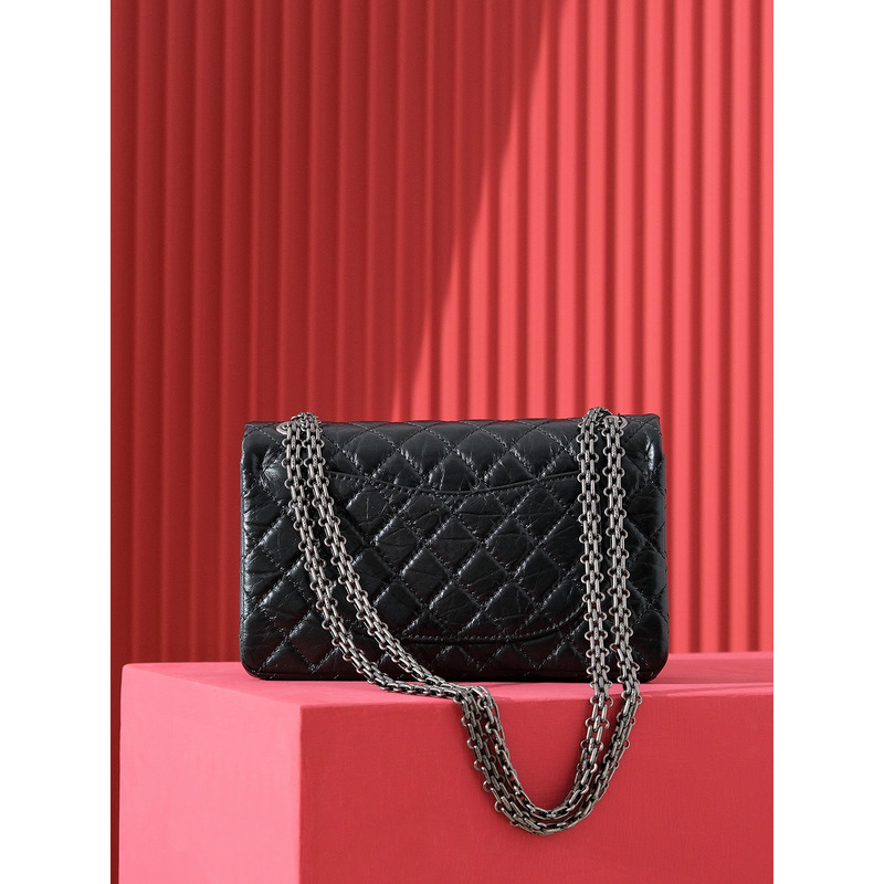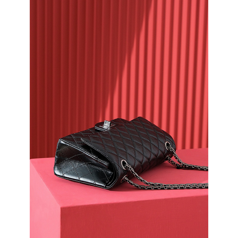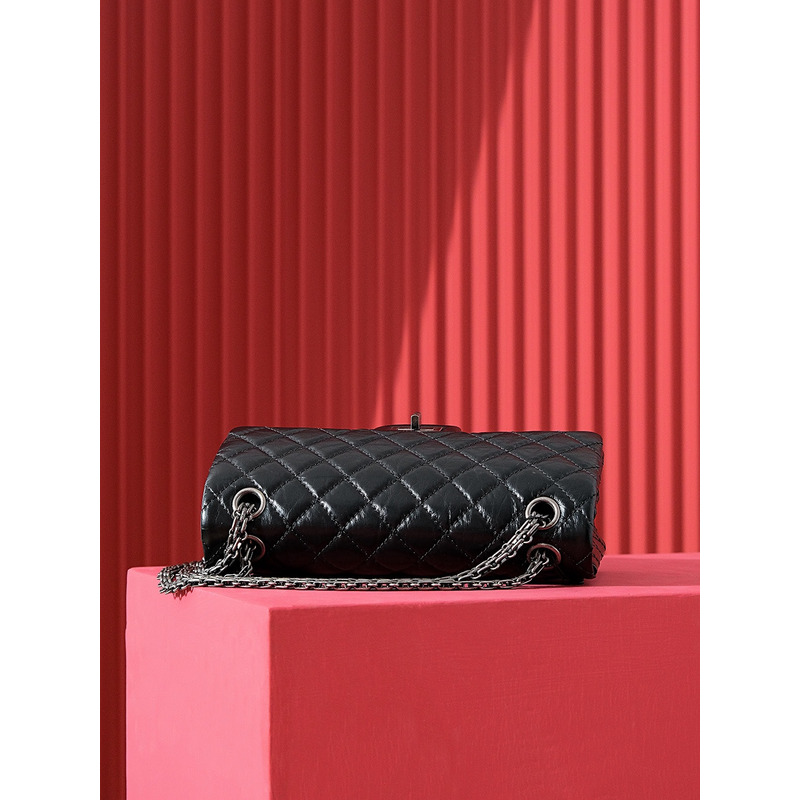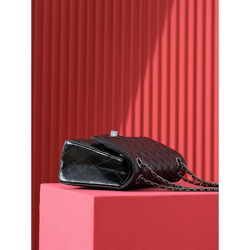 Chanel Quilted Aged Calfskin 24K Silver Double Flap Bag Black