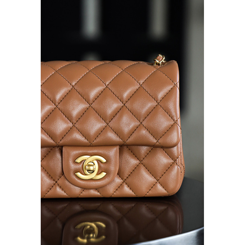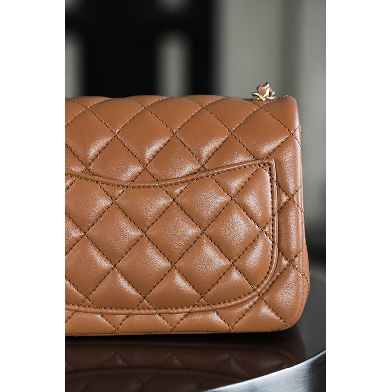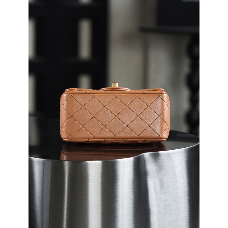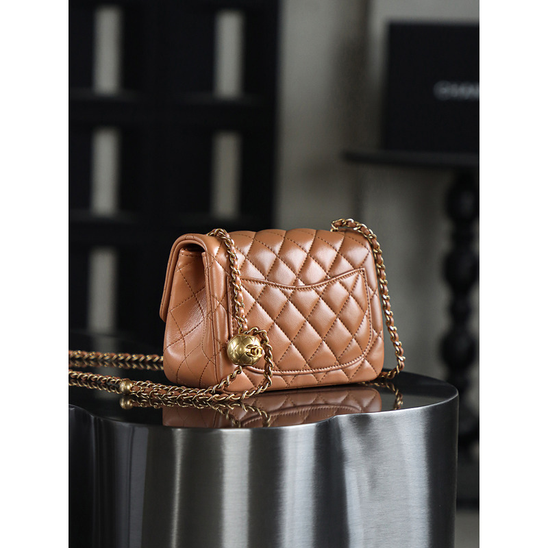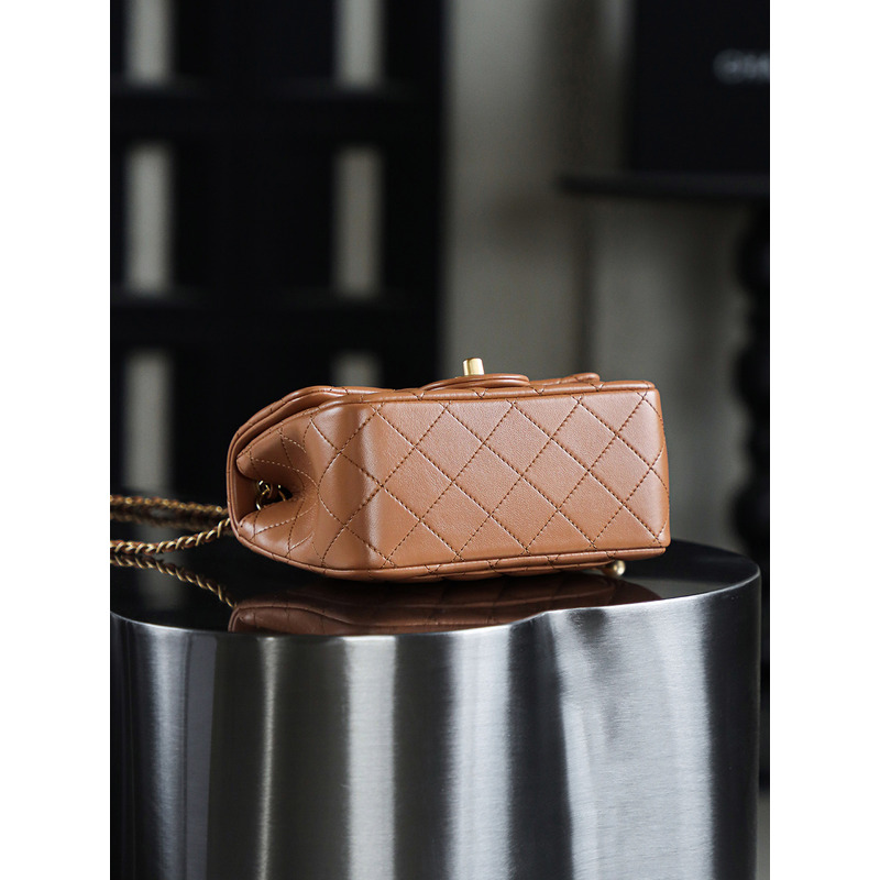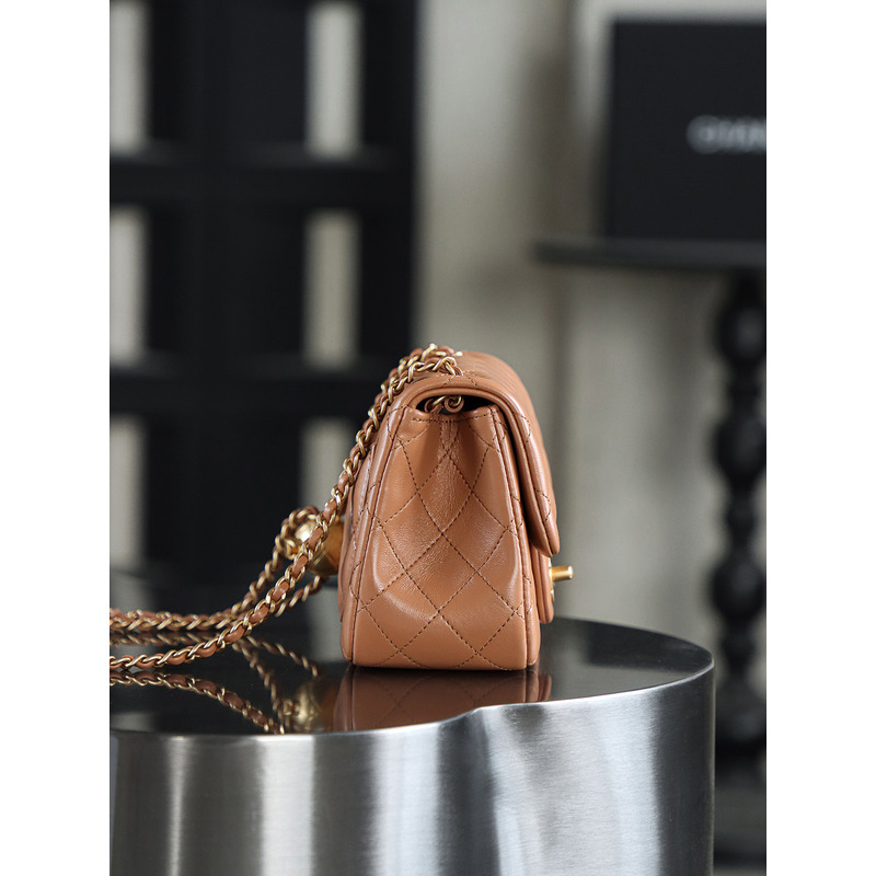 Chanel Quilted Mini Pearl Crush Flap 24K Gold Bag Brown
