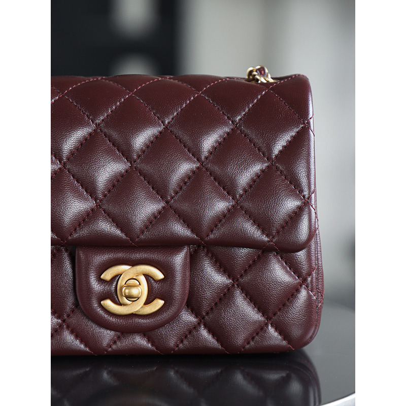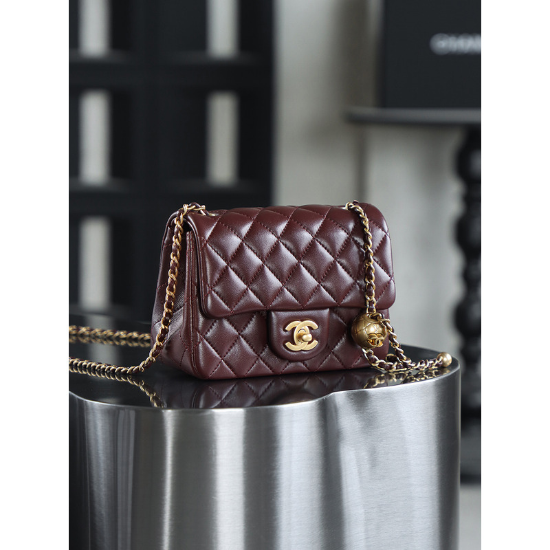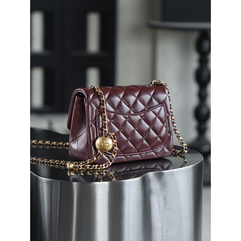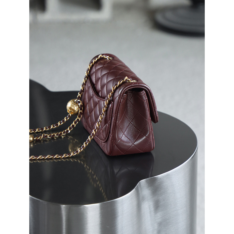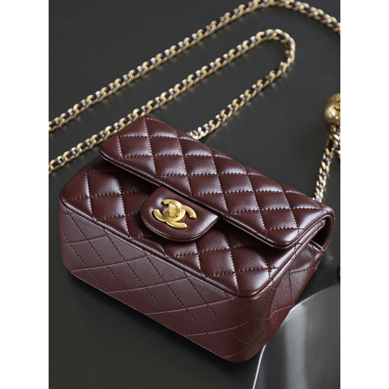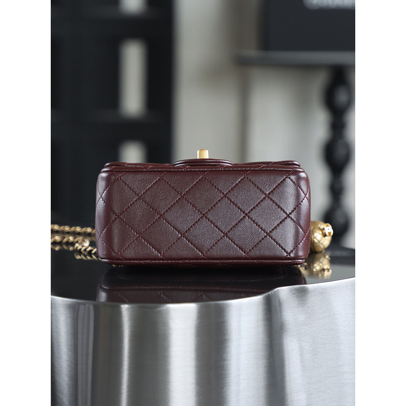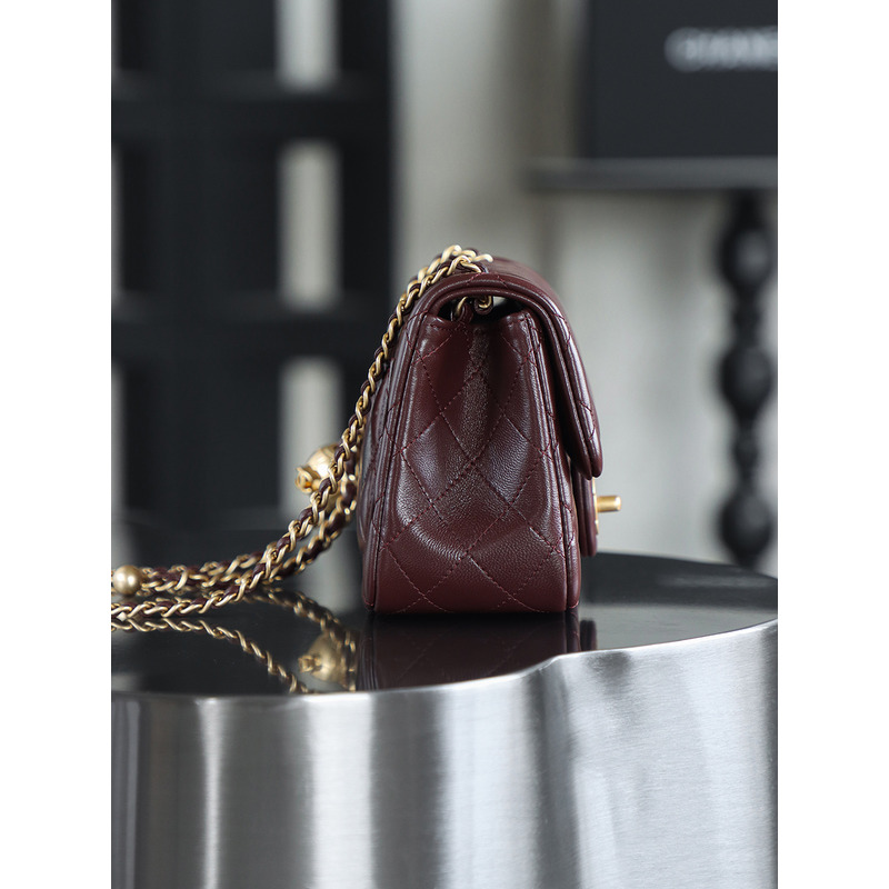 Chanel Quilted Mini Pearl Crush Flap 24K Gold Bag Burgundy