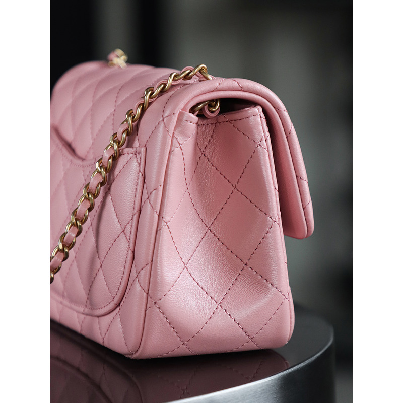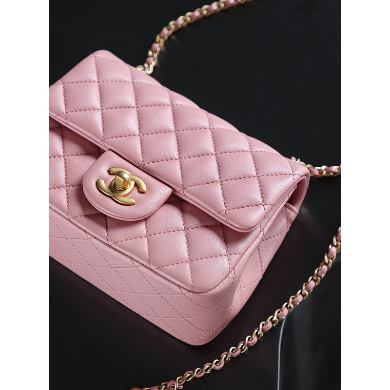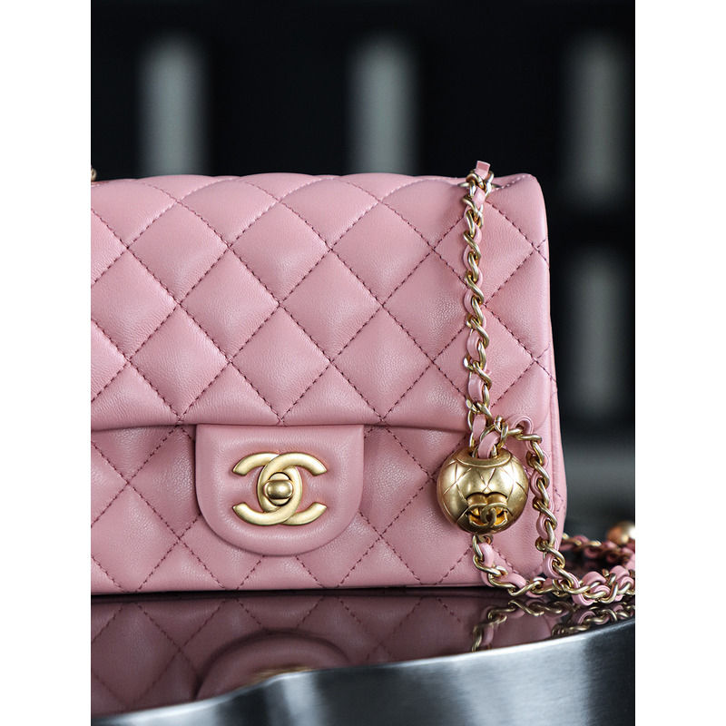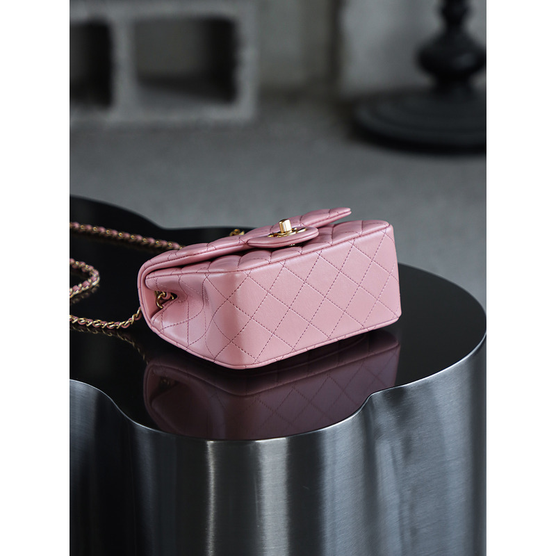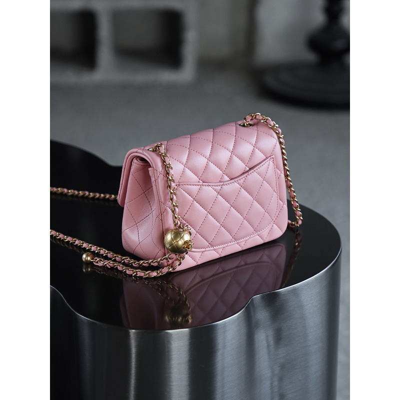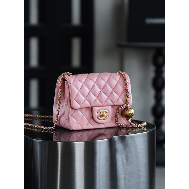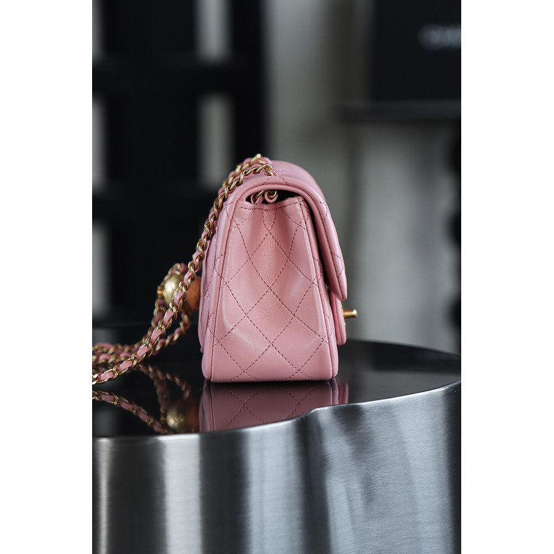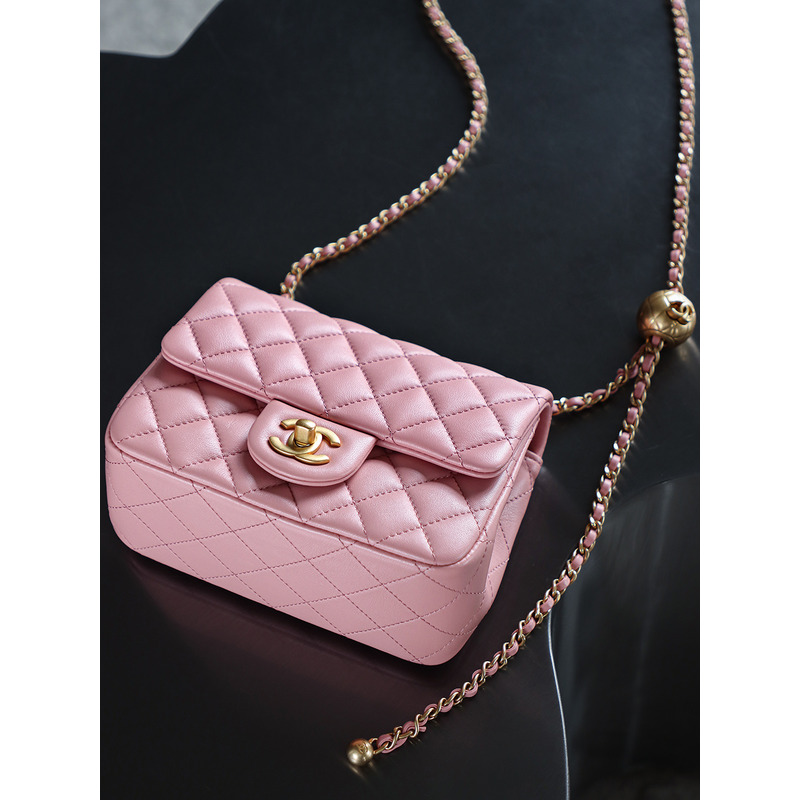 Chanel Quilted Mini Pearl Crush Flap 24K Gold Bag Pink