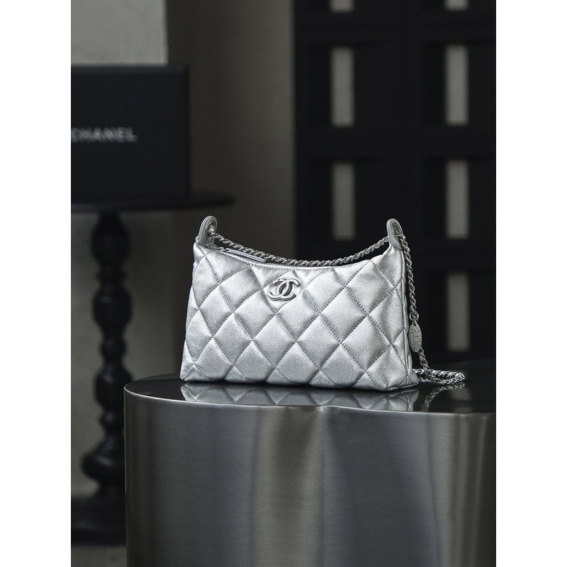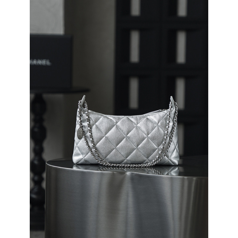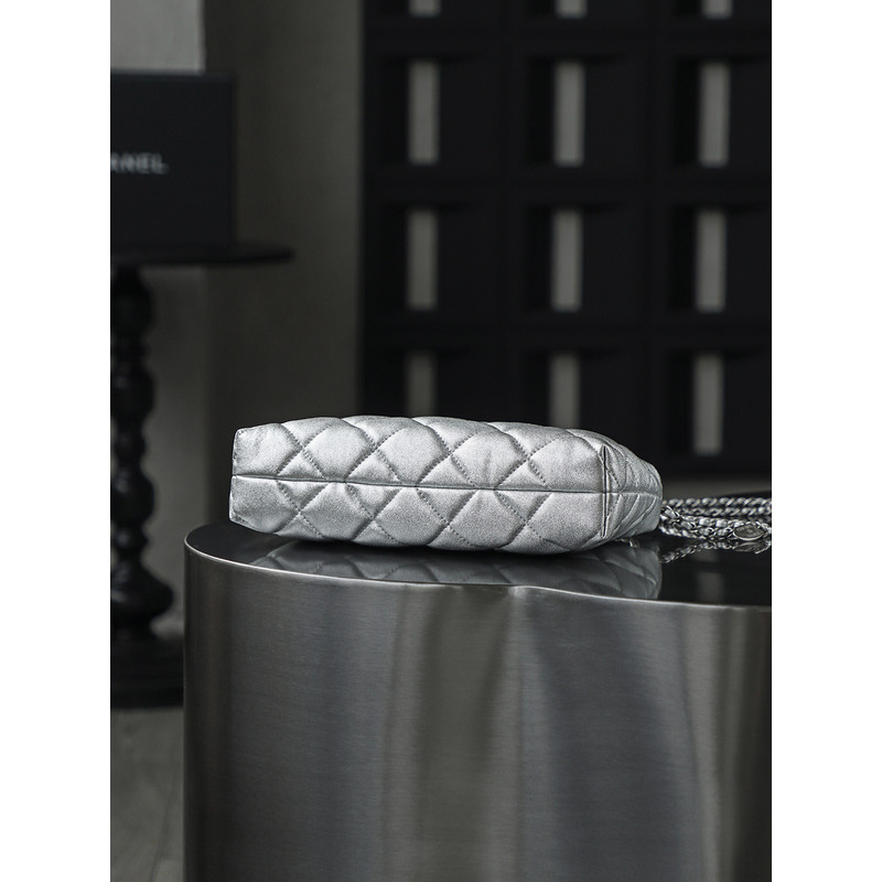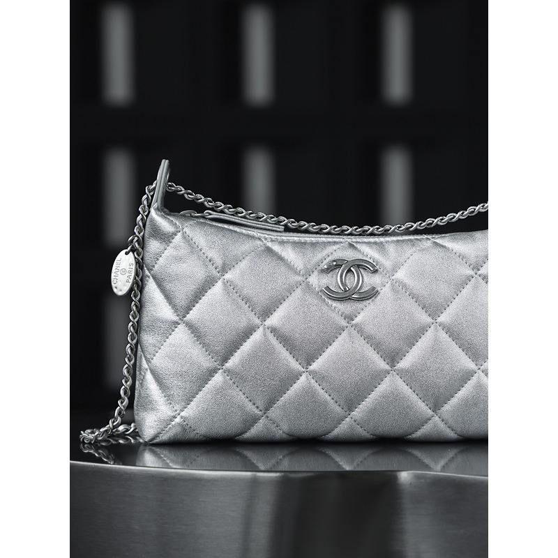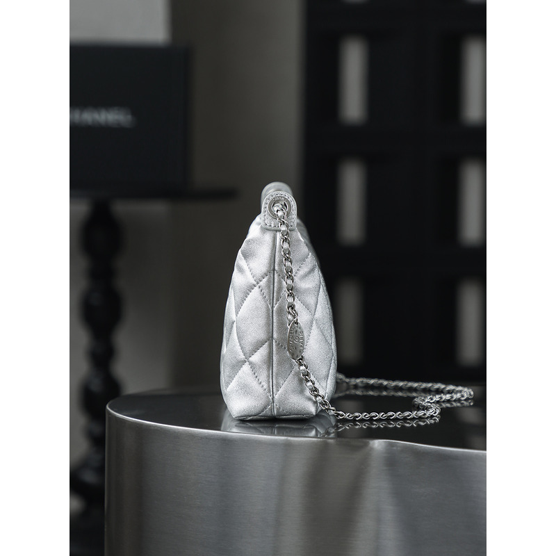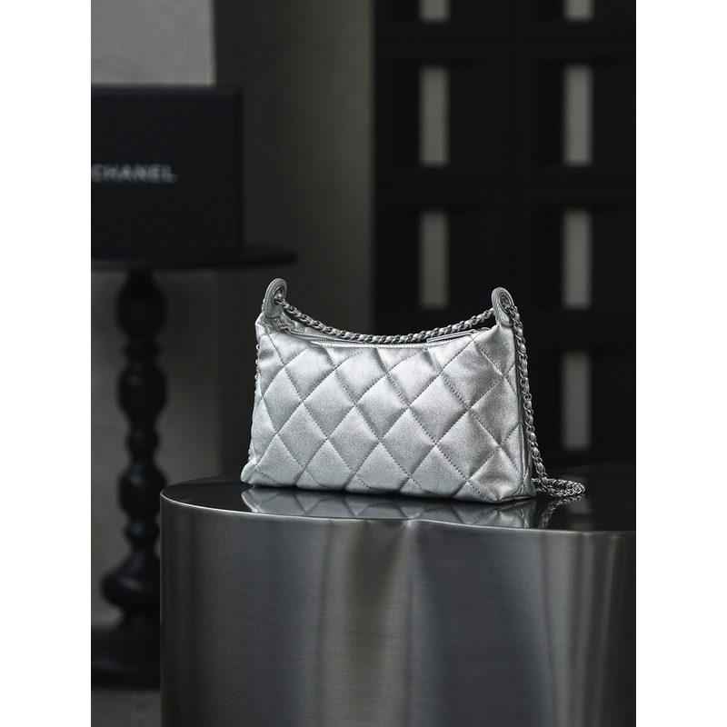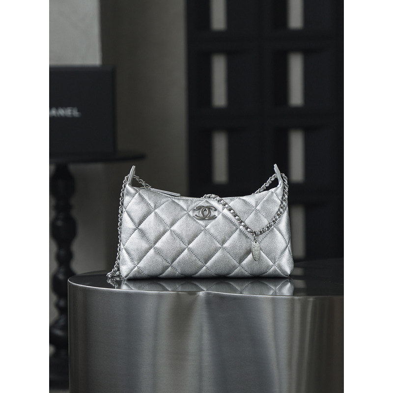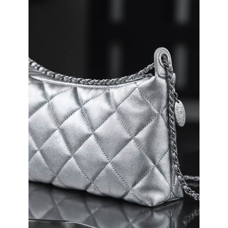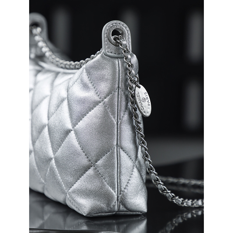 Chanel Silver Hobo Handbag Metallic Calfskin & 24k Silver
