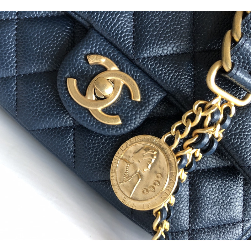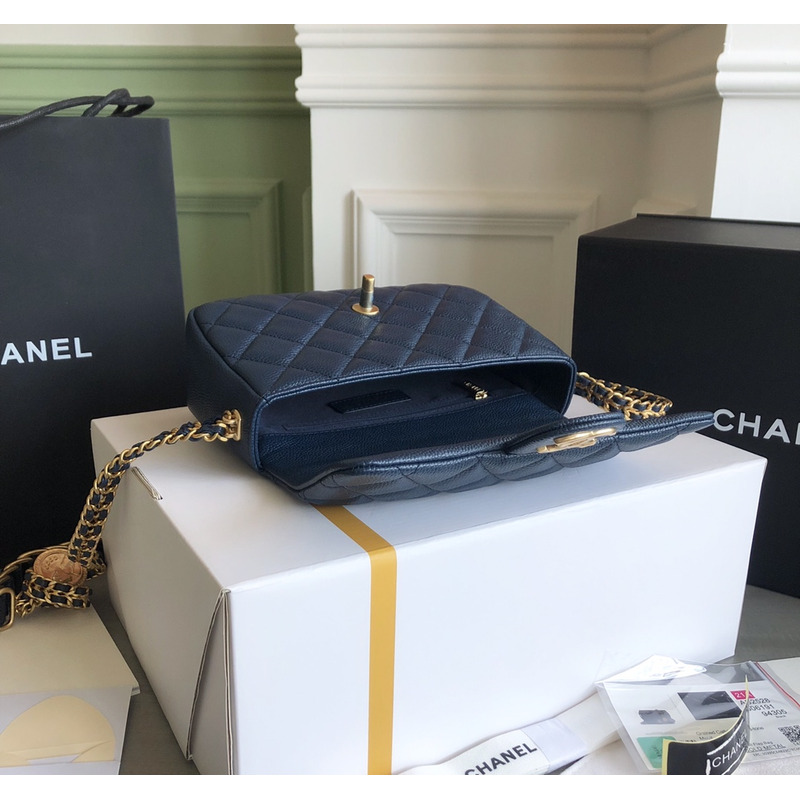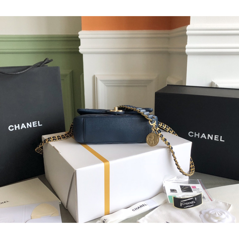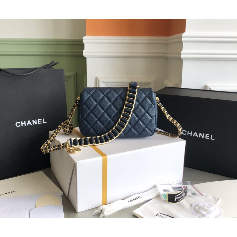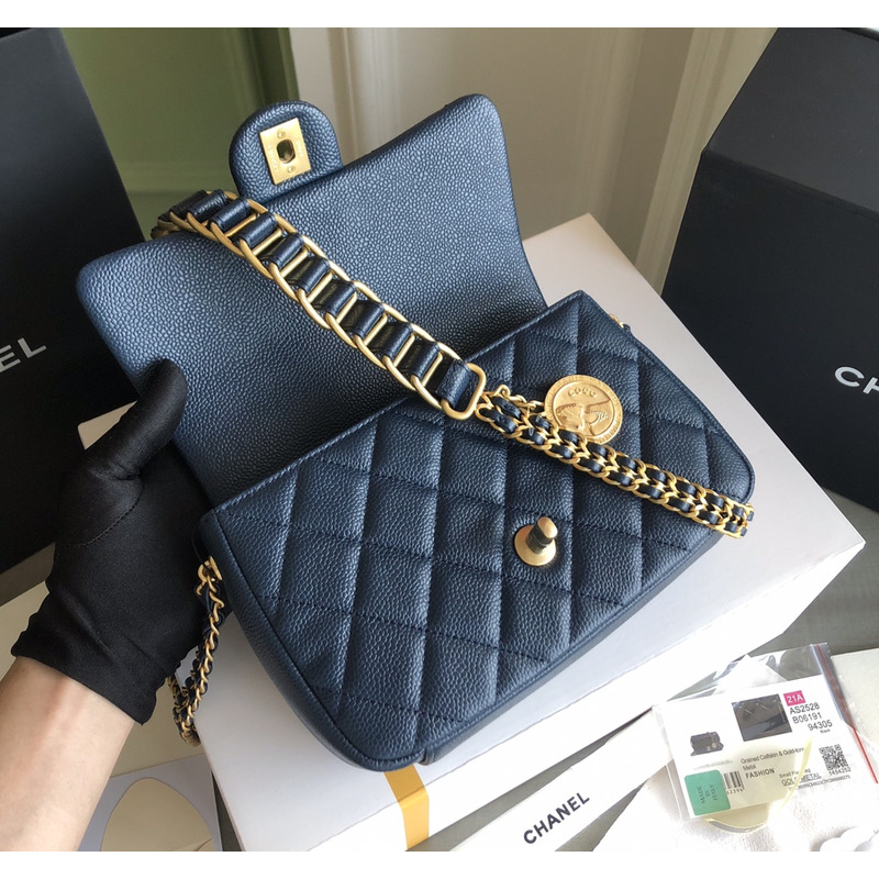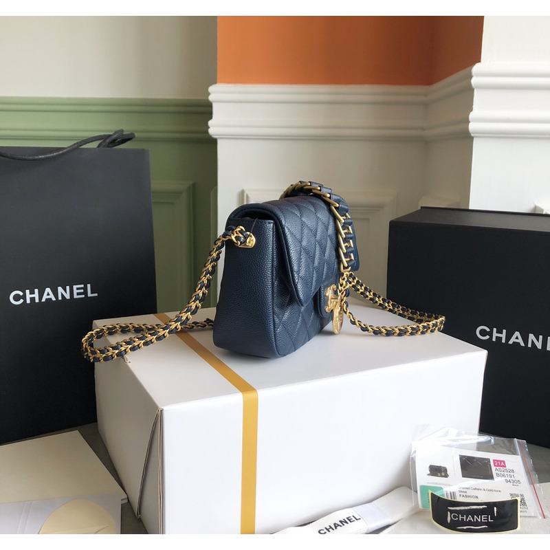 Chanel Small Flap Bag Shiny Calfskin Navy Blue