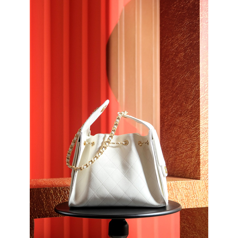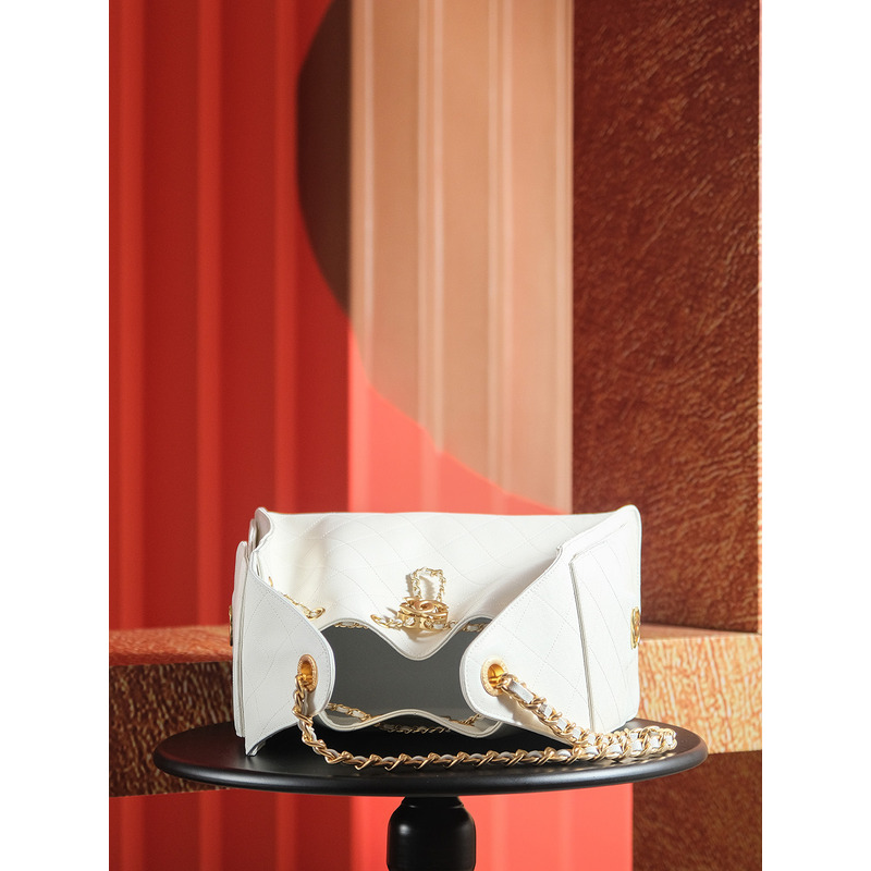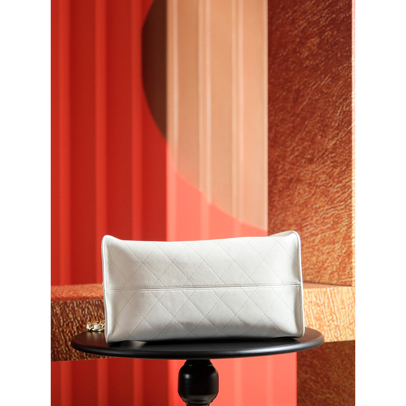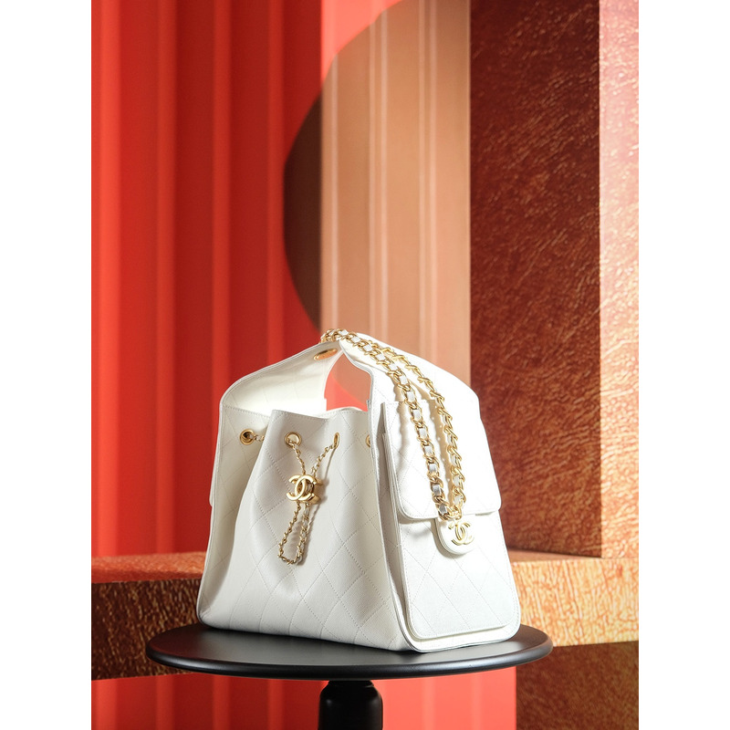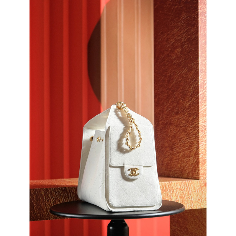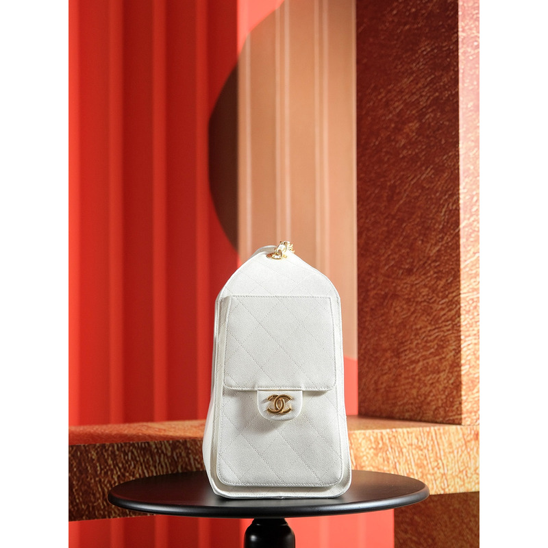 Chanel Small Handbag Grained Calfskin & 24K Gold-Tone Metal White