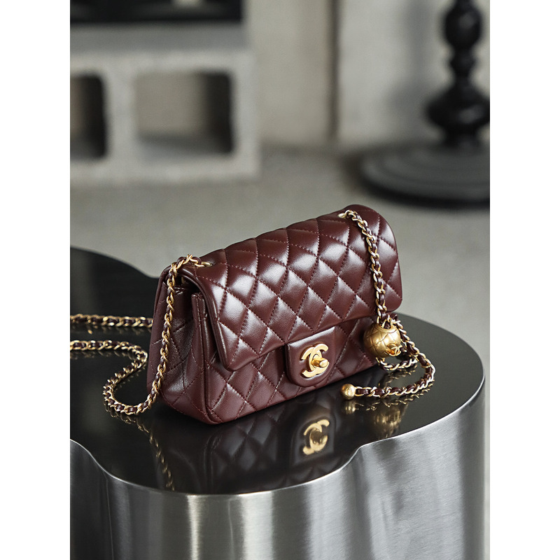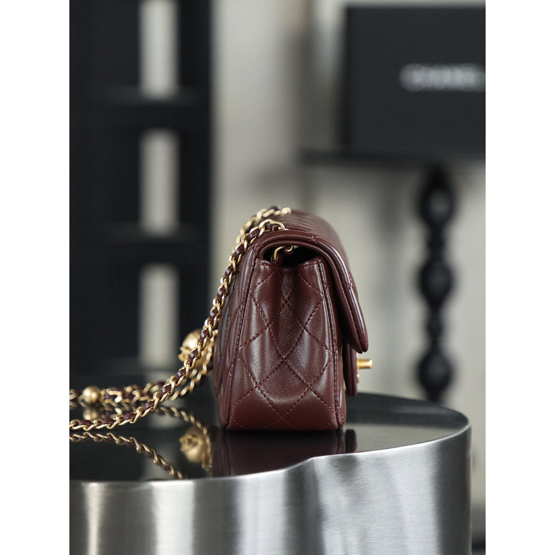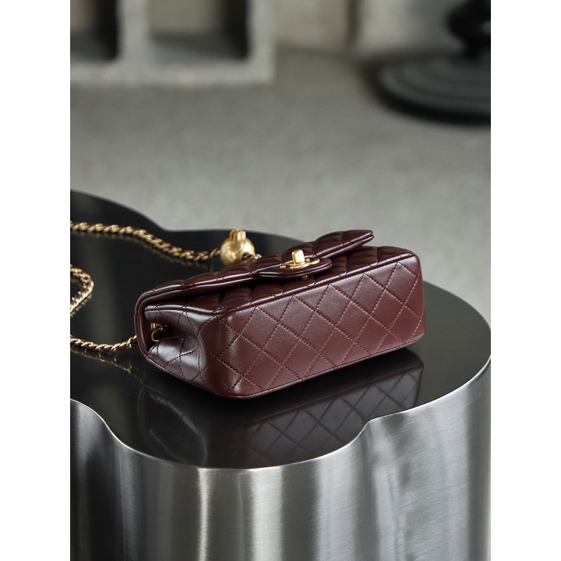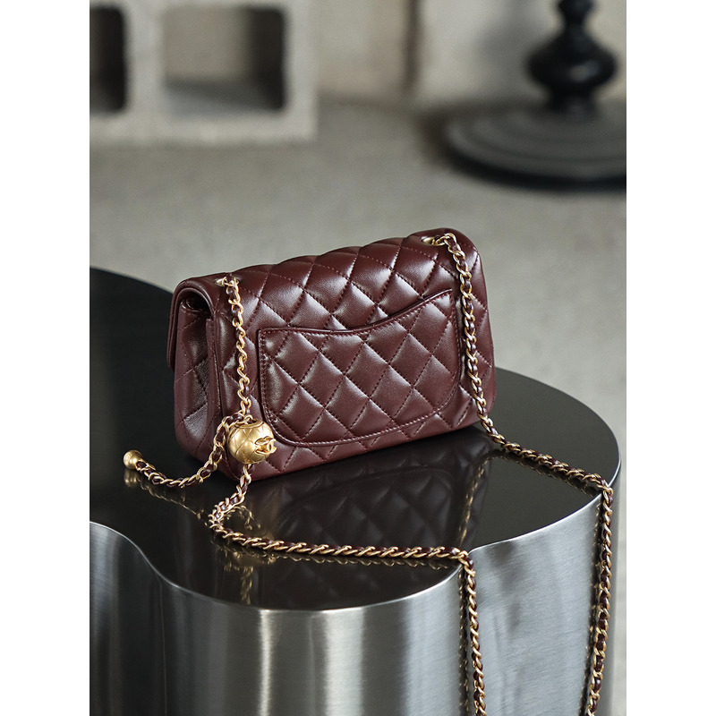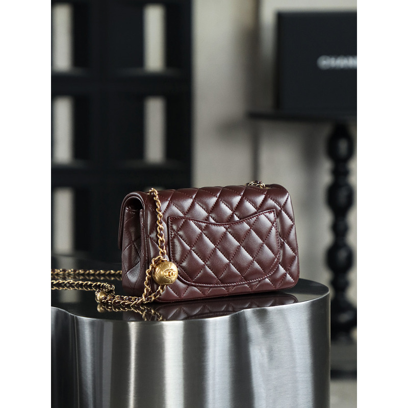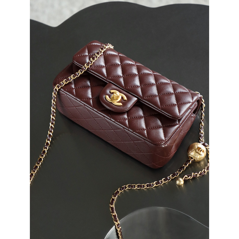 Chanel Square Pearl Crush Flap 24K Gold Lambskin Bag Dark Brown