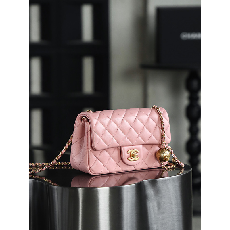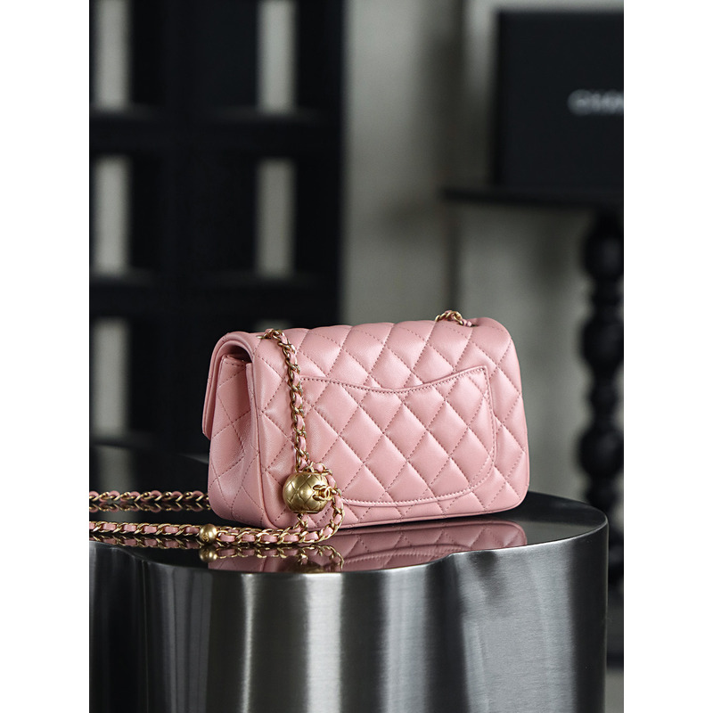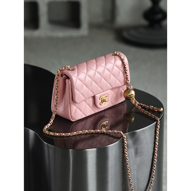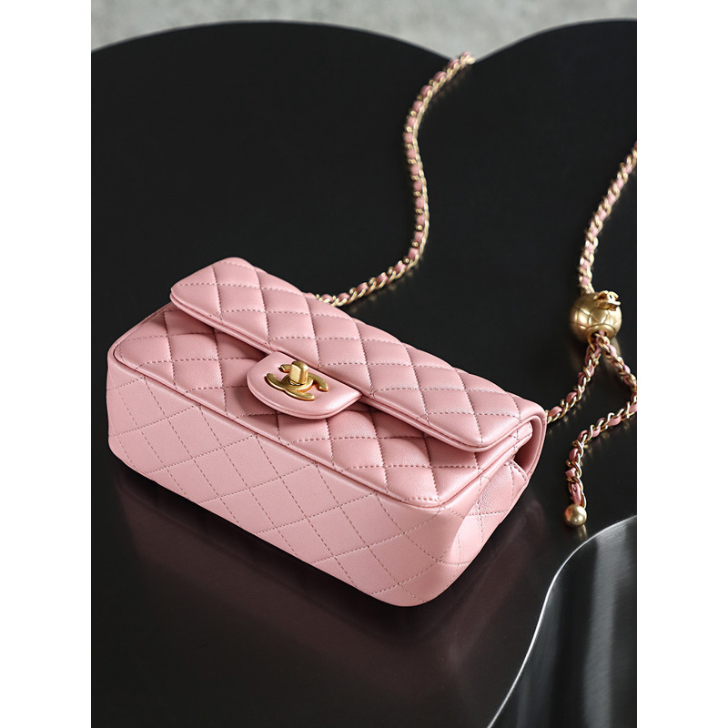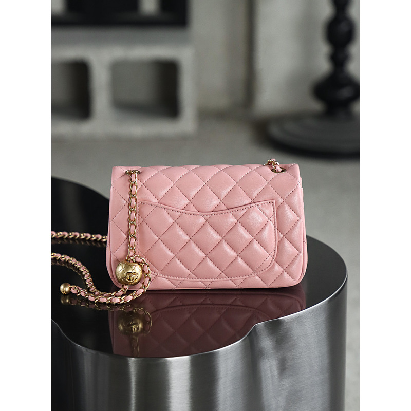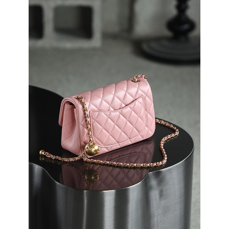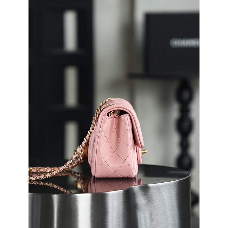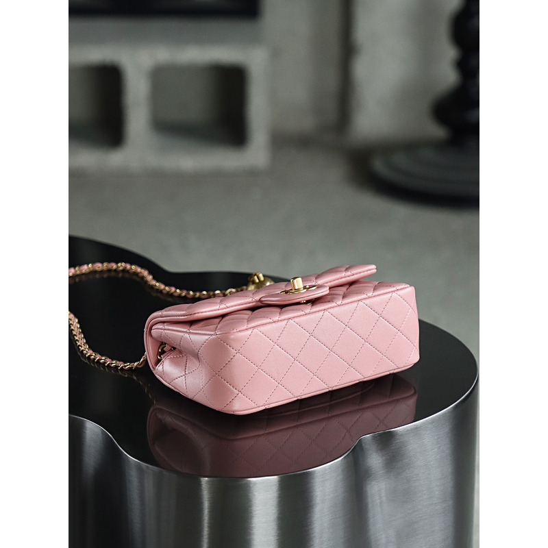 Chanel Square Pearl Crush Flap 24K Gold Lambskin Bag Pink