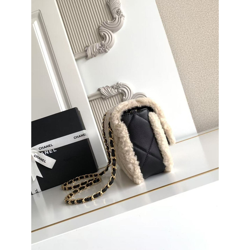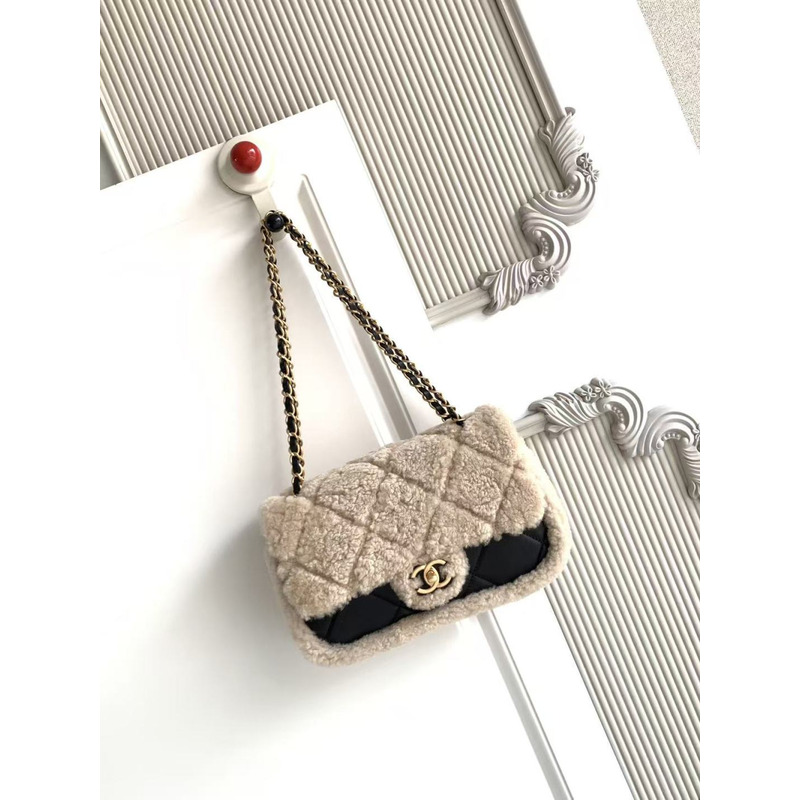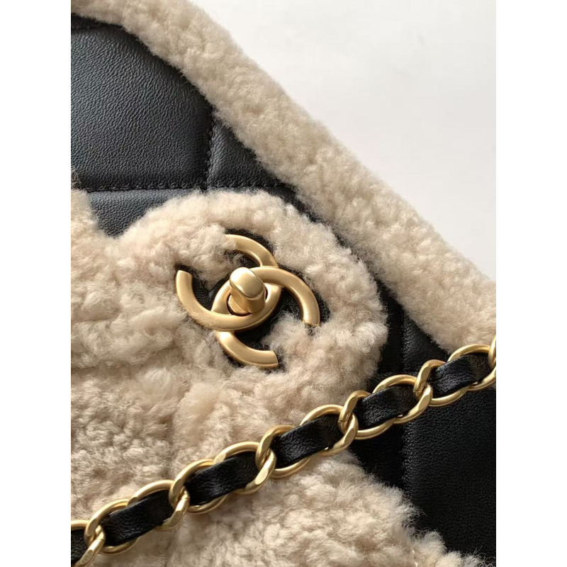 Chanel Teddy Bear Flap Bag Small Fur And Leather In Beige And Black