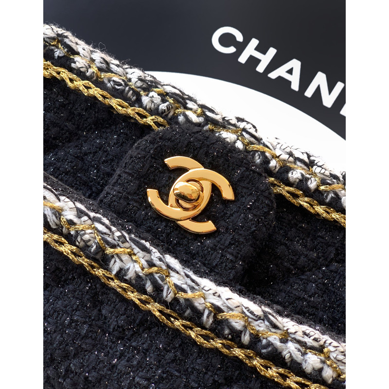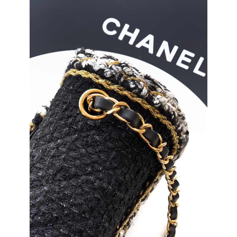 Chanel Tweed Flap Bag With Contrast Trim & Chain Strap In Black Multi