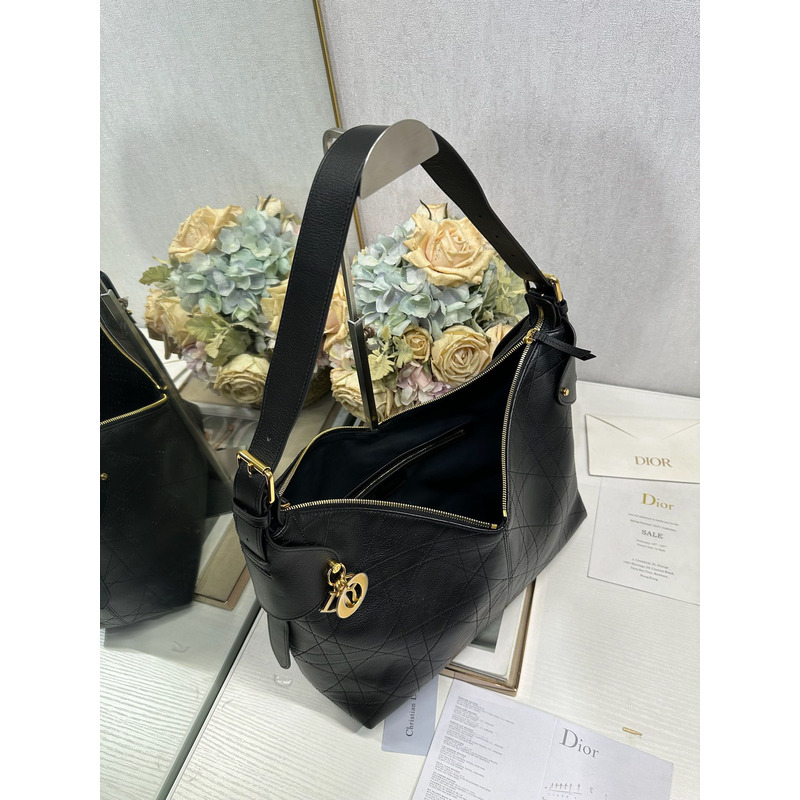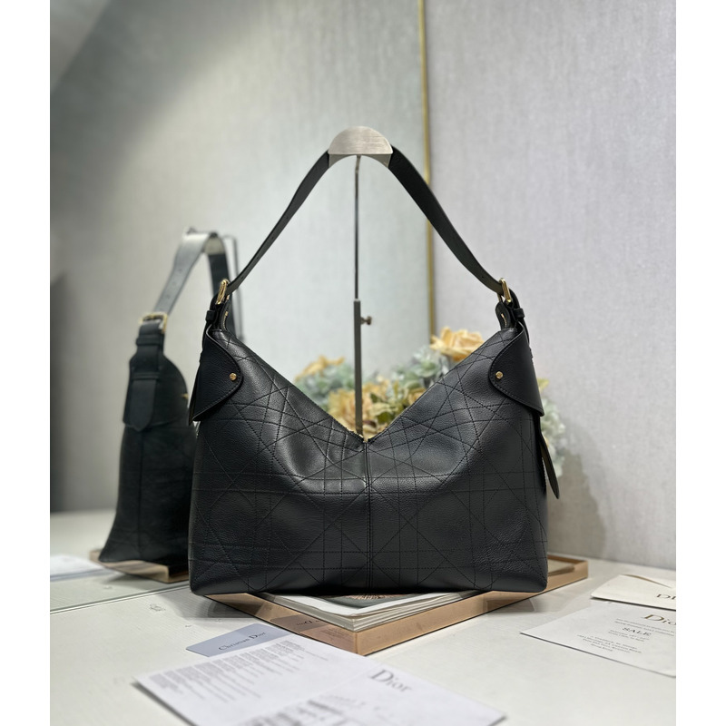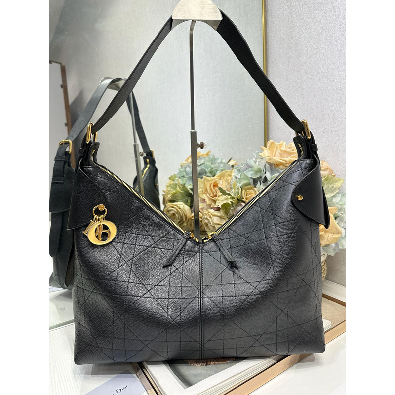 Dior Large Voyage Bag In Black Flat Macrocannage Grained