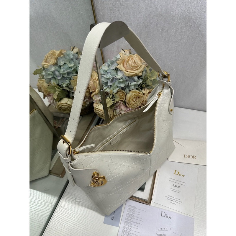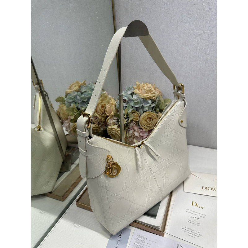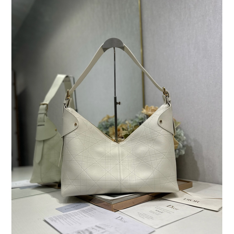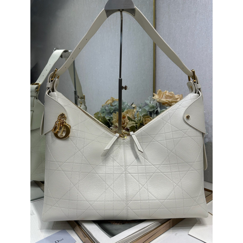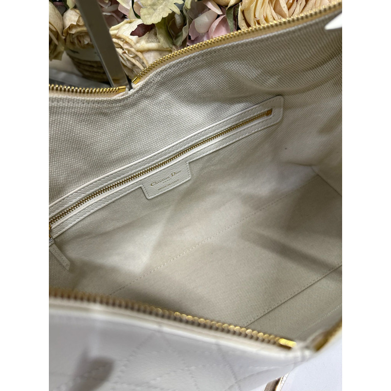 Dior Large Voyage Bag In White Flat Macrocannage Grained