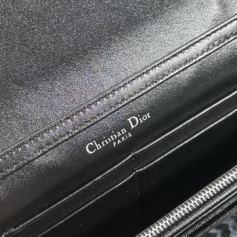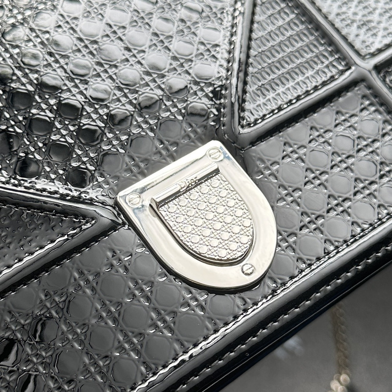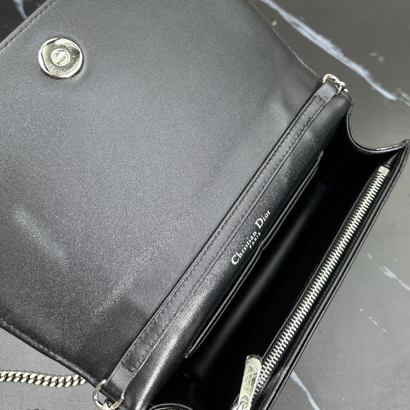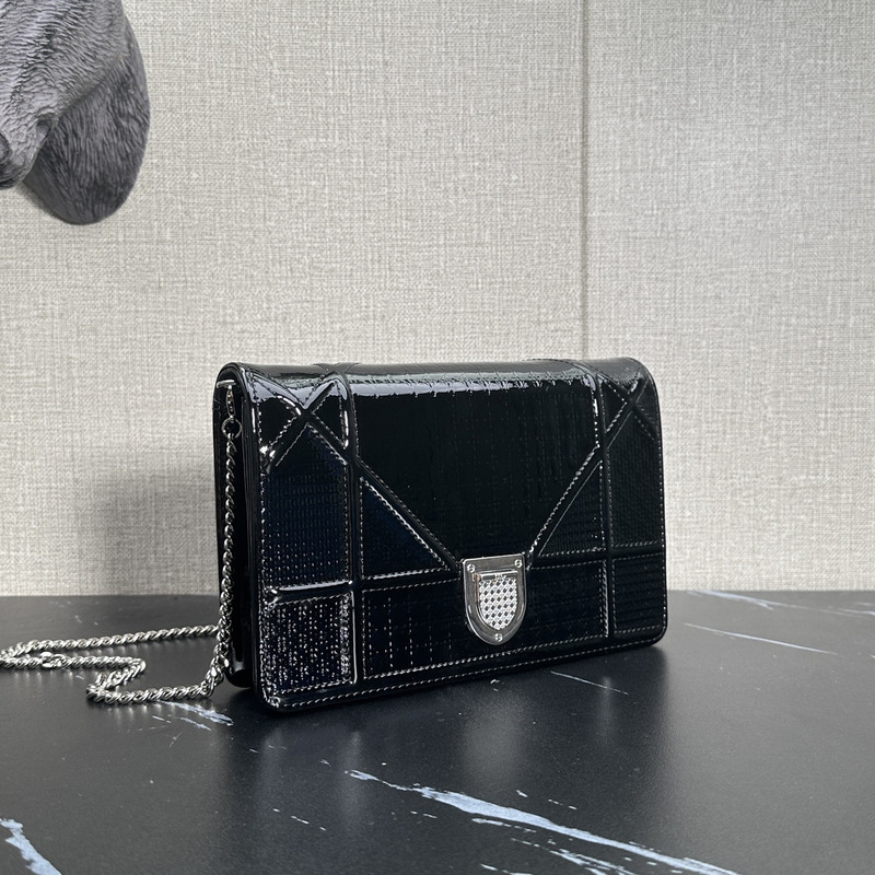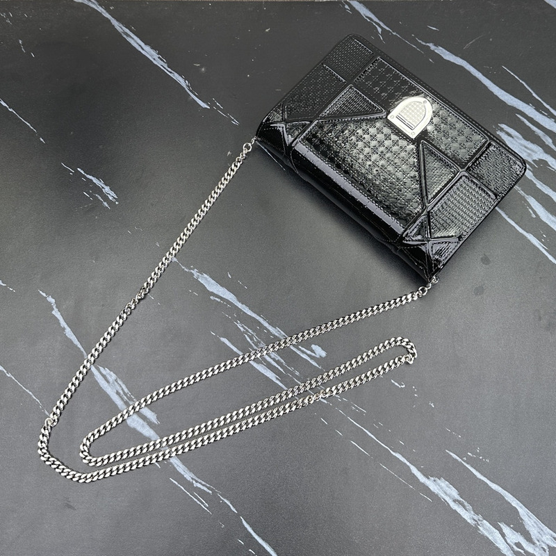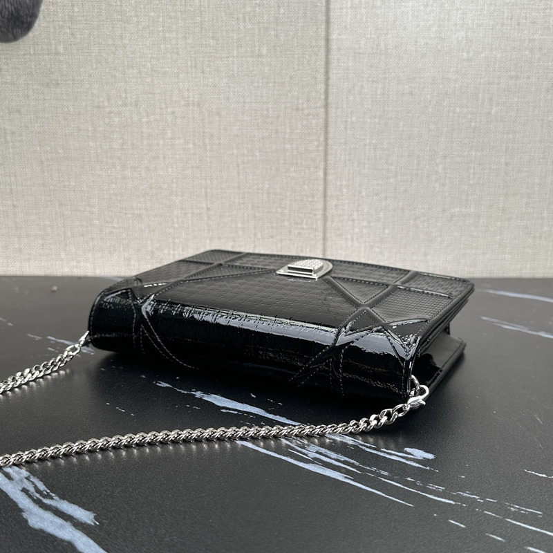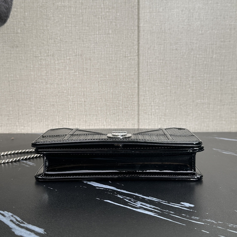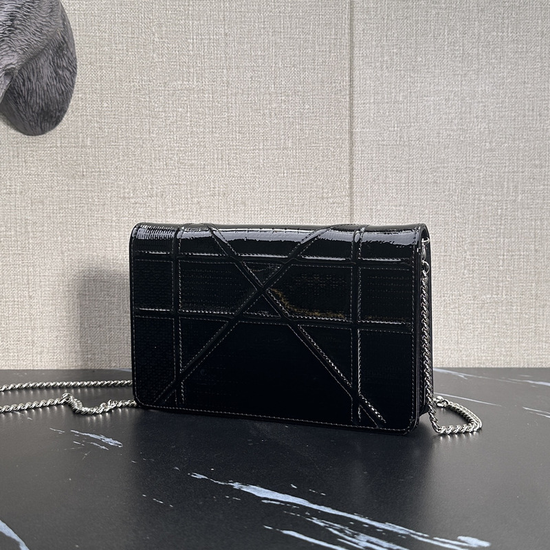 Dior Metallic Patent Micro-Cannage Diorama Wallet On Chain Pouch Black