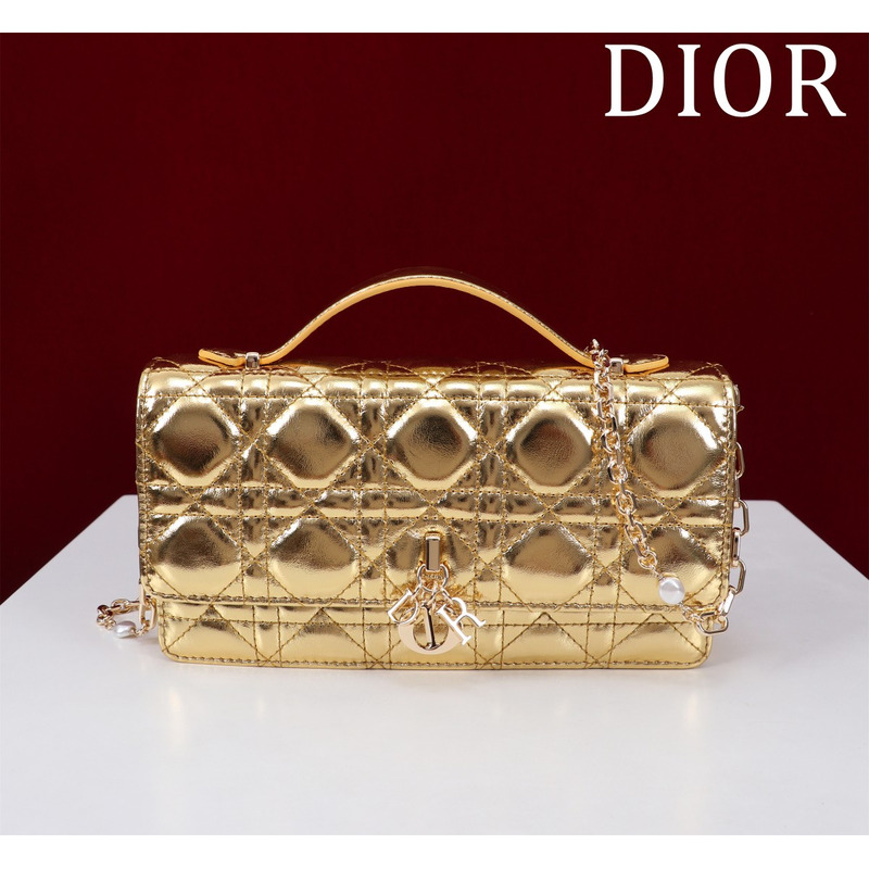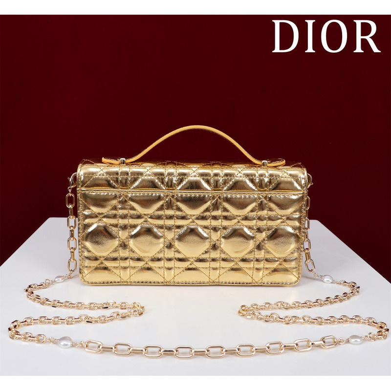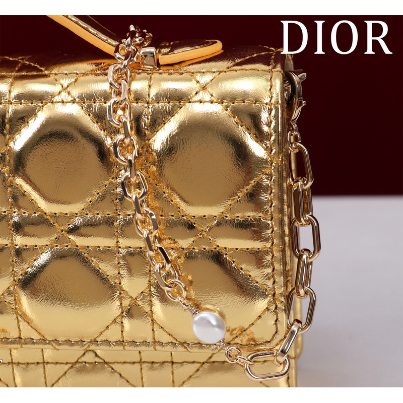 Dior My Dior Mini Bag Metallic Pale Gold-Tone Cannage Calfskin