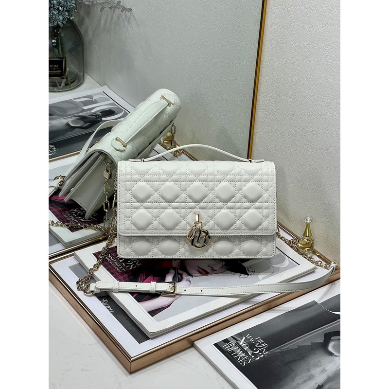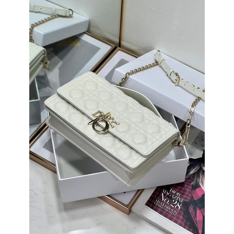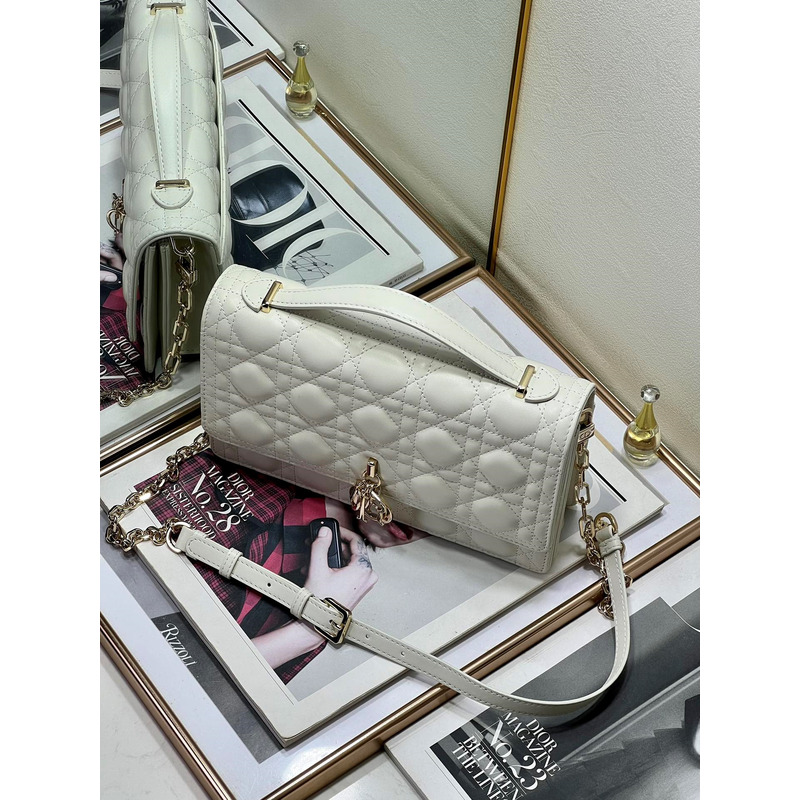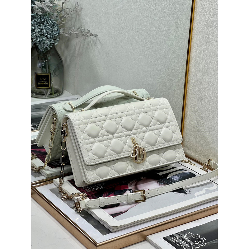 Dior My Dior Top Handle Bag Latte Cannage Lambskin In White
