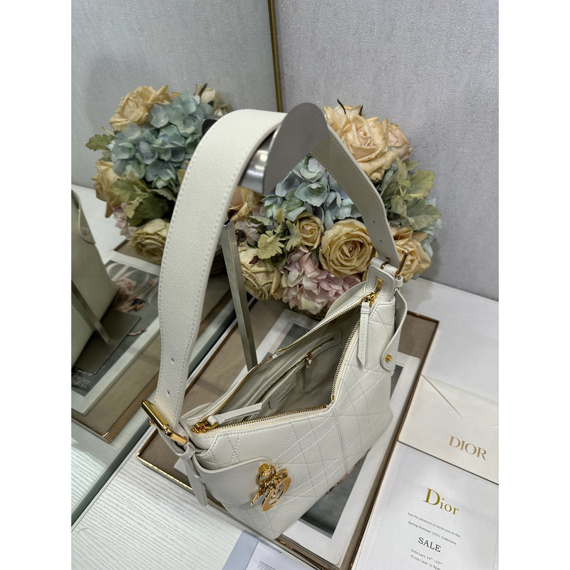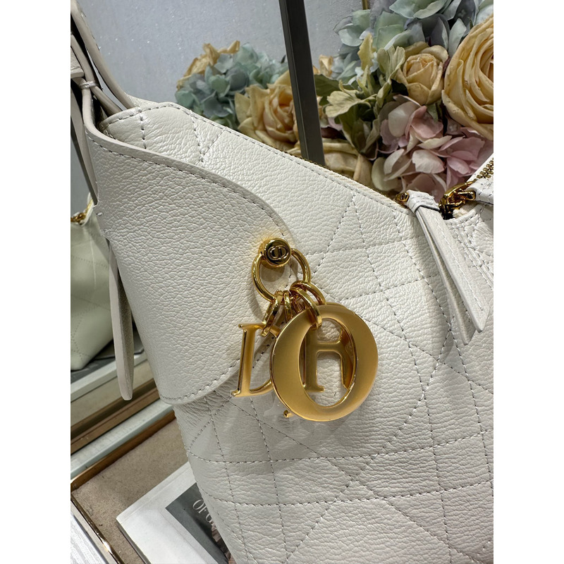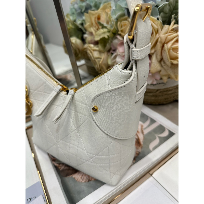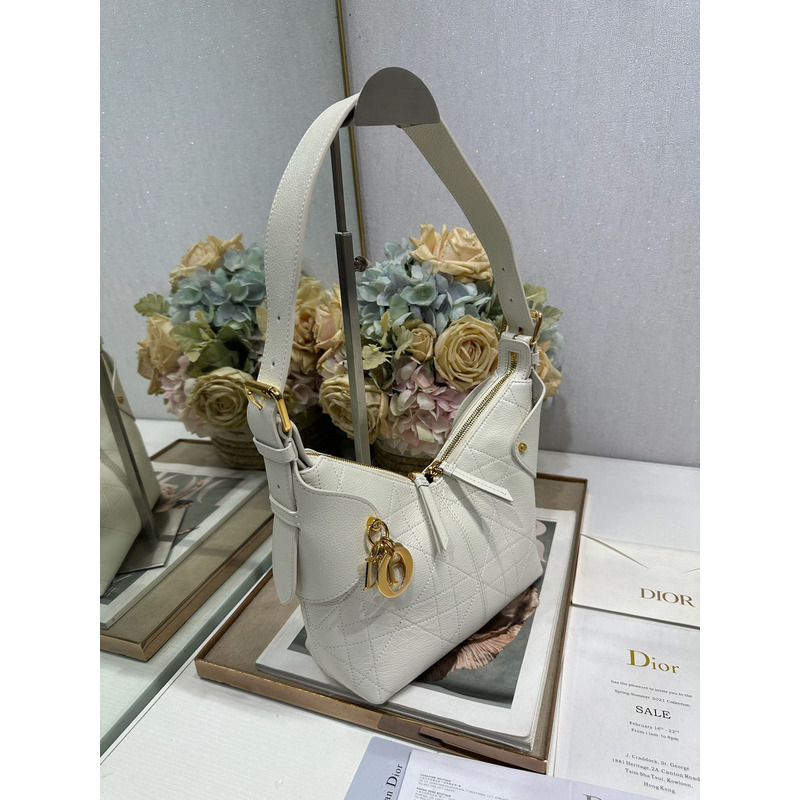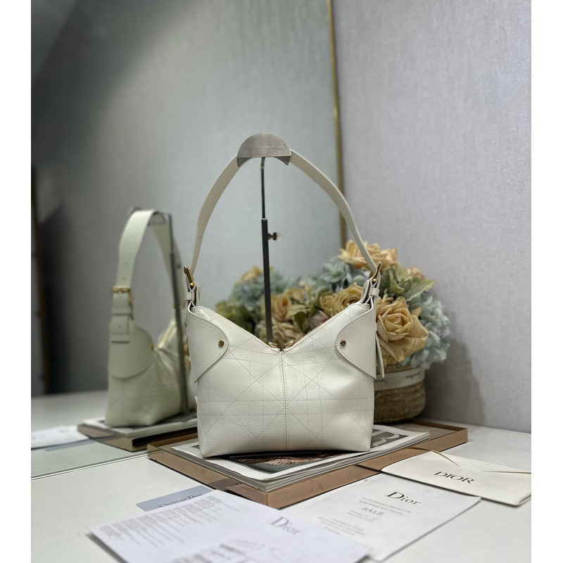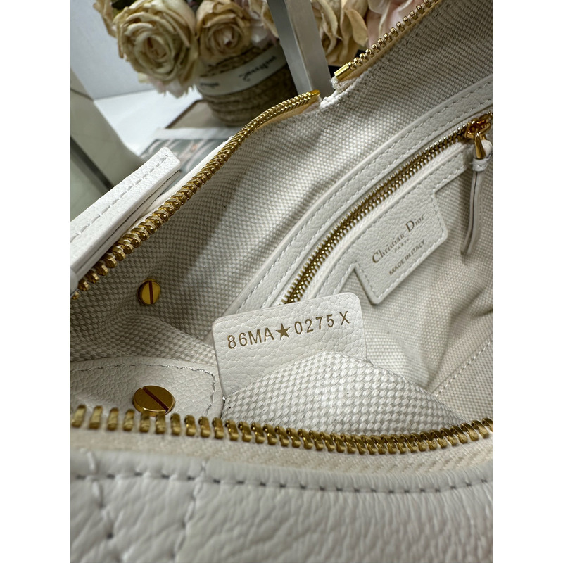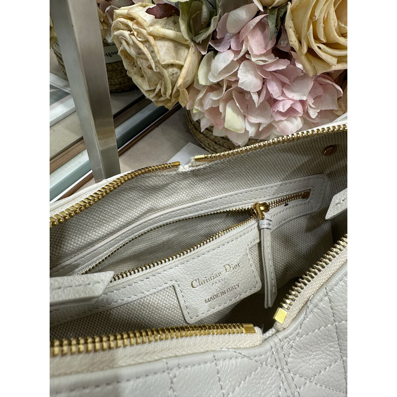 Dior Small Voyage Bag In White Flat Macrocannage Grained