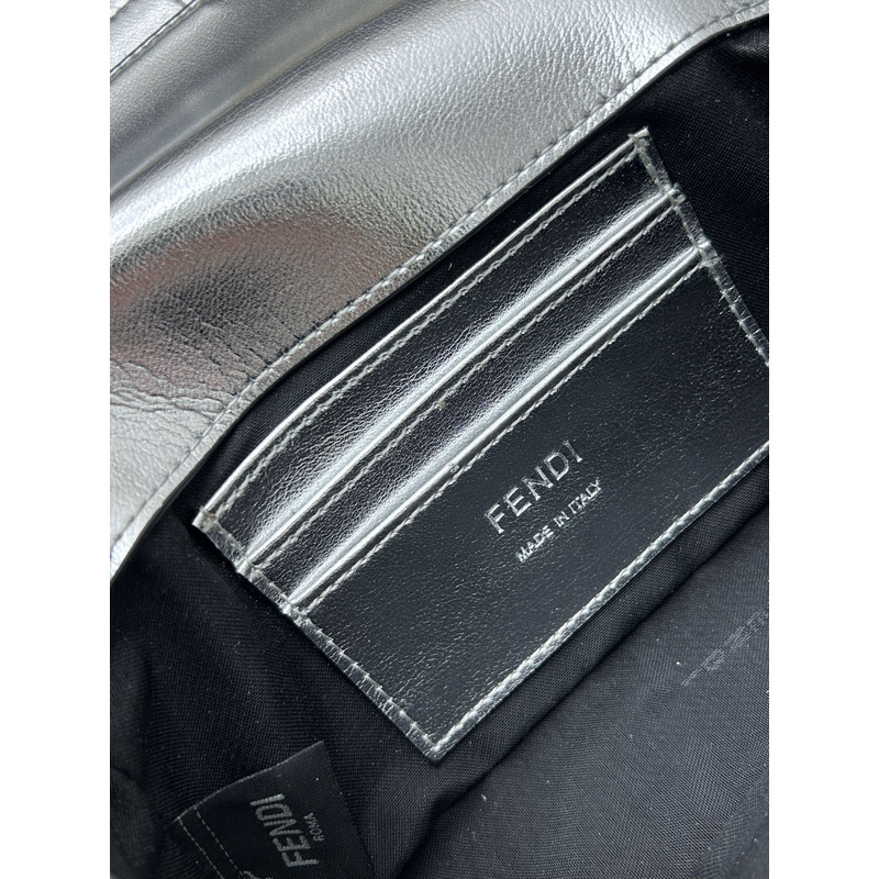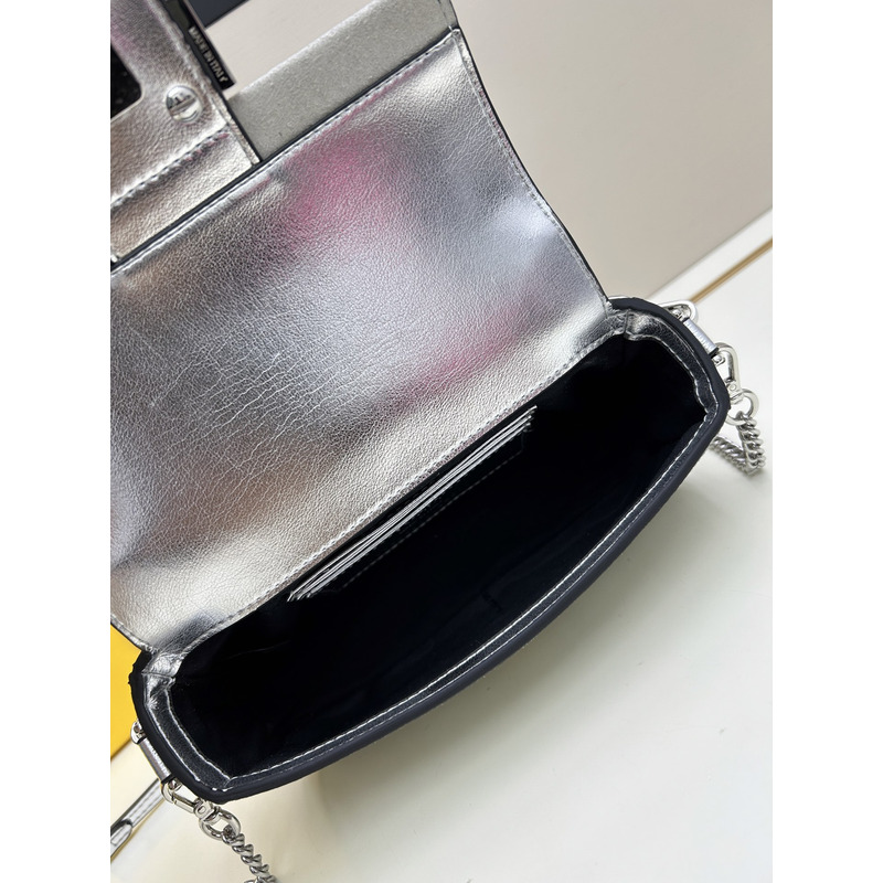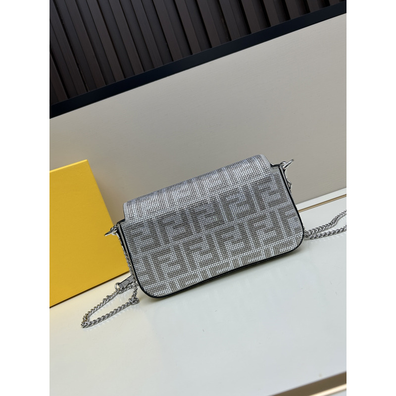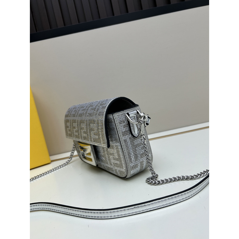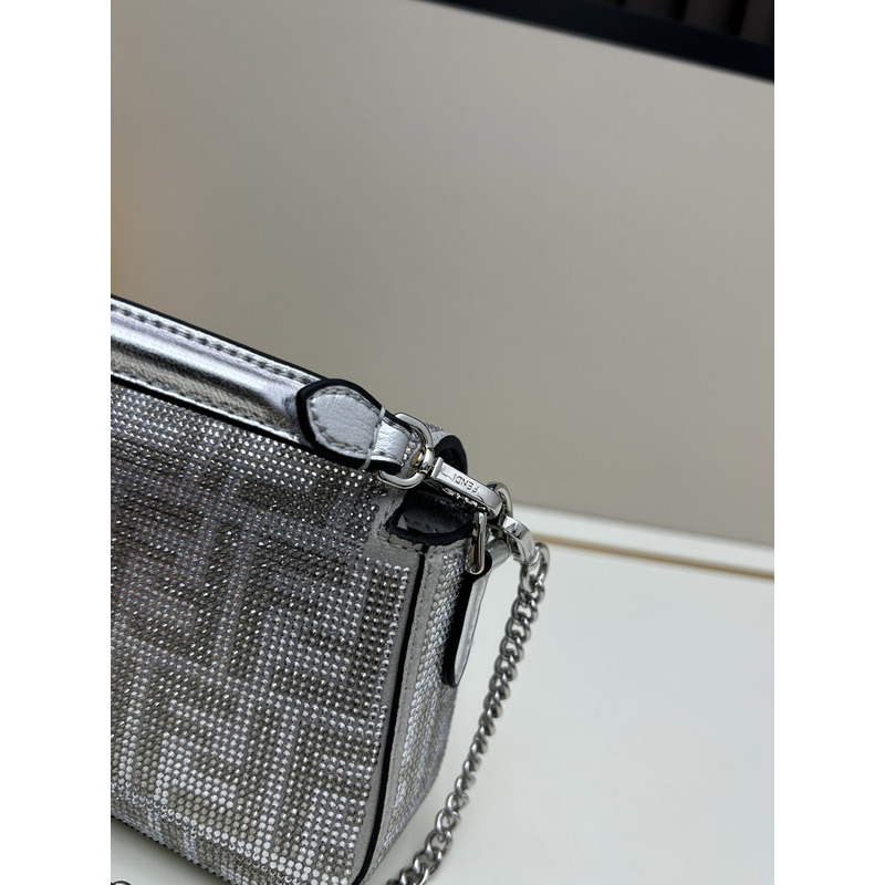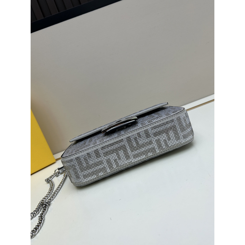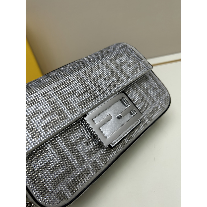 Fendi Baguette Mini Silver Leather Bag With Crystal FF Motif