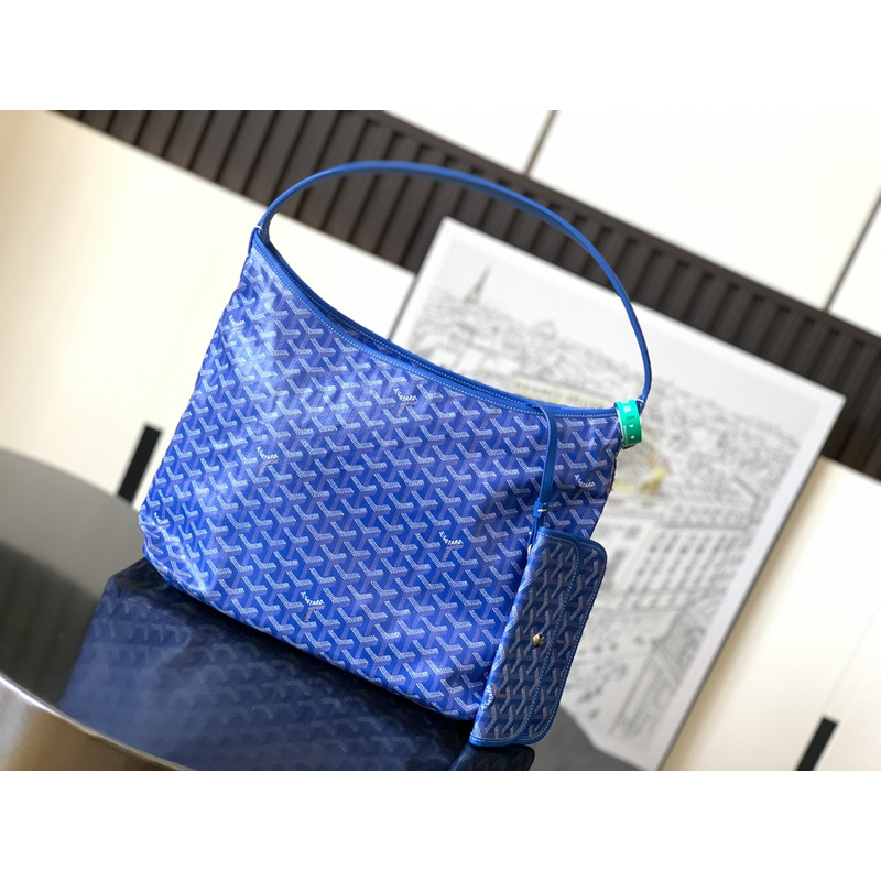 Goyard Bohème Hobo Bag Goyardine Canvas & Chevroches Calfskin Blue