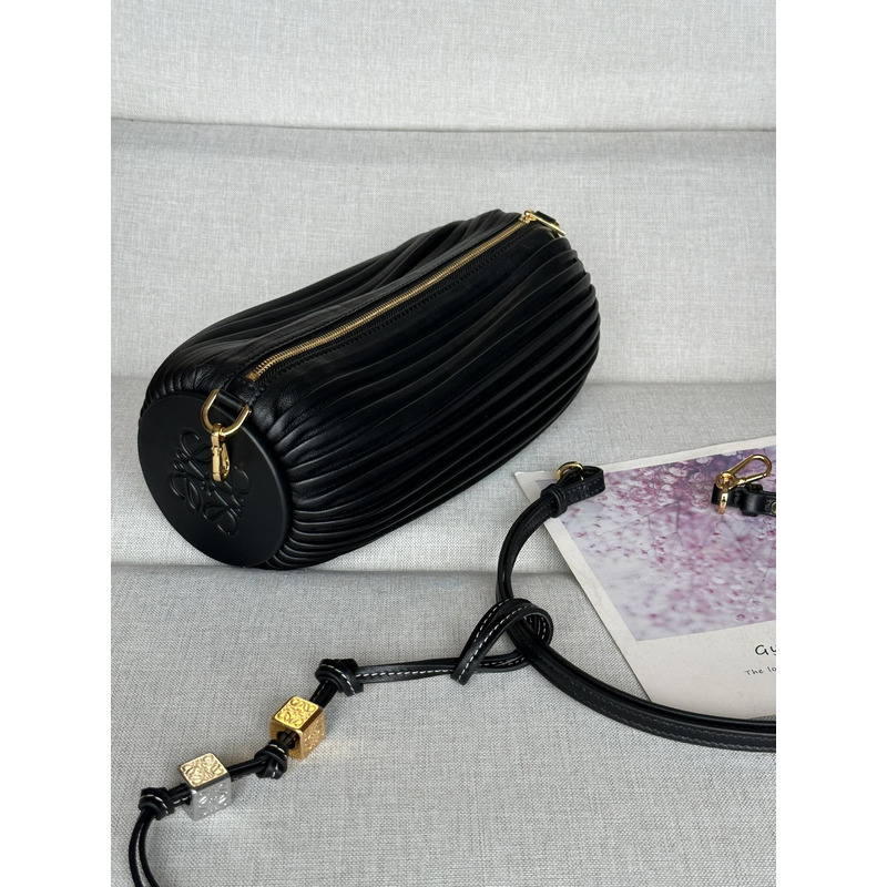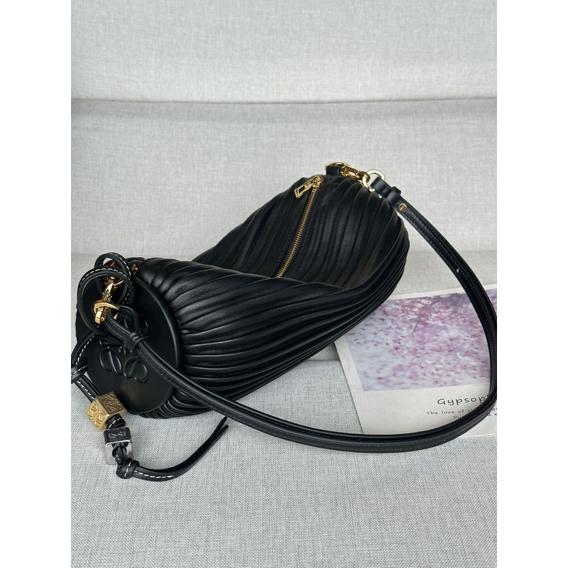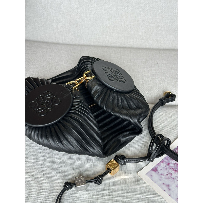 Loewe Bracelet Pouch In Pleated Nappa Lambskin Black